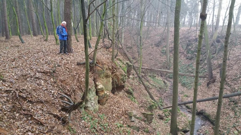 Pfad abwärts in den Wald hinein, zum Heidgraben