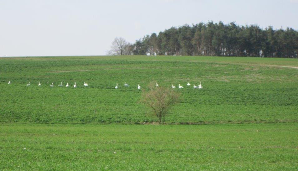 von weiten Feldern und mehreren Schwänen, die