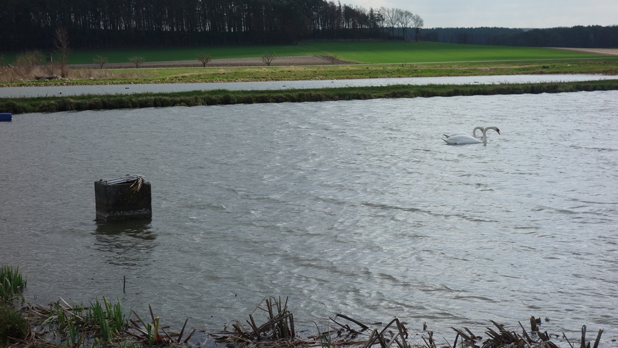 Weiler Göttelbrunn. Auf dem Teich werden wir