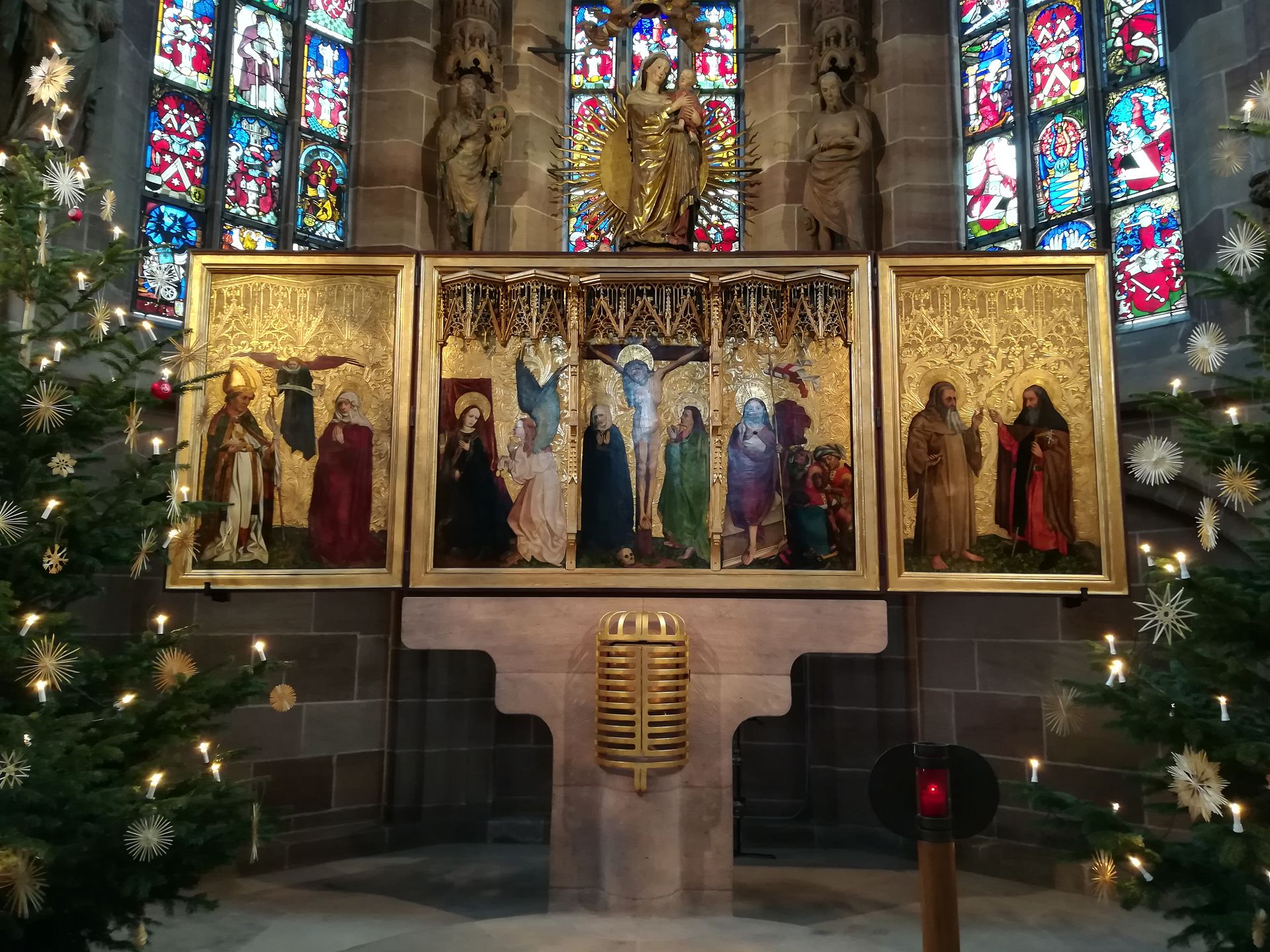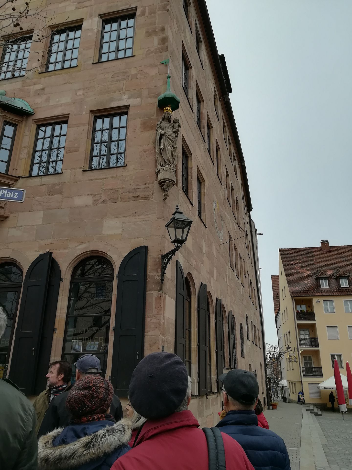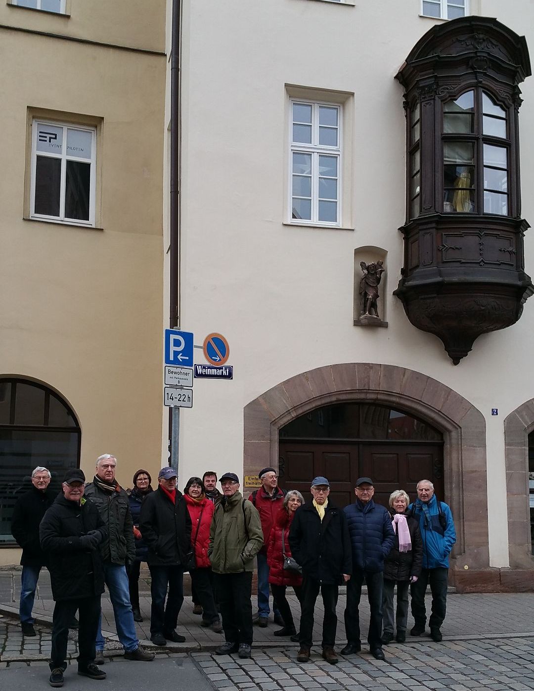 Einer schönen Tradition folgend, hat Wilhelm Eisenhart vom Bienenstock zum Jahresabschluss wieder einen Ausflug nach Nürnberg organisiert - mit Besichtigung der Frauenkirche. Die fachkundige Führerin hat durch ihr breites Wissensspektrum sehr beeindruckt; selbst in den hintersten Reihen war kein störendes Wort zu vernehmen. Nach dem Mittagessen (im Provenza) führte Udo von Contra zu Re die Gruppe zu den wenigen, dafür aber umso beeindruckenderen Spuren, die die Renaissance in Nürnberg hinterlassen hat. Der Rückweg wurde genutzt, um die Heiligen-Figuren an Häusern der Altstadt einmal genauer zu begutachten (nach Empfehlungen von "nordbayern.de"/ den Altstadtfreunden: Tour1, Tour2, die wir "rückwärts" gegangen sind) Zum