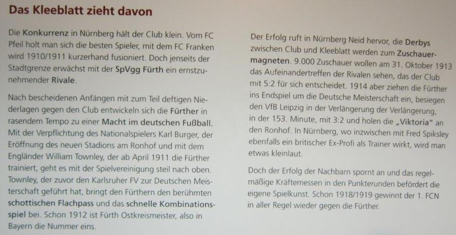 am Valznerweiher fast komplett im Wald. Nach einer kurzen Pause mit Kaffee und Eis in den Stuhlfauth Stuben und einem Besuch im Glubb-Museum, wo wir die vielen, vielen, vielen, Trophäen bewunderten und uns über Max Merkels letztes Jahr ärgerten, ging es dann ab der Station Frankenstadion (wieder mal mit Zug-Verspätung) nach Hause. |