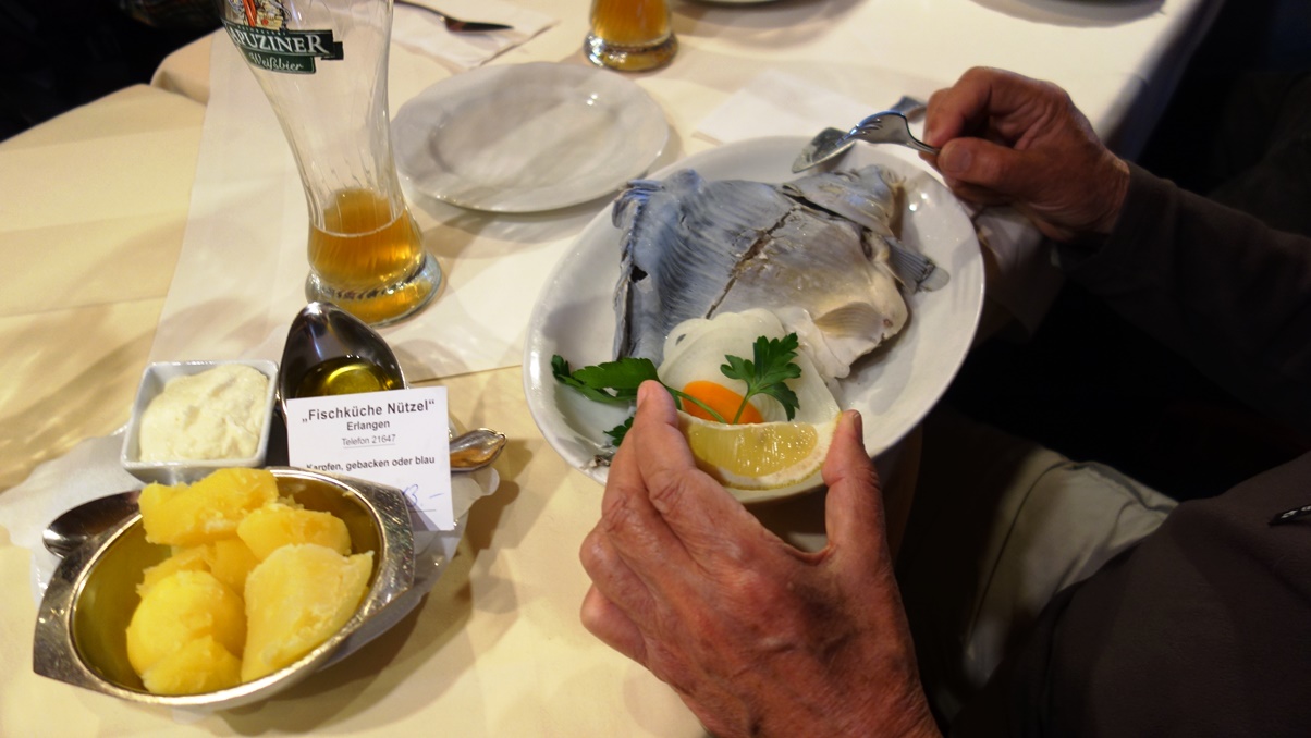 einer Ecke Platz und bestellte Karpfen blau oder