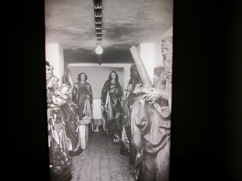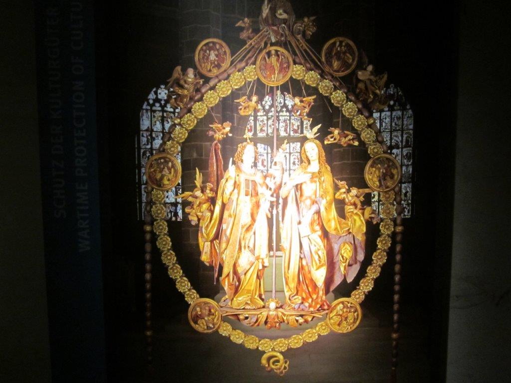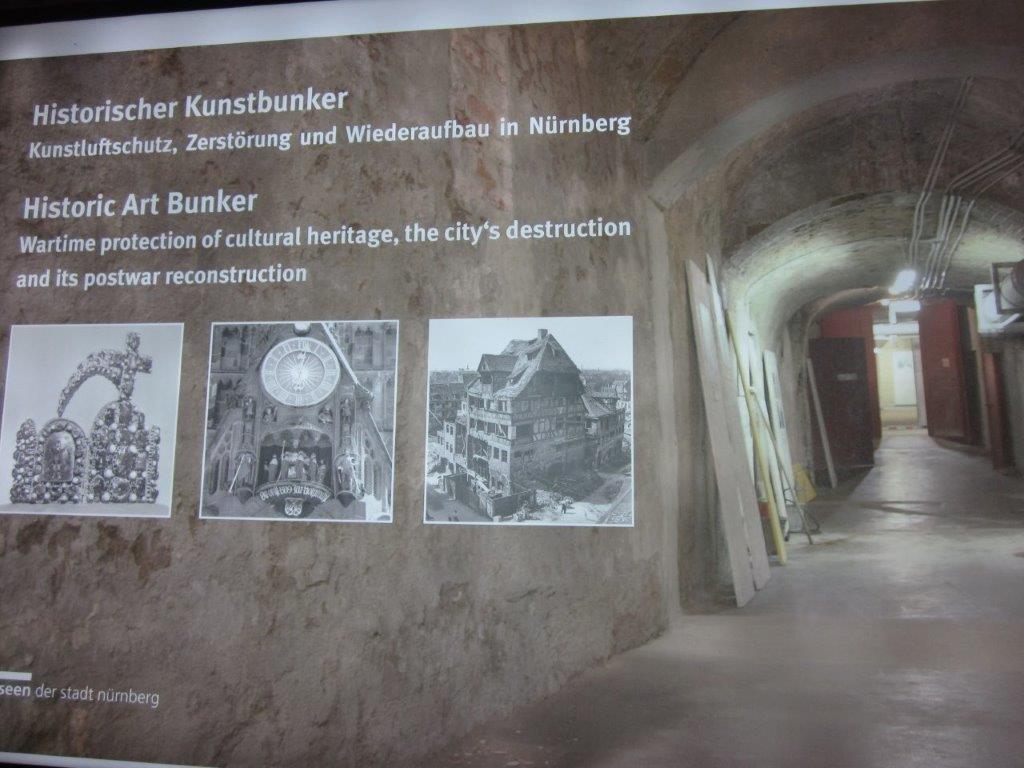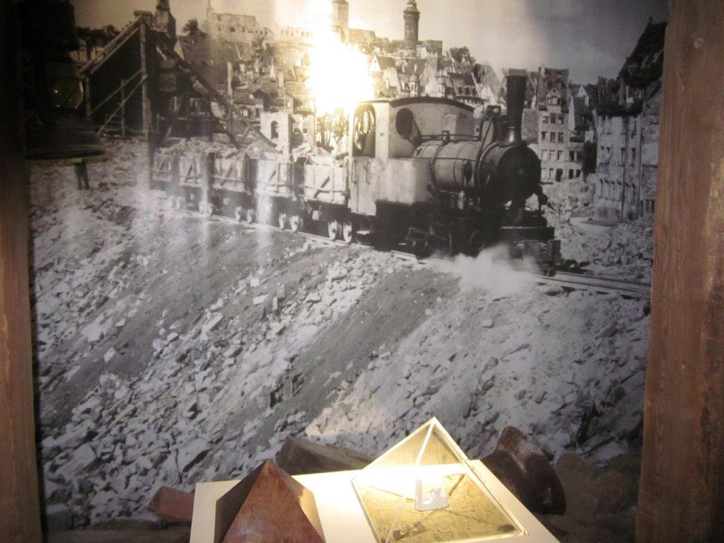 widerstanden haben. Es waren dies u.a. der Engelsgruß des Veit Stoß aus der Lorenzkirche, die Kunstuhr der Frauenkirche ("Männleinlaufen"), der Globus des Martin Behaim, Gemälde, Kupferstiche und Schriften von Albrecht Dürer, historische Musikinstrumente, Altäre, Glasmalereifenster und Chorgestühl sämtlicher Altstadtkirchen, wissenschaftliche Instrumente und: die Reichskleinodien (der Krönungsschatz, der ja lt. Kaiser Sigismund "auf ewige Zeit in der reichen und sicheren Reichsstadt an der Pegnitz verwahrt werden" sollte - aber wie das mit den Ewigkeiten so ist, dauerte diese gerade einmal gut 370 Jahre, nämlich von 1424 bis 1796, als die Noris in der Folge des anrückenden Napoleon zu einer bayerischen Provinzstadt degradiert wurde). Aber auch der Krakauer Marienaltar des Veit Stoß war hier vor den Luftangriffen bestens geschützt. Im Gegensatz dazu erlitten jedoch während des Zweiten Weltkriegs viele Baudenkmäler der seit dem Mittelalter gewachsenen historischen Altstadt schwere Schäden. "Des Deutschen Reiches Schatzkästlein" - als das Nürnberg seit dem 19. Jahrhundert häufig beschrieben wurde - endete als trostlose Trümmerlandschaft. Wie aus der Ruinenstadt nach