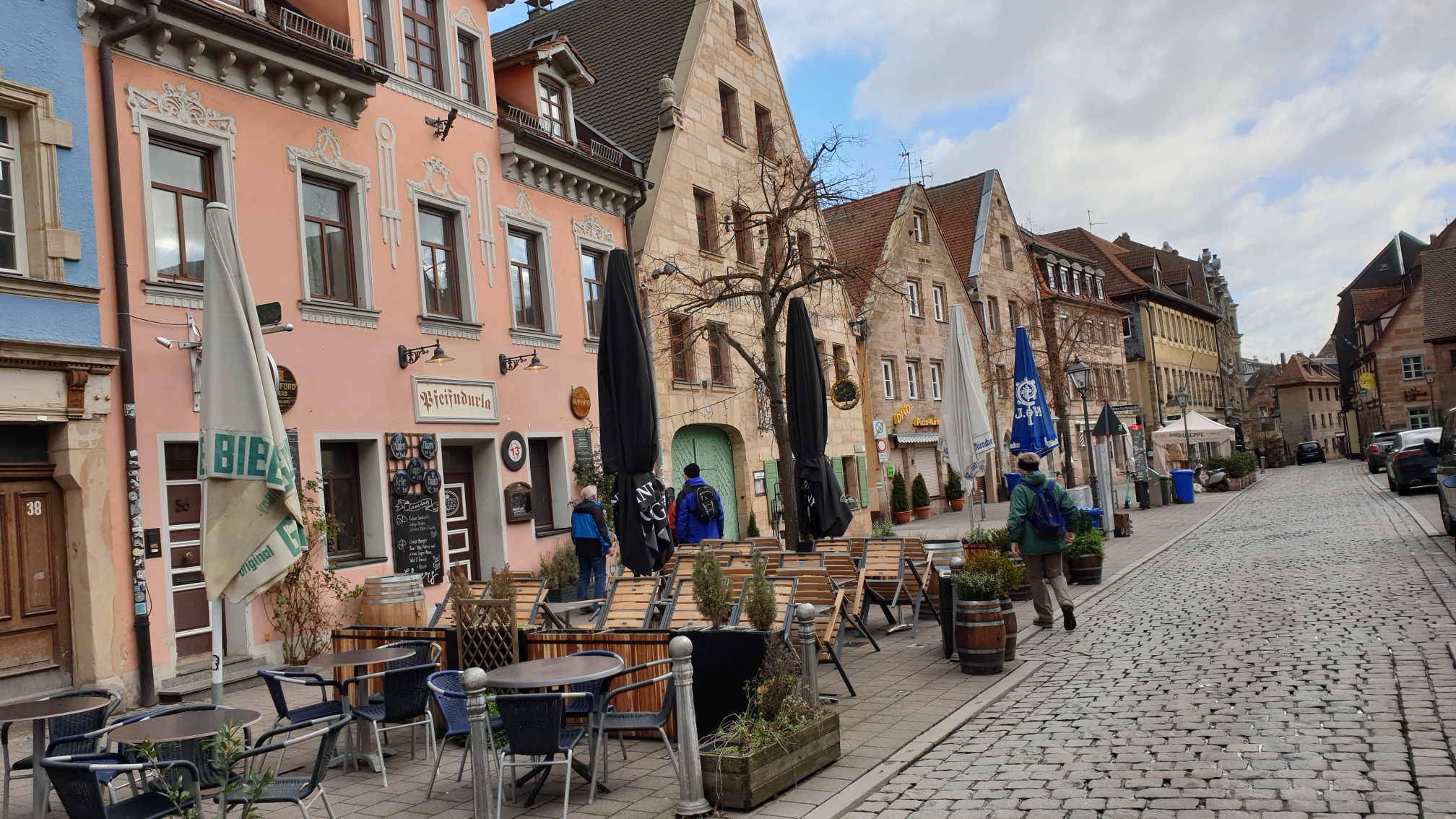 Pegnitz entlang zum Trödelmarkt gehen. Dann über