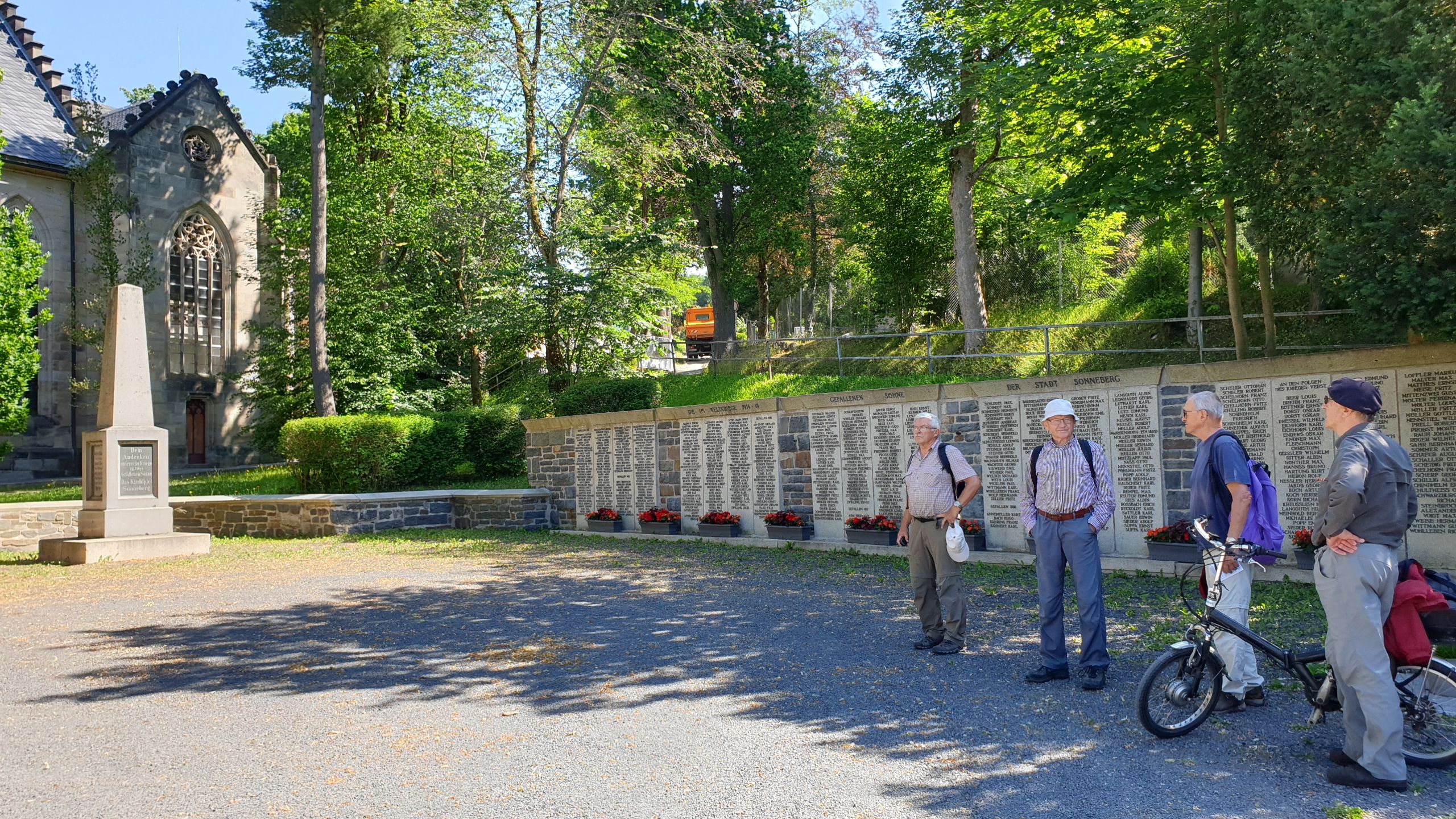 Mahnmal: 1874 entstand zum Gedenken an die im Deutsch-Französischen Krieg Gefallenen ein auf einem Sockel stehender Obelisk aus Marmor. Eine Erweiterung der Gedenkstätte folgte 1925 für die Gefallenen des Ersten Weltkriegs. Gegenüber dem Obelisk steht ein mit Granit verblendeter Pfeiler mit einer Kreuzbekrönung.