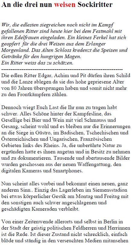 Die Sockis werden erfahrener - Achim, Edgar und Pit: drei neue Weise