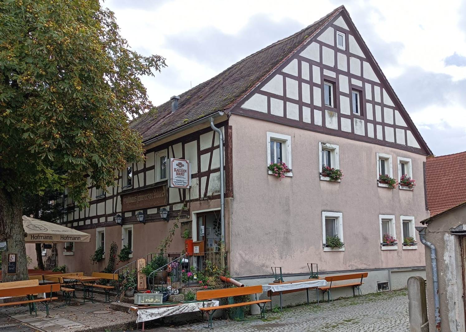 Zur Schnitzel-Magda: schönes Wetter, ein neuer sehr schöner Weg und Schnitzel vom Feinsten Da wir, der Umwelt zuliebe und den Spritpreisen zum Trotz, gern mit den Öffentlichen fahren, heute nun ein Versuch nach bzw. ab Oberntief mit ÖPNV - da uns die Strecke Bad Windsheim - Oberntief und zurück mittlerweile etwas zu lang geworden ist (jedenfalls wenn man die schönen (Um-) Wege nimmt). Die Verbindungssuche des VGN hat auch etwas brauchbares ausgespuckt und so starteten wir unsere Tour (heute ohne DB-Verspätung) in Bad Windsheim. Die dunklen Wolken, die sich, wie vom Wetterbericht vorhergesagt schon während der Zugfahrt verzogen hatten, machten einem blauen Himmel Platz. Die (geteerten) Wege im Windsheimer Kurpark waren noch feucht, der Steigerwald-Panorama-Weg gleich im Anschluss schon gut zu begehen und am Parkplatz der Verbindungsstraße nach Oberntief, lachte schon die Sonne. Der Panoramaweg war,