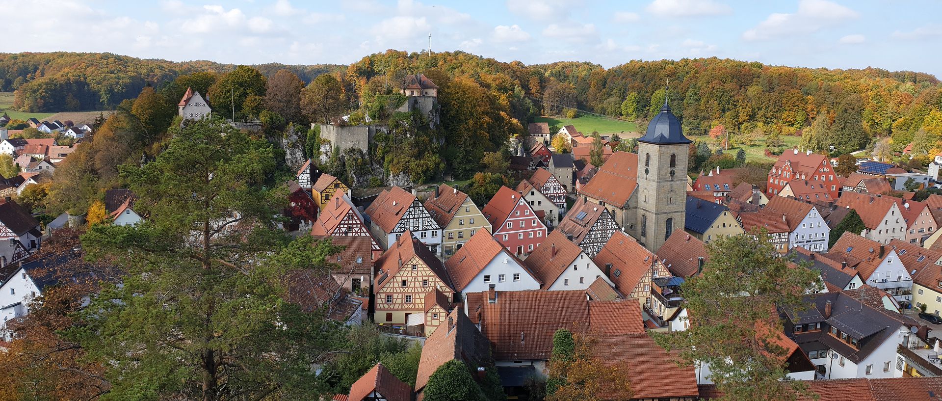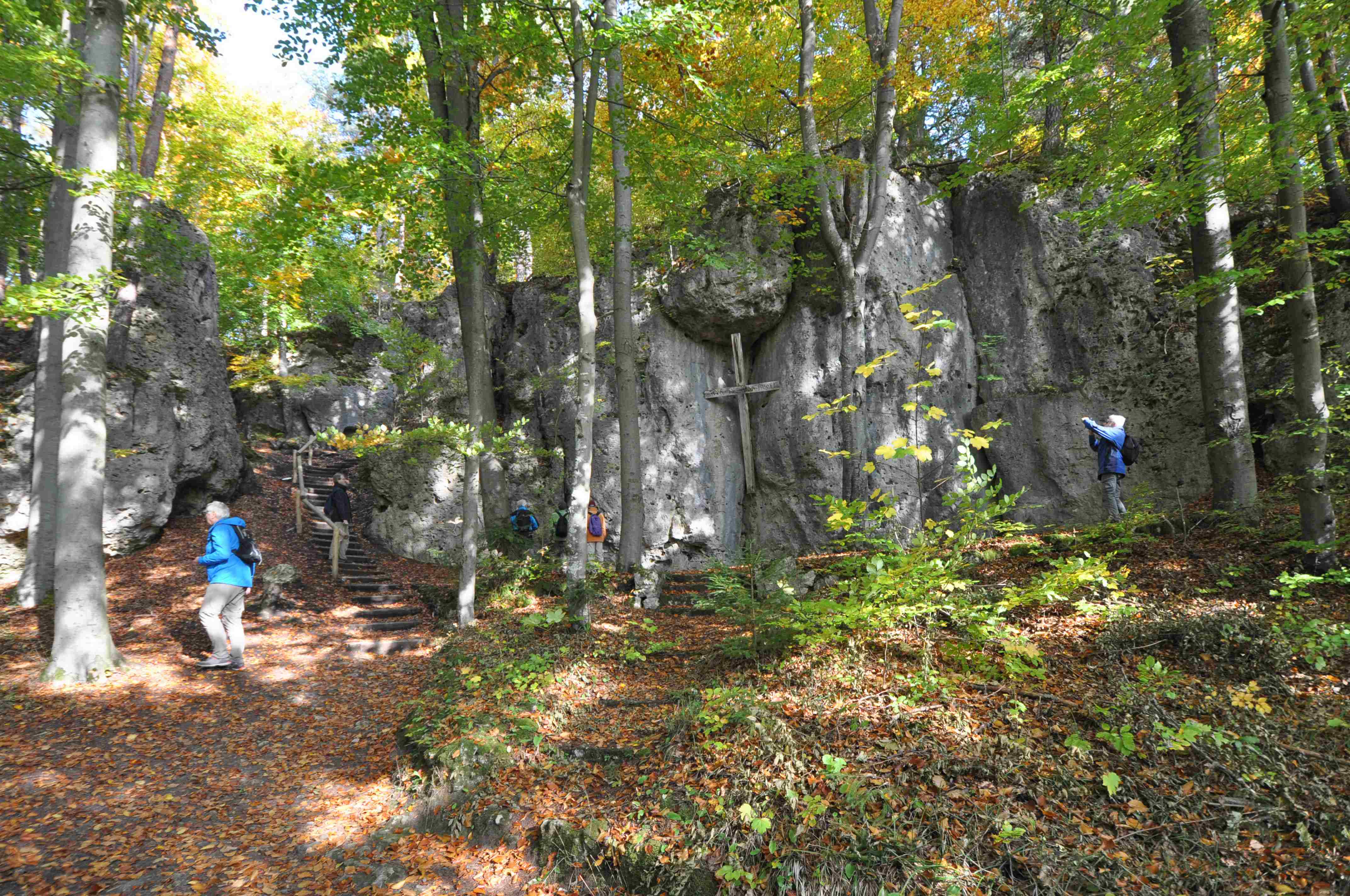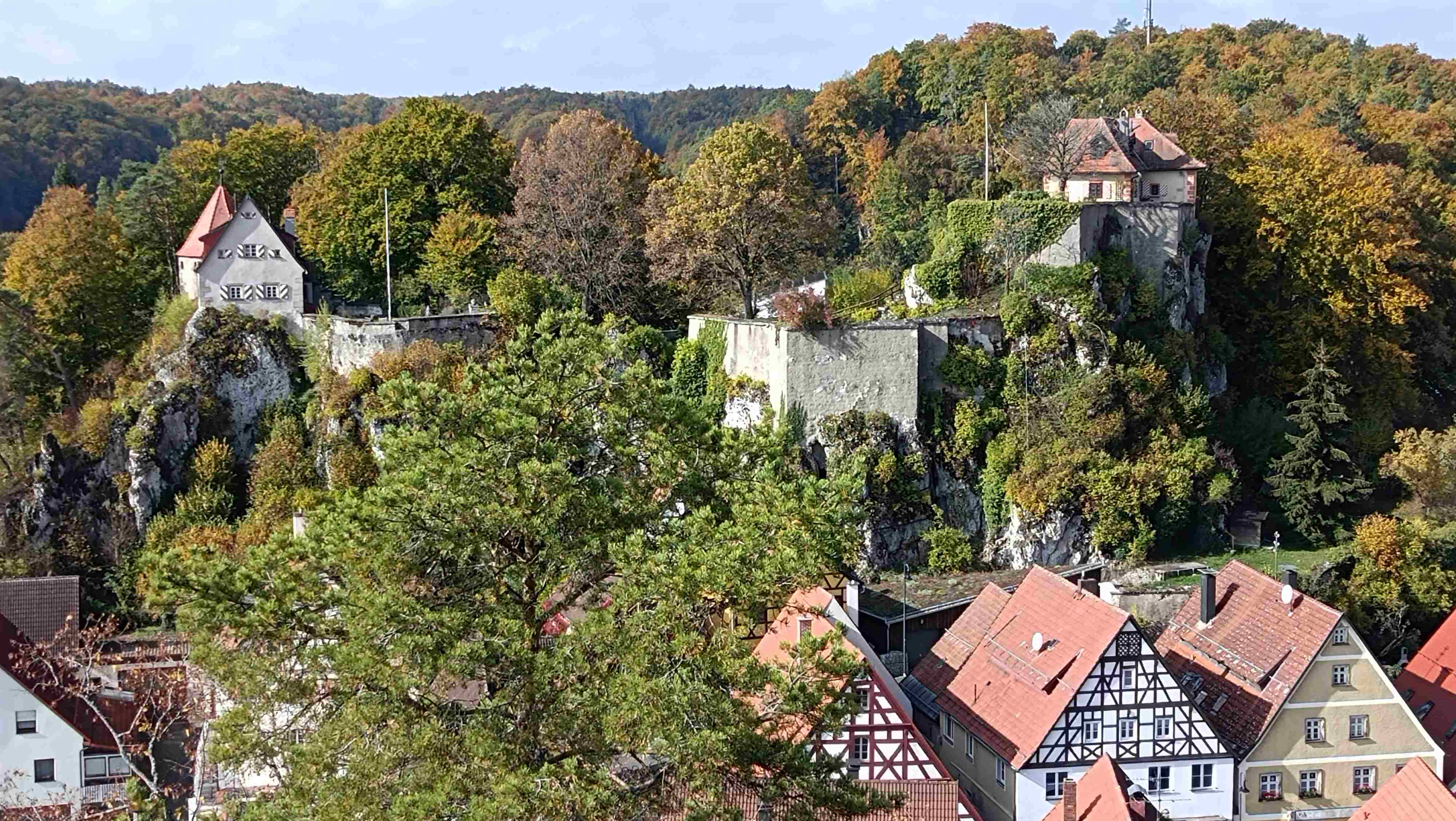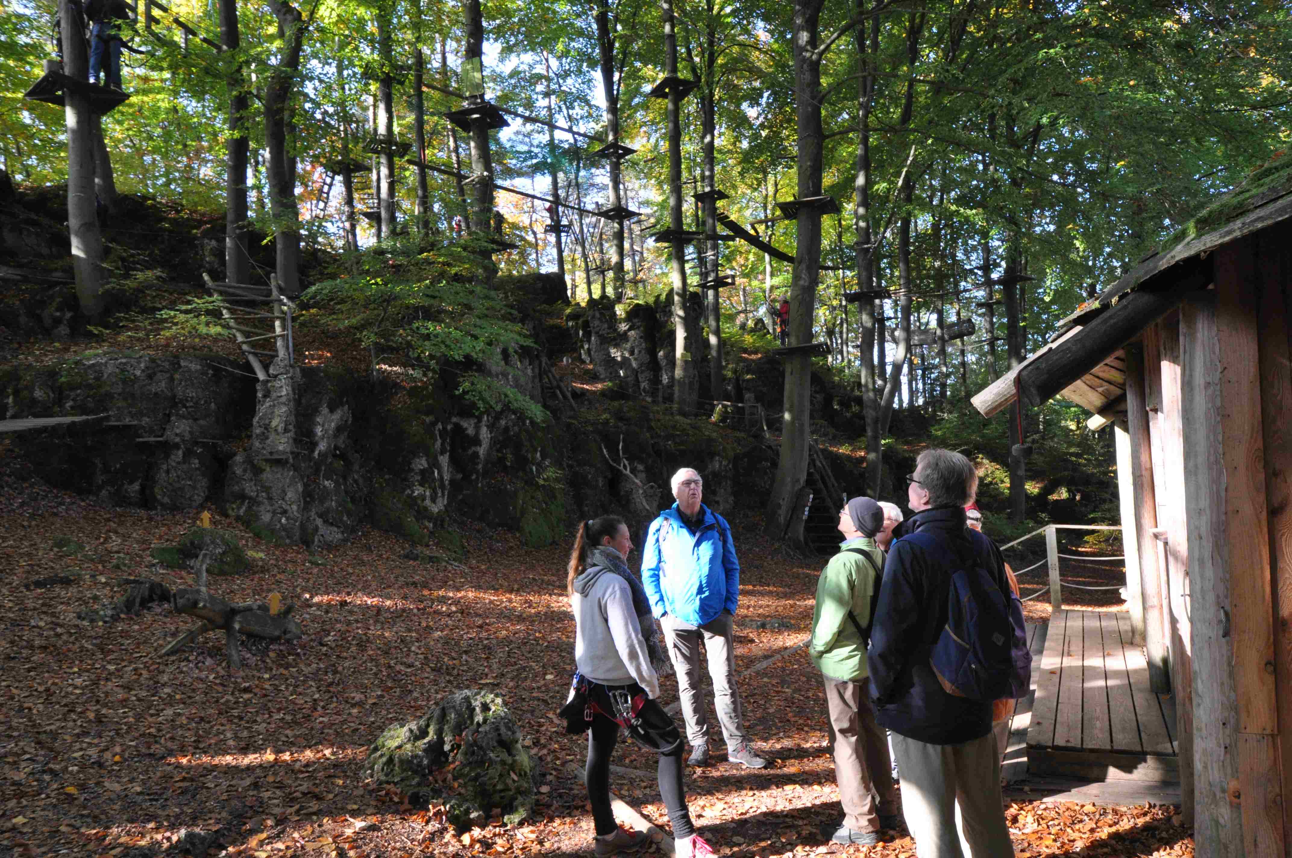 Betzenstein: ein Paradies für Felsen- und Hochseilkletterer, Höhlenfans und Naturliebhaber Heute nur eine kurze Wanderung (wir wollen uns schonen für unseren Herbstausflug J) dafür eine etwas längere Anfahrt (ca. 50 km, wieder mal) mit dem Auto.Aber es hat sich gelohnt! Das, was man zu sehen bekommt, erfreut das Auge - besonders natürlich im Herbst, wenn sich die Laubwälder in ihren schönsten Farben zeigen. Gedacht war das Ziel auch als Enkeltest. Und auch der war ein voller Erfolg: der Hochseilgarten ist für bis zu 10-jährige und auch darüber mit Sicherheit ein Erlebnis. Zahlen muss man übrigens für Kinder ab 5 und viel jünger sollten sie wohl auch nicht sein. Auch das Schwimmbad und die Landschaft drum herum wird jedes Kinderherz begeistern und die "coolen" Wege und Pfade lassen auch die 6-7 km nicht lang erscheinen. Vor allem, da am Ende der Wanderung auch noch der Aussichtsturm wartet, auf dem man einen schönen Blick über die Ortschaft und die Umgebung hat. Eine Empfehlung ist auch der Landgasthof Fischer in Stierberg (09244384), dessen Internetseite leider nicht funktioniert. (Mehr