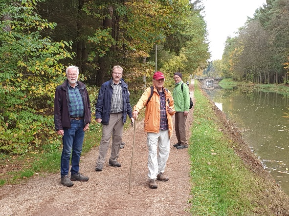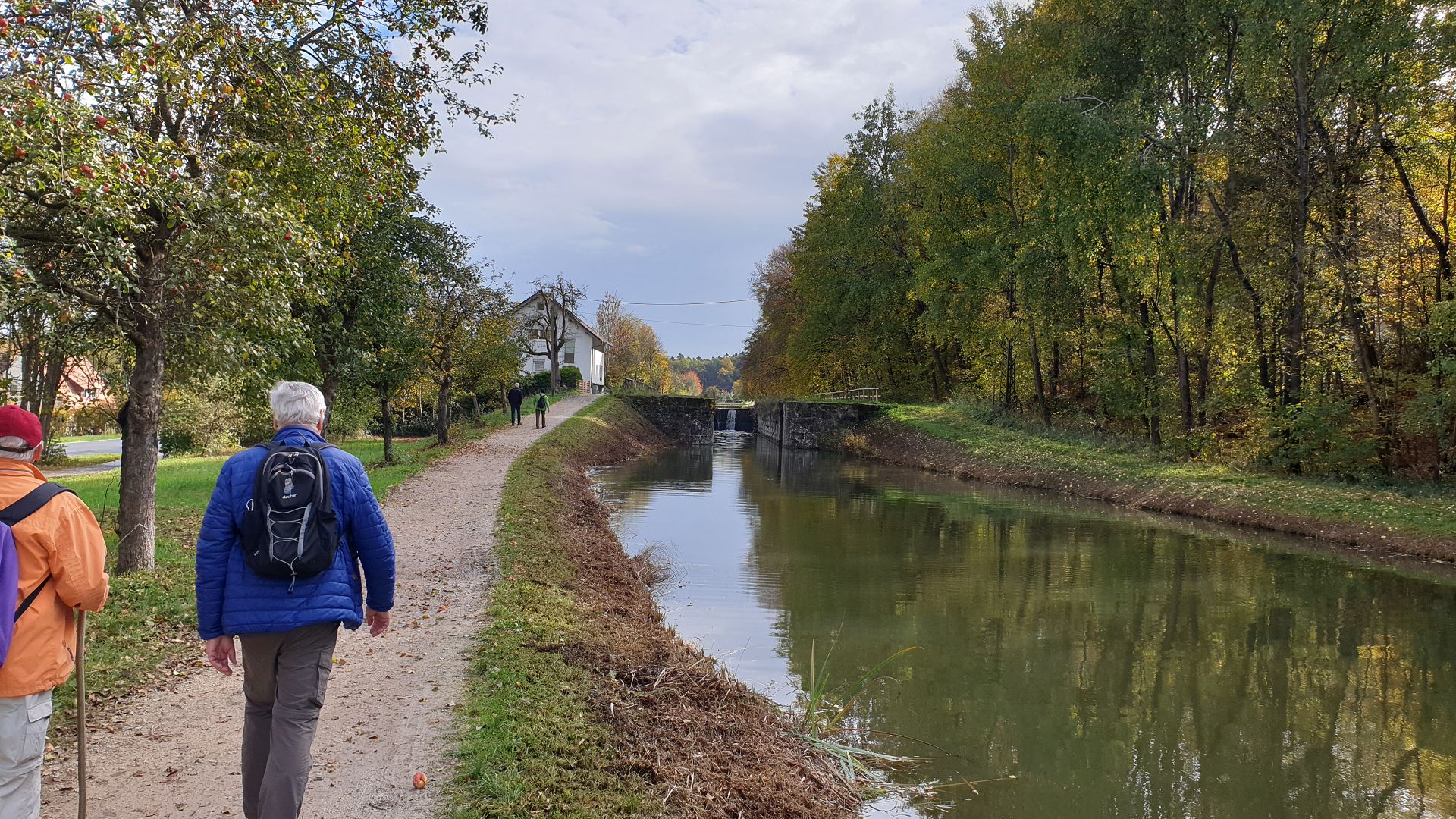 Eine leichte Wanderung in schöner Umgebung, die besonders im Herbst, wenn sich die Blätter färben und das Herbstobst reif ist, Spaß macht. Eine Strecke ohne merkenswerte Höhenunterschiede, zu der sich auch Willi wieder einmal angemeldet hatte. Doch leider musste er am Vortag einen anderen Weg gehen, allein, seinen eigenen, wieder einmal, dieses mal aber ohne plötzlich wieder aufzutauchen, ohne irgendwo an einer Wegekreuzung auf uns zu warten - nicht nur diese Eigenart werden wir in Zukunft vermissen!Traurig und mit gedämpfter Stimmung startete unsere immer kleiner werdende Truppe am Bahnhof in Burgthan. Nach wenigen Metern waren wir am Kanal, der uns bis Pfeifferhütte begleitete. Schon hier, aber nicht nur am Kanal selbst: immer wieder Obstbäume deren Früchte massenweise am Boden verfaulen. Jedoch auch noch genügend an den Zweigen, oft leider nur noch in höheren Regionen. Wir machten einen kleinen Schwenk über Oberlindelberg, um dem Lindelberg herum und trafen bei Schleuse 45 wieder auf den Kanal. Linkerhand liefen wir bis Pfeifferhütte, wo wir iim Gasthof Erlbacher (091833183) hervorragend bewirtet wurden: Spezialität (u.a.): Schälrippchen. Nach einem gemütlichen Aufenthalt waren wir nach ca. 1/2 Stunde wieder am Bahnhof in Burgthann und nach einer knappen Stunde in Erlangen. Bemerkenswert: wie schon bei