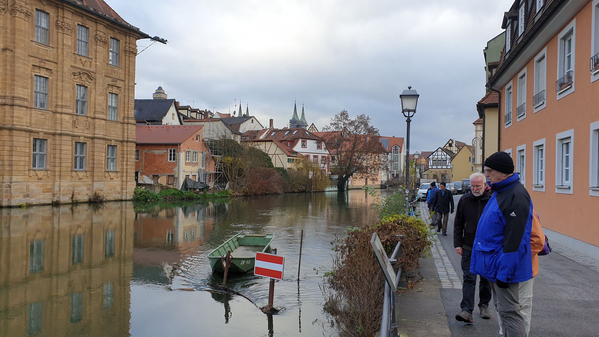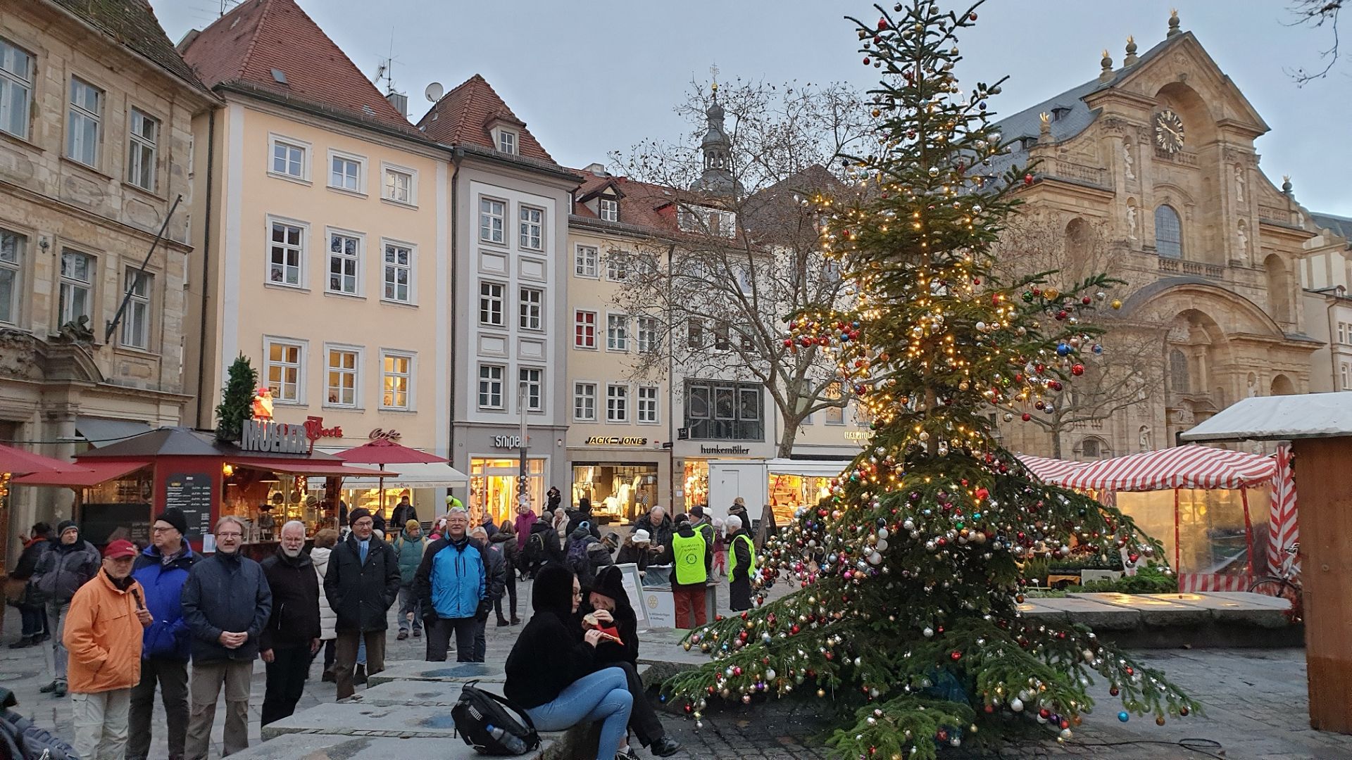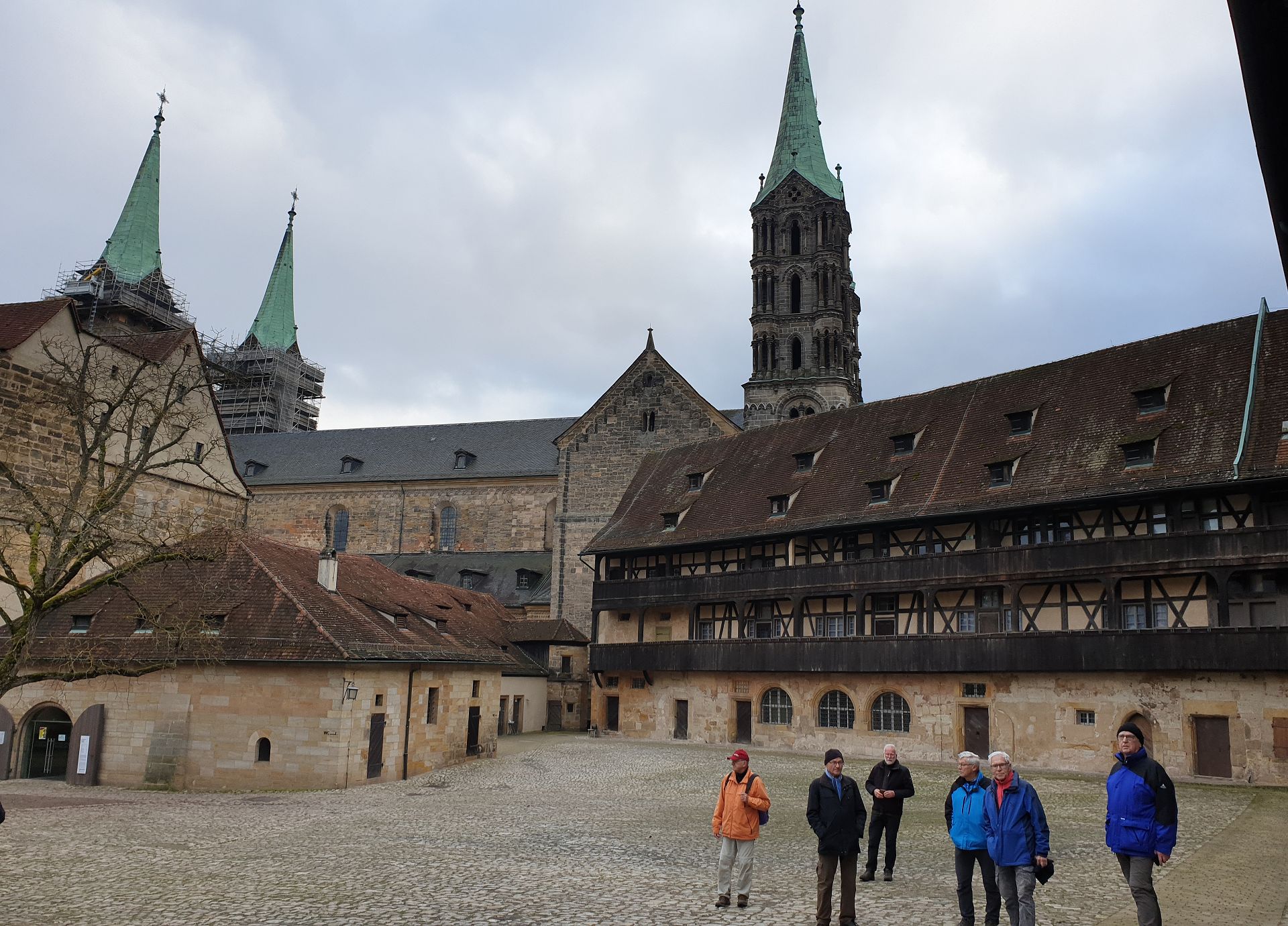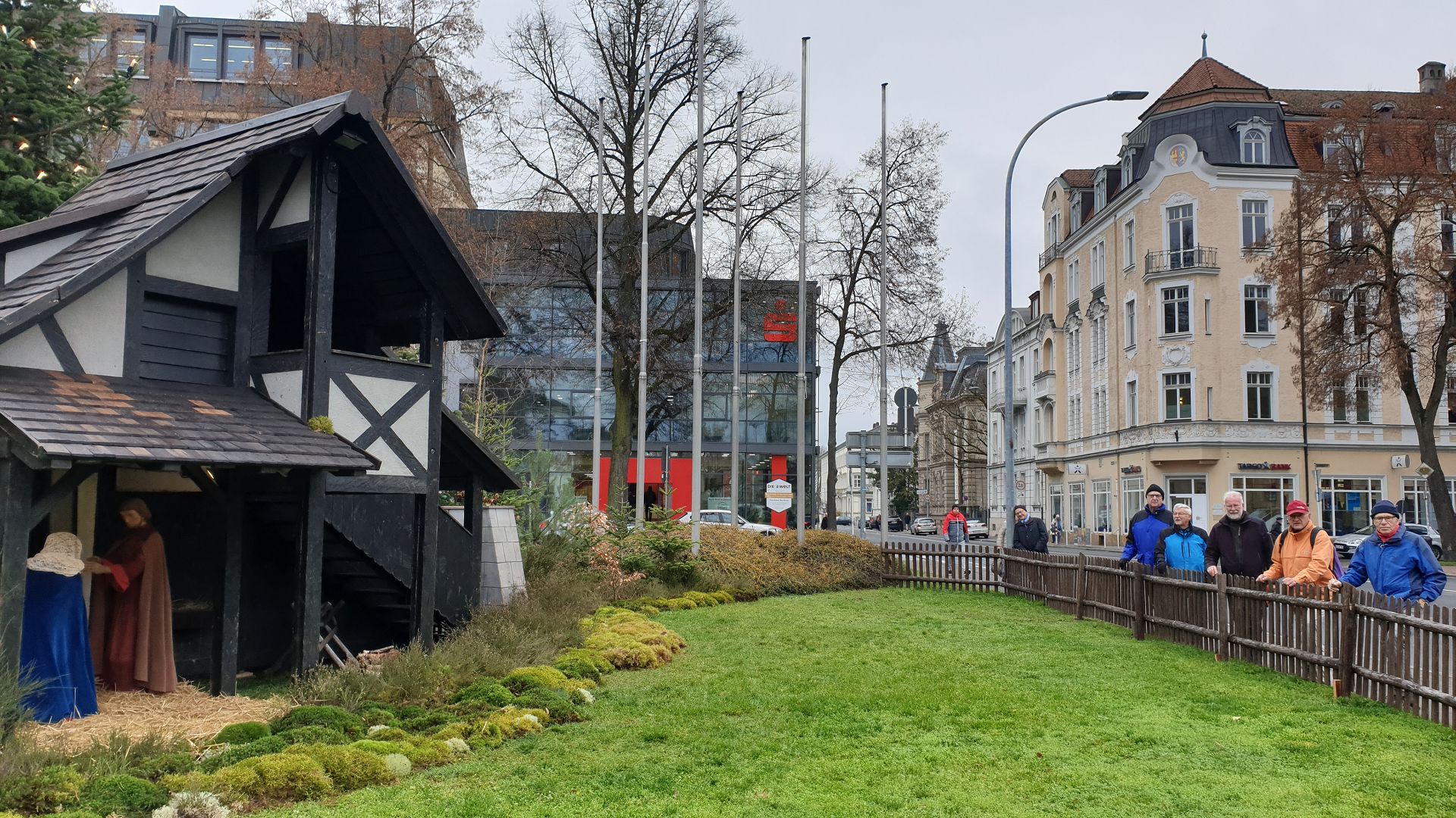 zu den deutschen Kaiserdomen Unsere Tour begann gleich mit einem Verhauer! Henry hat wohl schon vom Mittagsschlaf geträumt und Udo war mit einer neuen App beschäftigt. So liefen wir an der Königstraße vorbei und merkten erst an der Regnitz, dass aus den 700 Metern vom Bahnhof bis zur Brauerei Spezial schon 2 1/2 km geworden sind. Also drehten wir eine schnelle Ehrenrunde und kamen gerade noch rechtzeitig, bevor unsere reservierten Plätze anderweitig vergeben waren, an. Man muss nämlich wissen: während Gaststätten andernorts überall schließen, sie die in Bamberg schon Wochen im voraus ausgebucht! Nach dem (guten) Mittagsmahl und einem (oder zwei - guten) Rauchbier(en) liefen wir gemütlich unsere Strecke, freuten uns über die liebevoll hergerichteten Krippen und beendeten den Wandertag mit Kaffee und Kuchen in einem kleinen Cafe an der Oberen Brücke. Unsere Route mit Hinweisen: (mit Passwort) in der Socki-Cloud |