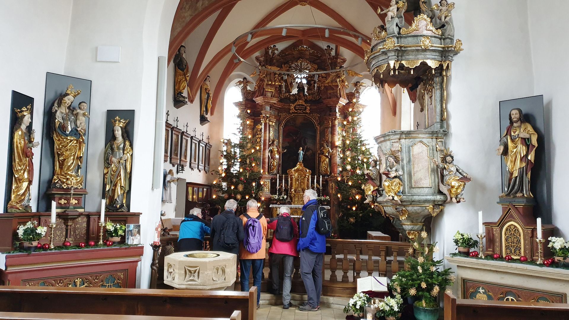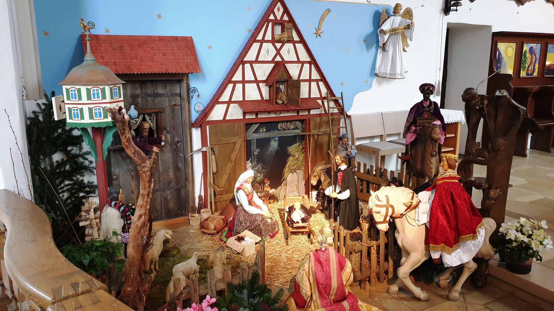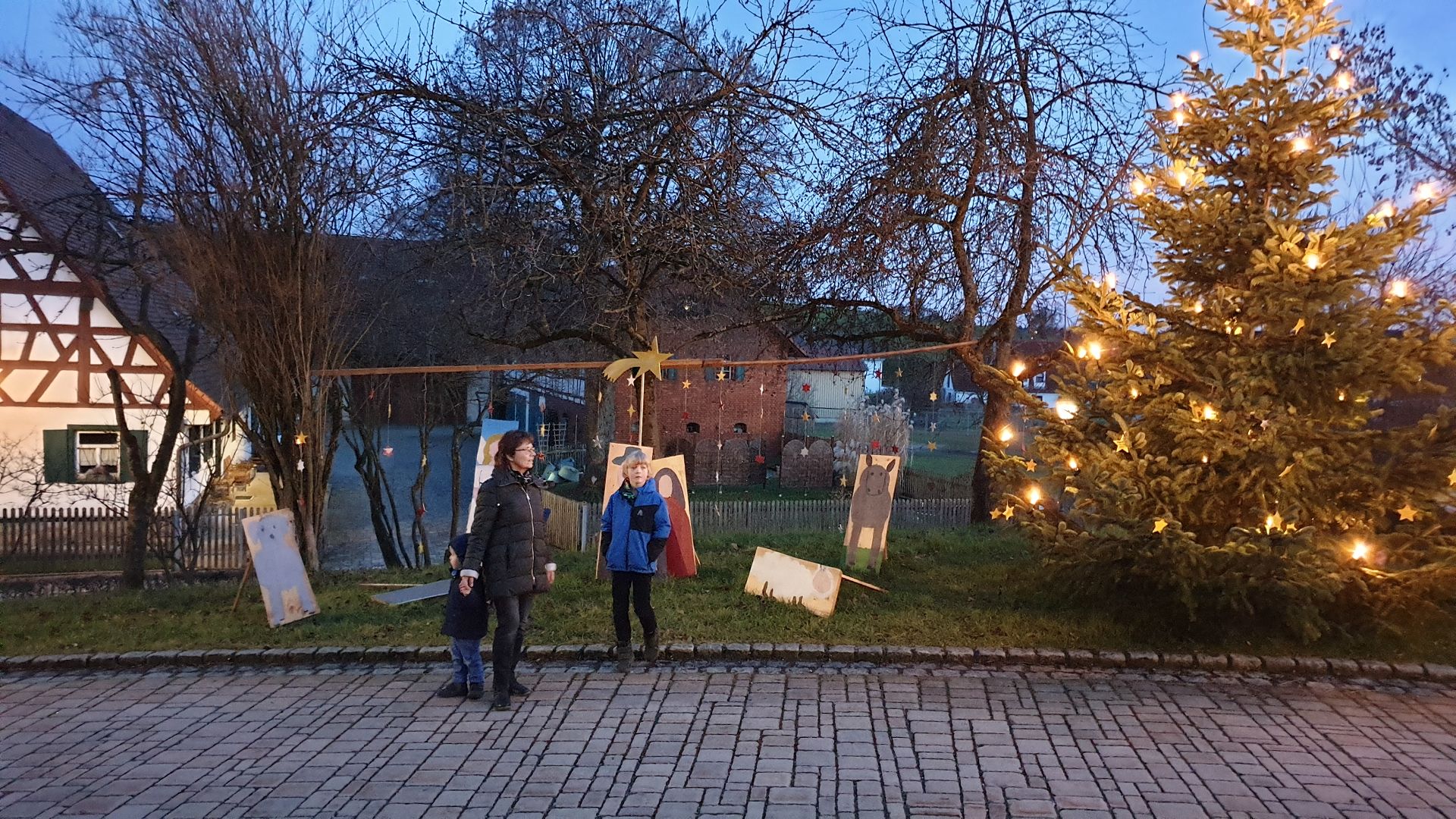 Krippenwanderung ab Langensendelbach, Einkehr in Effeltrich, über Hetzles nach Neunkirchen am Brand Auch wenn in diesem Jahr der Winter auf sich warten lässt, wollten wir unsere jährliche Krippenwanderung in die nähere Fränkische nicht ausfallen lassen - scho zwengs der Bohnakern in Effeltrich 😉. Also charterten wir den 208er und starteten in Langensendelbach. Hier wussten wir ja schon aus den Vorjahren eine schöne Krippe in einer schönen Kirche.Auch hier wurde, wir in allen folgenden Gotteshäusern, an "unseren" Papst, den kürzlich verstorbenen Benedikt XVI, erinnert. Auch wir bedauerten seinen frühen Abschied - schon aus seinem Amt. War er doch einer, der zu seinem Glauben auch stand, wo andere sich des Kreuzes entledigten und der auch die Missionierungsverpflichtung, die so mancher Würdenträger vergessen haben mag, ernst nahm. Denn was soll aus den christlichen Werten, die das Abendland in 2000 Jahren geprägt haben und die die demokratischen Länder zu dem gemacht haben was sie heute sind, werden, wenn selbst die Würdenträger, die verpflichtet sind die Lehre zu verbreiten, die Quelle der sie entstammt, verleugnen, und stattdessen Religionen goutieren, deren Gebote im Widerspruch zu unseren Werten, im Widerspruch zu unserem Grundgesetz stehen! Immer wieder sehenswert auch die ganze Anlage der Wehrkirche in Effeltrich und die Krippe mit St. Martin auf seinem Pferd, neben der tausendjährigen (Tanz-) Linde (mehr dazu auf den Tafeln unten bei den Bildern). Eine Empfehlung ist das Gasthaus zur Linde, in dem der Preisauftrieb noch nicht in dem Maße eingesetzt hat wie anderswo - das sollte man durch viele Besuche honorieren (damit das auch so bleibt). Eine weitere Spezialität neben den Bohnenkernen (mit Rauchfleisch) ist übrigens der saure Karpfen (mir weißer Soße). Wohlgenährt ging es nun nach Hetzles. Vorbei an der "Victor-von-Scheffel Gedenkstelle" mit der Erinnerung an den schönen Text des Frankenliedes: "Wohlauf die Luft geht frisch und rein", vorbei am Kriegerdenkmal, den Tafeln mit den Entfernungsangaben zu markanten Orten auf unserem Globus, zur "Flurkapelle der Achtsamkeit", wo wir eine kurze Pause einlegten und dann vorbei an der Gedenkstelle am Unglücksort des 3-jährigen "lieben Kindes Michael". In Hetzles beeindruckte als erstes das schöne Taubenhaus und auch die Kirche ist, besonders zur "Krippenzeit", immer einen Besuch wert (und wie man bei den Bildern sieht, zog es nicht nur uns dort hin). Auch in das Käppele in Baad warfen wir einen Blick - allerdings nicht der Udo, der war nämlich auf der vergeblichen Suche nach der anderen Agnes Bernauer, von der er sich in Neunkirchen ein Stück Torte erhofft hatte. In Neunkirchen am Brand, wo wir schon vor der Kirche von den hölzernen Schatten der heiligen 3 Könige begrüßt wurden, erreichten wir unser letztes Wanderziel: auch die Krippe in der immer schön goldglänzenden Kirche ist sehenswert. (Hier, in 9kirchen und Umgebung, kann man übrigens an bestimmten Tagen eine eigene Tour zu mehr als 30 Krippen in Privathäusern und Kirchen unternehmen). Nachdem sich die Mehrheit