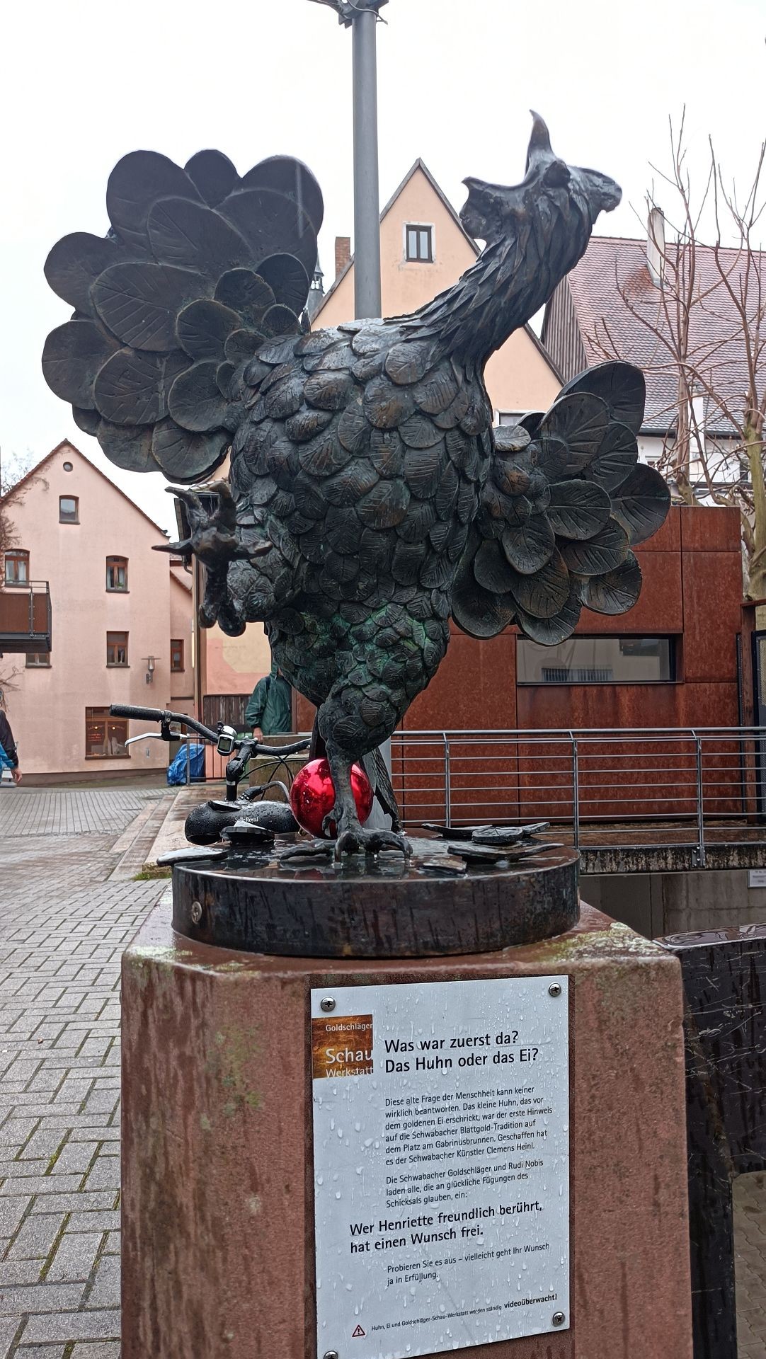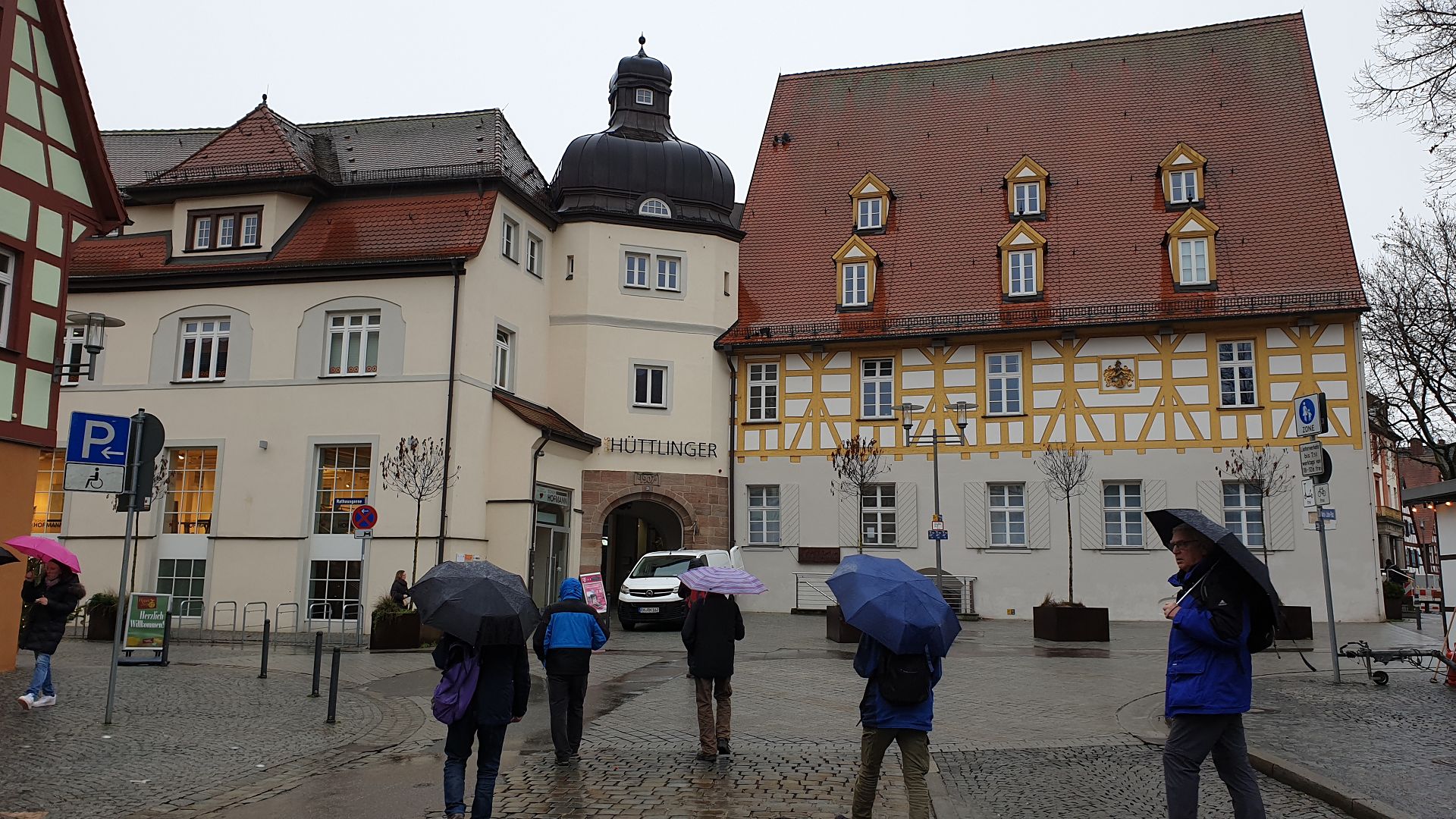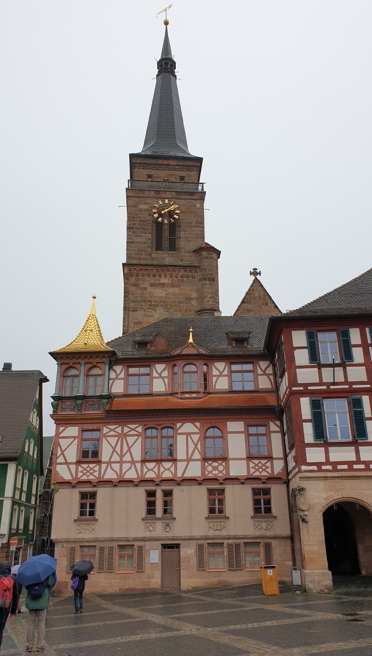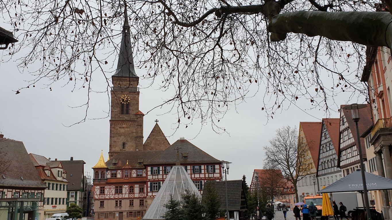 Schwabach, Stadt der Nadler, Goldschläger und auch der Hugenotten Der Wetterbericht machte uns die Entscheidung leicht, eine Stadtwanderung der freien Natur vorzuziehen. Und Schwabach mit dem schönsten Marktplatz Frankens (das glauben zumindest die Schwabacher 😁) stand schon seit längerem auf unserer Liste. Zwar sollte es ursprünglich eine Krippenwanderung oder eine Wanderung mit Einkehrschwung im Burgersgarten sein - aber beides können wir ja noch nachholen. Denn Schwabach ist tatsächlich ein schönes kleines Städtchen - leider fehlen die fränkischen Wirtshäuser, aber wie gesagt, der Burgersgarten im Sommer ...Bei wolkenverhangenem Himmel liefen wir vom Bahnhof Richtung SüdWest, am Stadtpark vorbei, zuerst durch ruhige Wohngegenden; später dann in freier Natur Richtung NordWest nach und durch Unterreichenbach. Gleich nördlich des Ortes stießen wir auf unser erstes Ziel: den Nadlersbach. Der Nadlersbach wird westlich von Unterreichenbach von der Schwabach abgezweigt und sein Wasser wurde wohl, genauso wie das des Mühlbaches, der dann vom Nadlersbach abgezweigt wird, genutzt, um Maschinen - wie der Name vermuten lässt der Nadler - anzutreiben. Denn Schwabach ist nicht nur durch die Goldschläger bekannt, sondern auch durch seine seit Mitte des 16. Jh. dort ansässigen Nadler, die hauptsächlich Nadeln und Eisendraht herstellten (mehr dazu hier). An dem fast waagrecht