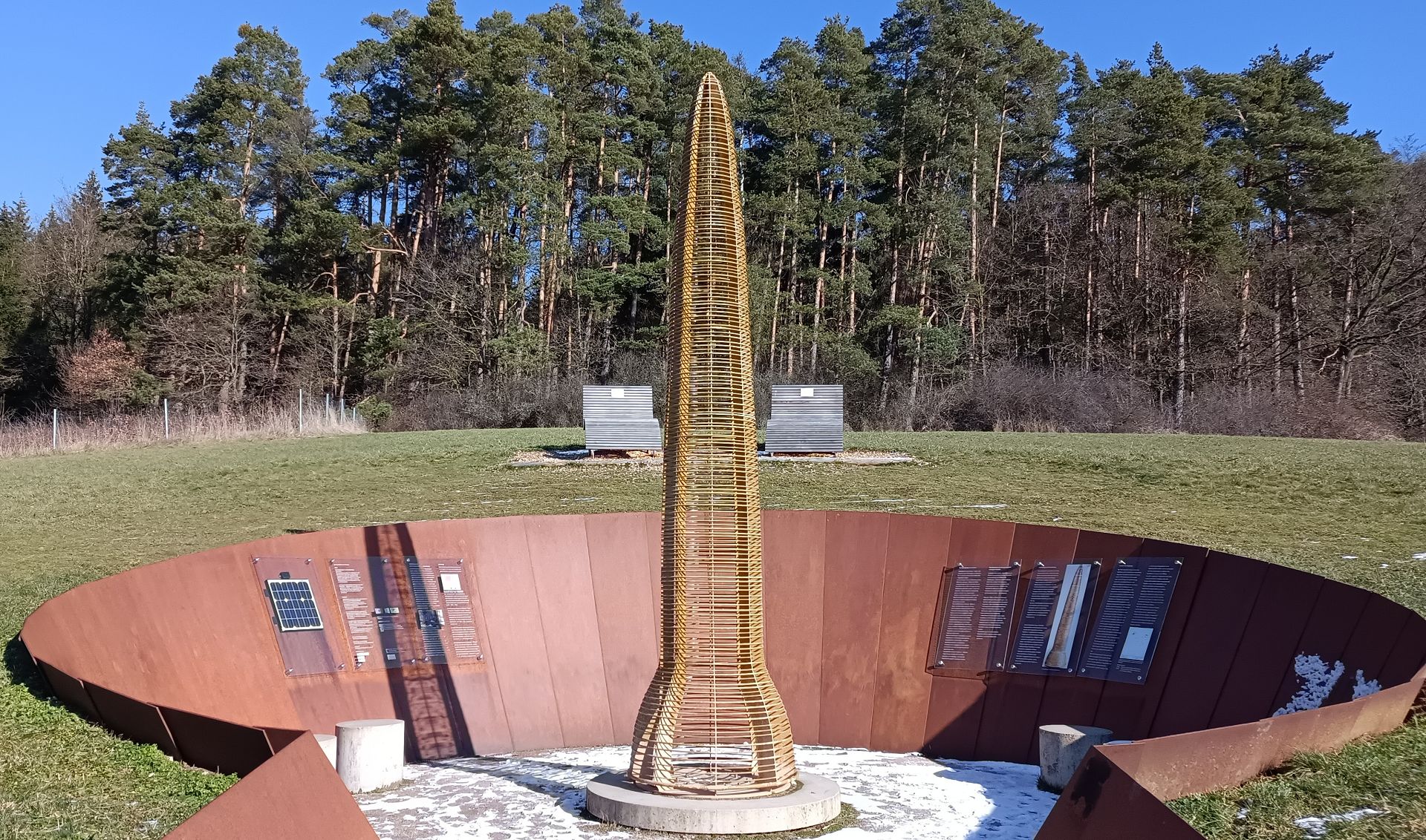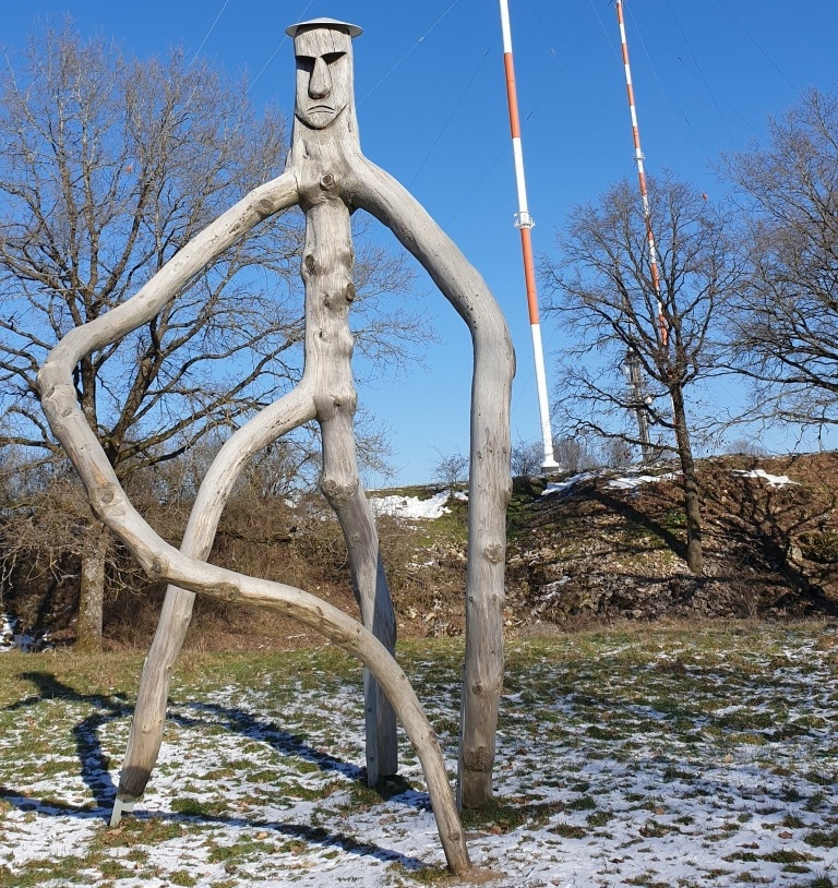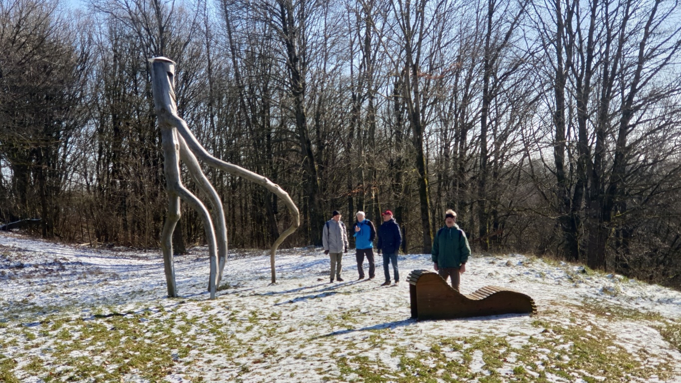 Größeres? Dann ging es weiter - ordentlich bergauf - zu den Höhlen, die durch den Abbau des "Silbersandes" entstanden sind. Die von Außen unscheinbar wirkenden Löcher beindruckten uns dann doch sehr, als wir in gebückter Haltung ein paar Schritte ins Innere wagten. Nun waren es nur noch wenige (Höhen-) Meter zum Dillberg mit seinen Sendeanlagen und zum Wächter des Poesieweges, von dem man einen herrlichen Ausblick in die Landschaft um Postbauer-Heng hat. Von dort ging es, etwas steiler, bergab, was auf feuchtem Laub und etwas Schnee unsere ganze Aufmerksamkeit erforderte. Auch war der schmale Weg nicht ganz einfach zu finden. Einkehren kann man gut in der (natürlich) Goldenen Krone in Buch. Nach einer gemütlichen Mittagsrast (nur Henry und Roland hatten es etwas eiliger und entfernten sich mutwillig von der Truppe) marschierten wir bei herrlichem Sonnenschein nach Postbauer-Heng und fuhren von dort mit der S3 über Nürnberg (warum heißt die Verlängerung von Gleis 1 eigentlich Gleis 30 ???) zurück nach Erlangen. - POI - Franken-Tour: ... Der Ezelsdorfer Goldblechkegel trat im Frühjahr 1953 als "bei der Arbeit hinderliches Blech" direkt unter der Erdoberfläche, in etwa 8 cm Tiefe, zutage. Der Fundort liegt am Fuß des bewaldeten, 576 m hohen Brentenberges an der Gemarkungsgrenze zwischen den Orten Ezelsdorf und Buch in der Nähe von Neumarkt in der Oberpfalz...... Der goldene Hut wurde vom Finder, einem Arbeiter, völlig zerhackt und zur Seite geworfen. Die fragmentierten Blechteile wurden später ob ihrer goldschimmernden Färbung von der Frau des Arbeiters eingesammelt und einem Zahnarzt vorgelegt. Durch eine Schmelzprobe stellte sich heraus, dass das Blech aus gediegenem Gold bestand... / Quelle: http://de.wikipedia.org/wiki/ Bucher Silbersandhöhle: Hier wurde Sandstein abgebaut, im 2. WK als Schutzhöhle genutzt. Von außen nicht sehr spektakulär, innen ist man positiv überrascht über ein kleines Labyrinth mit Abzweigen und Sackgassen; für Kinder super zum Versteck spielen. Verlaufen kann man sich nicht. Faszinierend ist das Geräusch der durchsickernden Wassertropfen. Ggf. (Kopf)Lampe und wasserdichtes Schuhwerk. Achtung: Fledermäuse / Quelle; "Komoot" (Im Mai/ Juni passiert man bei Kilometer ca. 5,5 bis 6 (rote Strecke mit 7,2 km) eine ganze Wiese mit Knabenkraut) |