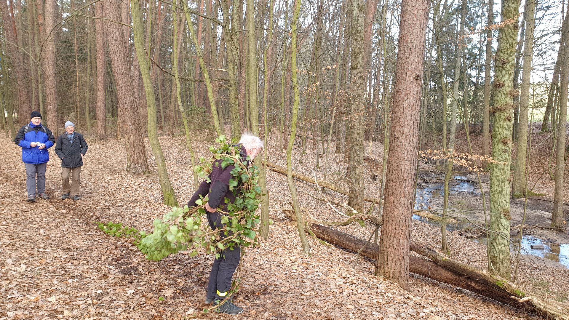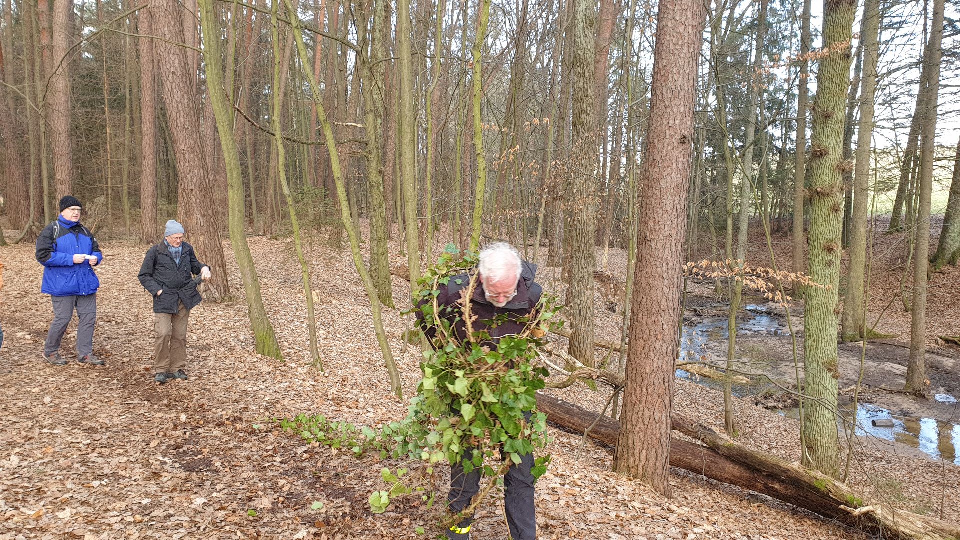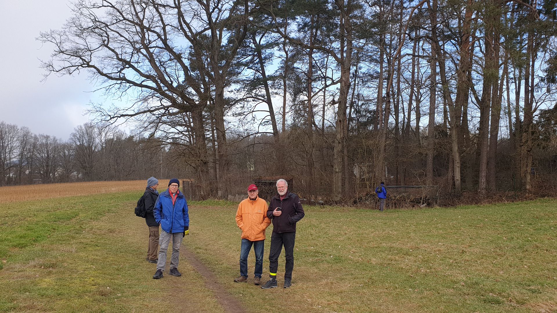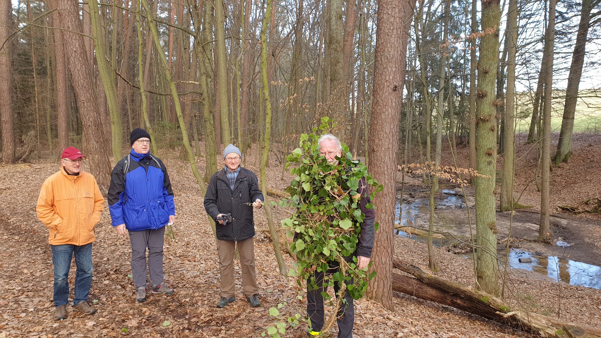 Mit Tagesticket-Plus ging es heute ohne umzusteigen (und ohne Verspätung) mit der S1 nach Röthenbach an der Pegnitz, Haltestelle Seespitze. Dort angekommen konnte man am noch etwas kühlen Vormittag bereits ahnen, dass es ein schöner Sonnentag werden könnte. Und tatsächlich ließ unser Gelber Zwerg nicht lange auf sich warten. Gutgelaunt marschierten wir mit Grünstrich/ Rotkreis über freies Feld, tankten Vitamin D und Geo-Manni versuchte sich schon nach 200 m (vergeblich) an einem Käsch. Als wir in einen schönen Wald mit imposanten Kiefern und romantischen Schluchten kamen, Schluchten, in denen sich der Himmelbach wunderschön windet, verhedderte sich Karsten vor lauter Begeisterung in eine Liane - aus echtem Efeu! (Das war aber kein Problem für ihn, denn nach eigener Aussage, lässt er sich von seiner Freundin auch ab und zu gern so, oder so ähnlich, einwickeln). Dort wo wir den Bach überquerten stießen wir bei einem Anwesen mit einem künstlerisch gestalteten Steinwall und mit verziertem und bemalten Kaminholz auf das Wanderzeichen Grüner #. Gleich dahinter, auf einer kleinen Anhöhe konnte man den Großen Hans-Görgel in der Ferne sehen, eines unserer kommenden Ziele. Bei Letten ging es über die Autobahn. Auch immer wieder interessant zu erleben, wie diese Straße, auf der man so oft mit dem Auto gefahren ist, von oben aussieht. Nach ca. einer halben Stunde durch eine gesunden Wald mit viel frischem grünem Moos und nach dem Überqueren zuerst der St 2240 (danach folgten wir Grünkreis) und dann der LAU 19, erreichten wir eine kleine Anhöhe, von der man, genau hinter dem Kirchturm von Schönberg, noch einmal den Großen Hans-Görgel und dann, weiter rechts, den Moritzberg bewundern kann. Nach weiteren ca. 300m kamen wir dann zum ersten Höhepunkt unserer heutigen Wanderung, dem Sprosselbrunnen. Den sollte man sich unbedingt von "vorn", also von unten, ansehen. Der Sprossel- oder auch Spratzelbrunnen ist eigentlich eine kleine Quelle, ein Wasseraustritt aus mehreren ausgespülten Löchern im sandigen Gestein. Nachdem jeder seine Bilder im Kästla hatte, erreichten wir nach weiteren ca. 600 m auf etwas matschigen Wegen den Klingenden Wasserfall. Auch wenn die Eiszapfen mangels länger anhaltender Kälte nicht sehr groß waren und partout nicht klingen wollten, ist die kleine Schlucht immer ein Erlebnis - und auch mal einen Besuch mit den Enkeln wert (über Haimendorf auch auf kurzem Weg mit dem Auto erreichbar). Natürlich mussten einige Mutige auch nach unten zum Hüttenbach steigen, um von dort aus die besten Bilder des Kunstwerkes der Natur zu schießen. Im Sommer kann man sich zwar auch am beruhigenden Plätschern des (meistens) Wässerchens erfreuen. Nach stärkerem Regen erinnert die Akustik, vor allem bei leichtem Wind, etwas an den Namen das Wasserfalls. Doch interessant macht dieses kleine Naturdenkmal in der ca. 5 m tiefen Hüttenbachschlucht etwas anderes: Im Gegensatz zu "normalen" Wasserfällen entfaltet dieser seine größte Wirkung nämlich im Winter. Das auch im Winter meist spärlich fließende Wasser gefriert nach längeren verschiedenen Frostperioden in nicht fest verbundenen Schichten neben- auf- und übereinander. Durch sich ändernde Temperaturen, auch durch das sich unterschiedlich verteilende, nachfließende Wasser, entstehen Spannungen und die Schichten brechen und/ oder reiben sich aneinander. Dadurch entstehen dann mystische Töne. Das gurgelnde und glucksende Wasser hinter den vielen Eiszapfen und Eisschichten tut ein Übriges, um die interessante Klangkulisse zu erzeugen. (Das ist meine persönliche Interpretation nach Internetstudium und Schulphysik). Kurz hinter dem Wasserfall verabschiedeten wir uns vom Grünen Kreis und nahmen den Weg direkt nach Haimendorf, und dort gleich den ersten Abzweig nach rechts mit Grünstrich, Richtung Renzenhof. Obwohl sich schon langsam der Magen meldete, wir hatten uns erst für die zweite Tischzeit angemeldet, machten wir noch einen Abstecher zum Fürer-Schloss, das man allerdings nur durch einen eisernen Zaun, aus angemessener Entfernung, bewundern kann. Danach liefen wir ein Stück auf Teer. Achtung: kurz hinter dem Anwesen "Grüne Au", vor der Kurve, biegt der Weg, nun Blaukreuz, nach rechts ab. Auf schönen Pfad ging es nun bis Renzenhof, wo wir pünktlich um 13:15 im Gasthaus Mais einliefen. Das Gasthaus war, wie immer, gut besucht - gut, dass wir reserviert hatten (was dieses mal, sicherheitshalber 🙂, Udo übernommen hatte). Wir wurden hervorragend bewirtet und das Laufer Simon-Bier zählt sowieso zu unseren bevorzugten Sorten, wobei auch das bleifreie Pyraser von einigen, sogar als "Hausmarke", sehr geschätzt wird. Grüßen wollen wir von hier aus die netten Gäste am Nachbartisch, für die ich oben bei "Route ... Download" eine Variante ab Lauf und bei "Wandergebiet..." und unten mit "Komoot" auch noch ein paar andere Wandervorschläge zum Klingenden Wasserfall beigelegt habe.