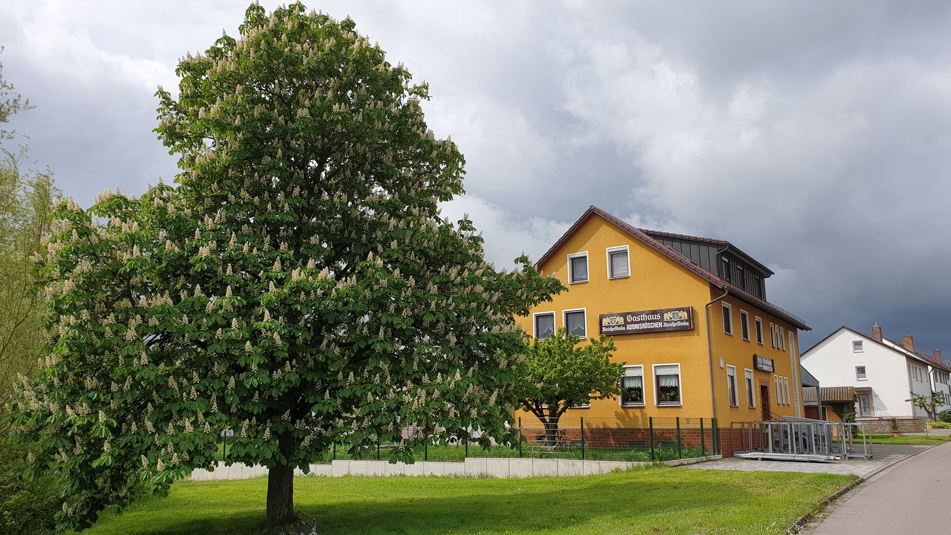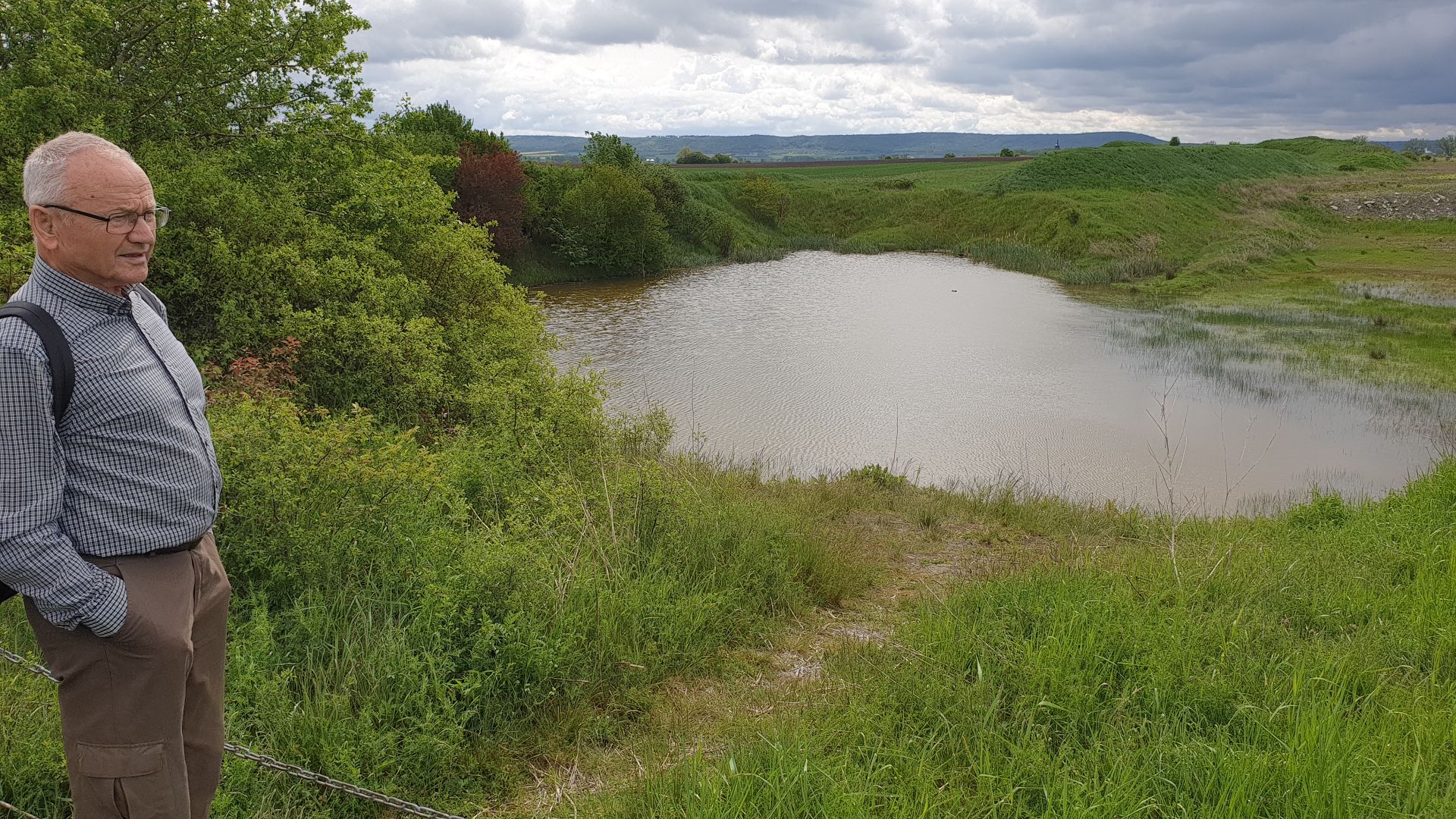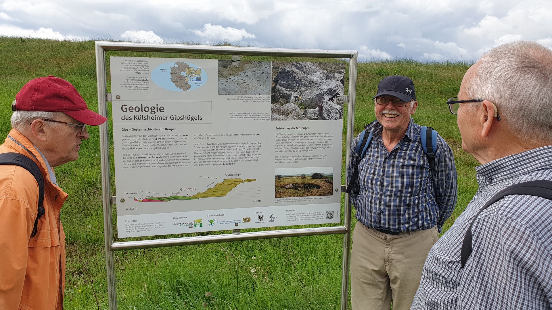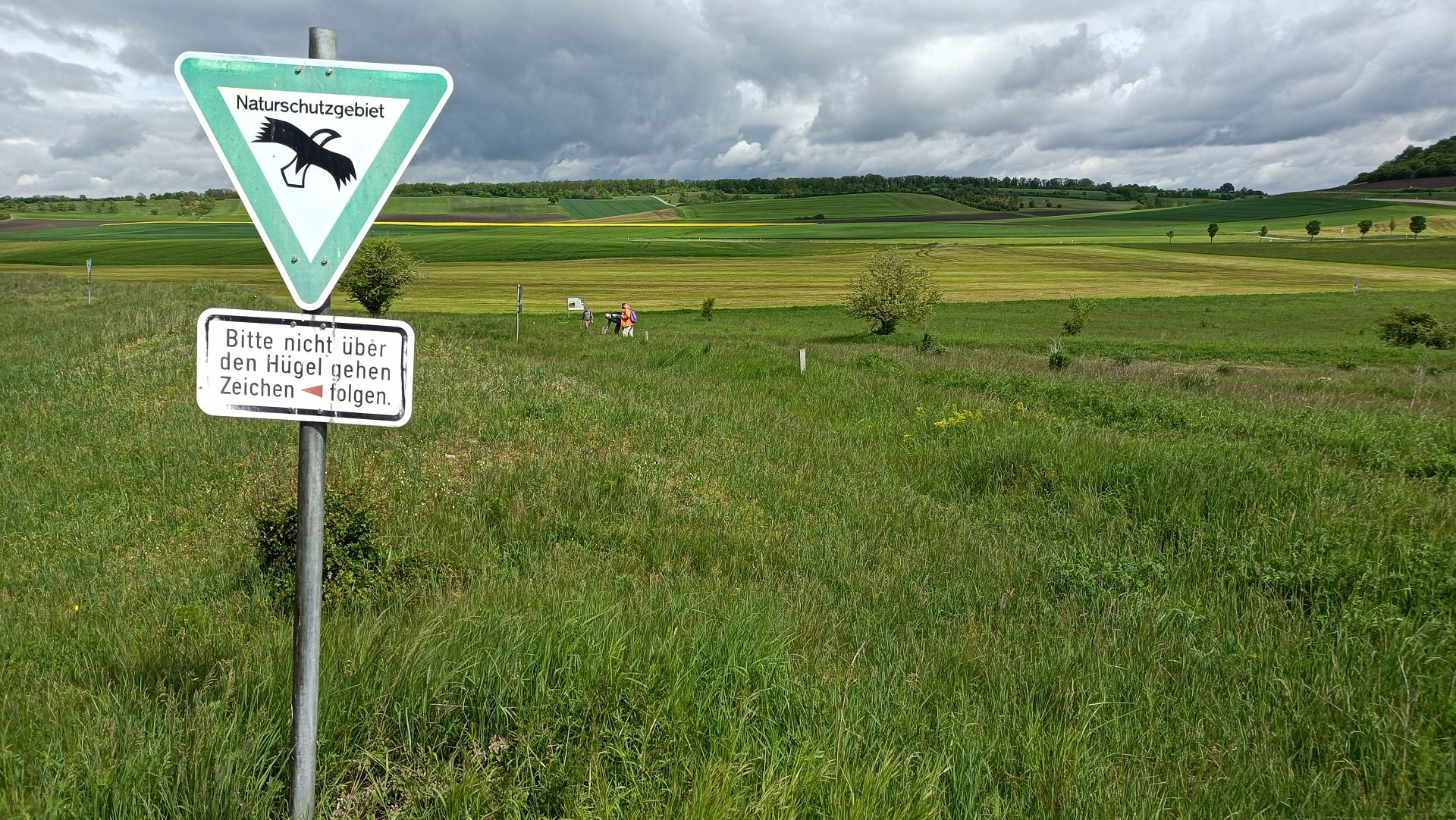 ... so war jedenfalls der Plan. Um es vorweg zu nehmen: Küchenschellen und Weinberg-Tulpen haben wir nicht gesehen, aber dafür viele schöne gelbe Frühlings- und ... unerwartet: schöne rote Sommer-Adonisröschen - und die Schnitzel bei der Magda im Schwarzen Adler in Oberntief sind ohnehin die Reise wert! Aber der Reihe nach: Vom Bahnhof in Bad Windsheim ging es durch den Kurpark zum Scheibenberg, an dem es, laut eines Berichtes des DAV, im April 2016 noch mit Weinberg-Tulpen übersäte Rebhänge gegeben haben soll. Heute fanden wir am Scheibenberg weder Reben noch Tulpen. (Nachtrag: am 14.06 entdeckten wir beim Vorbeifahren auf der Straßenseite einen Hang mit Reben. Den kann man zwar auf dem vom DAV beschriebenen Weg nicht sehen, aber trotzdem wollen wir ihn nächstes Jahr, Anfang Mai, genauer unter die Lupe nehmen). Nichtsdestotrotz bot der Hang auf dem vom DAV beschriebenen Weg aus Richtung Bad Windsheim kommend, einen schönen Anblick, mit einem Meer von gelbem Hahnenfuß zwischen den Obstbäumen (die aber mit Sicherheit schon länger als 7 Jahre stehen). Überhaupt bot die Natur ein farbenfrohes Bild mit Grün in allen Schattierungen, gelbem Hahnenfuß und Rapsfeldern und großflächig weiß schimmernden Wiesen mit den Pusteblumen des bereits verblühten Löwenzahns. Bevor wir am Scheibenberg nach Osten abbogen, erschreckte uns Karsten mit einem lauten Schrei - Gott seis gedankt, es war ein Freudenschrei: er hatte am Wegesrand ein rotes Sommer-Adonisröschen entdeckt. Damit war für ihn der Ausflug schon jetzt ein Erfolg - trotz der Enttäuschung über die nicht gefundene Wilde Tulpe. Weiter ging es nun zum sogenannten Adonishügel mit seinen 20.000 Jahre alten Pflanzen. Wenn man zur richtigen Zeit zum unter Naturschutz stehenden Külsheimer Gipshügel wandert, so soll man (lt. wildganz am 14 km - Wanderweg) schon von weitem die gelben Adonisröschen blühen sehen, die sich wunderbar mit den lila blühenden Küchenschellen aus der uralten Steppenheide abheben. Ganz so toll war es dann doch nicht. Weder von weitem noch kurz vor dem Hügel sahen wir Farben, die uns Hoffnung machen konnten. Ein wenig enttäuscht wollte Roland sogar kapitulieren, denn der Pfad nördlich vorbei am See ist zwar romantisch, aber mit einem etwas steilen Wegstück bei feuchtem Boden nicht ganz ungefährlich (jedenfalls für manch einen Rentner). Bereut hat er allerdings nicht, dass er bei uns geblieben ist. Denn am Hügel selbst erwarteten uns dann doch viele, viele Frühlings- und eine ganze Reihe Sommer-Adonisröschen. Selbst wenn man auf dem ausgezeichneten Weg bleibt (was wir natürlich taten) findet man viele schöne Fotomotive. Wer jetzt von hier noch einen Umweg Richtung Oberndorf in kauf nimmt, soll, nach einem Bericht der Markomannia, unterhalb von "Vorderer Berg" und "Hinterer Berg" auch noch die Weinberg-Tulpe finden können. Das haben wir allerdings aufs nächste Jahr verschoben. Wir marschierten weiter nach Erkenbrechtshofen. Dort erfreuten blühende Kastanien an einem romantischen Weiher und ein einladend aussehendes Gasthaus mit dem schönen Namen "Adonisröschen" unser Auge. Ein ideales Ziel für einen Familien-Sonntagsausflug! Doch leider ist auch Erkenbrechtshofen vom Gasthaussterben nicht verschont geblieben; ein großes Schild "Geschlossen", ohne weitern Hinweis, lässt vermuten, dass das dauerhaft gemeint ist - schade. Nun ging es mit großen