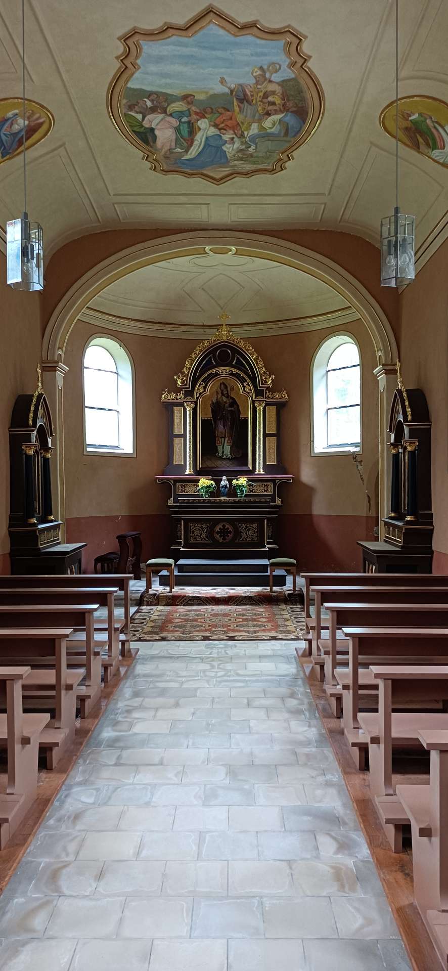 Kirche mit einigen Deckengemälden. An diesem Ort
