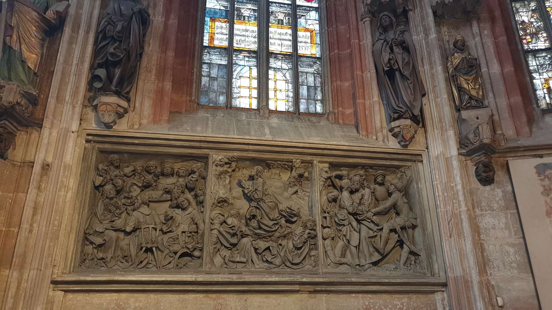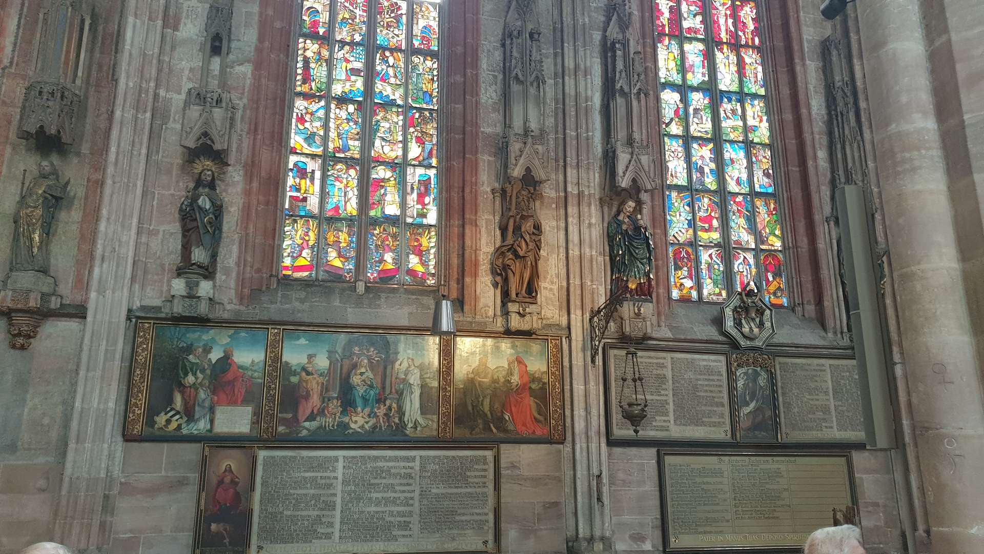 ![]() Sebalduskirche: Volckamer Epitaph von Veit Stoß, dazu gehören auch die beiden Eichenholzfiguren |