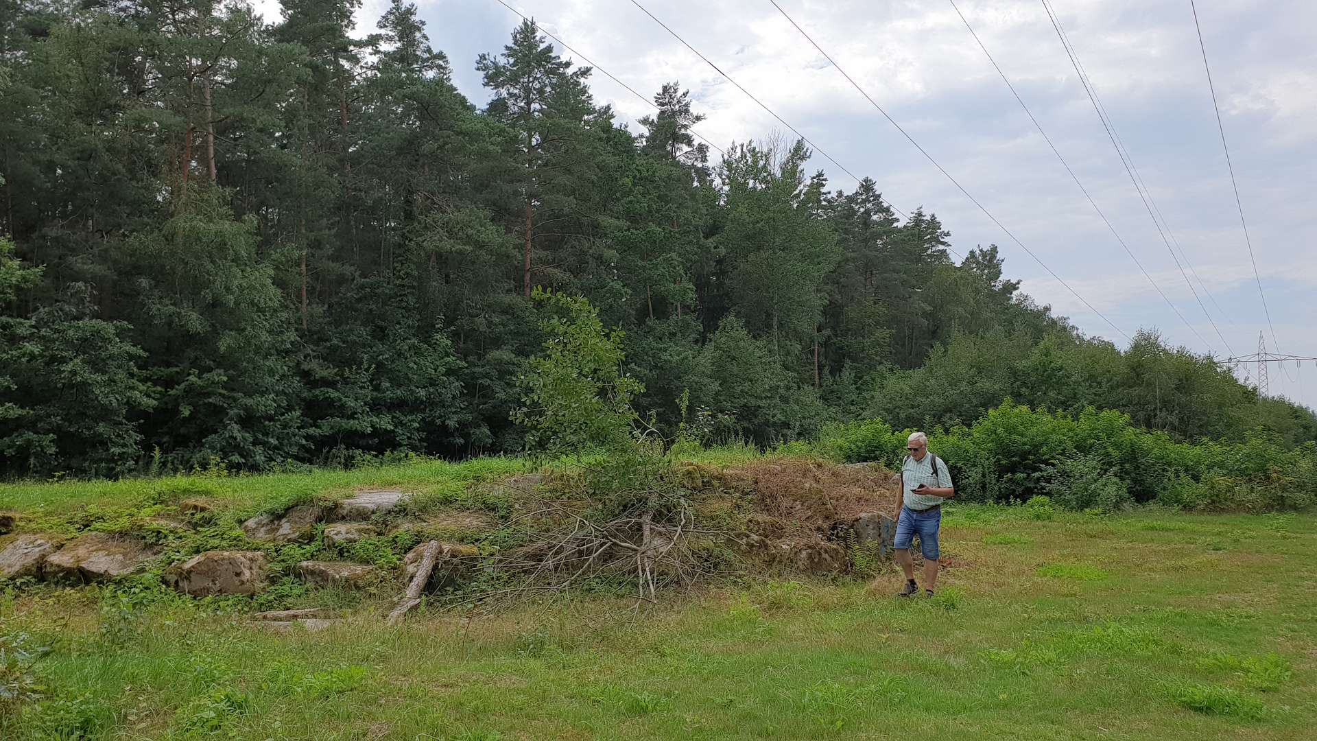 des Burgsandsteins. Wohlgenährt - Manni hatte ein bisschen Pech mit seiner Nr. 89, denn auf Udos Nr. 88, die erst nach der Nr. 89 aufgerufen wurde, lagen 2 Schnitzel 😉 - machten wir uns wieder auf den Weg. Bei der Hochspannungsleitung