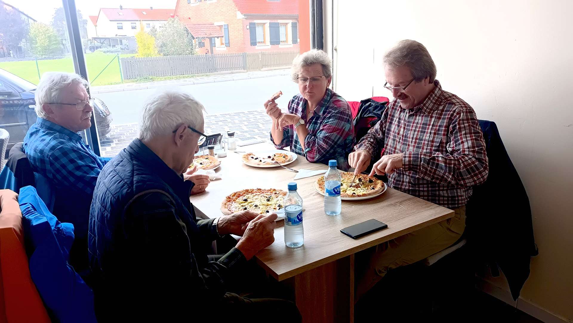 im Internet gefundene neuen Pizzeria Amigo. Nach der Pause ging es auf kurzem Weg zurück nach Großgründlach zu Maria, die schon vorausgeeilt war und einen wärmenden Kaffe aufgesetzt hatte. So ging dann mit Kaffee, selbstgebackenem Kuchen und Eis ein schöner Wandertag zu Ende. |