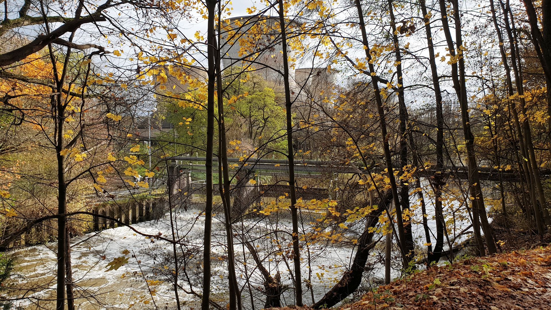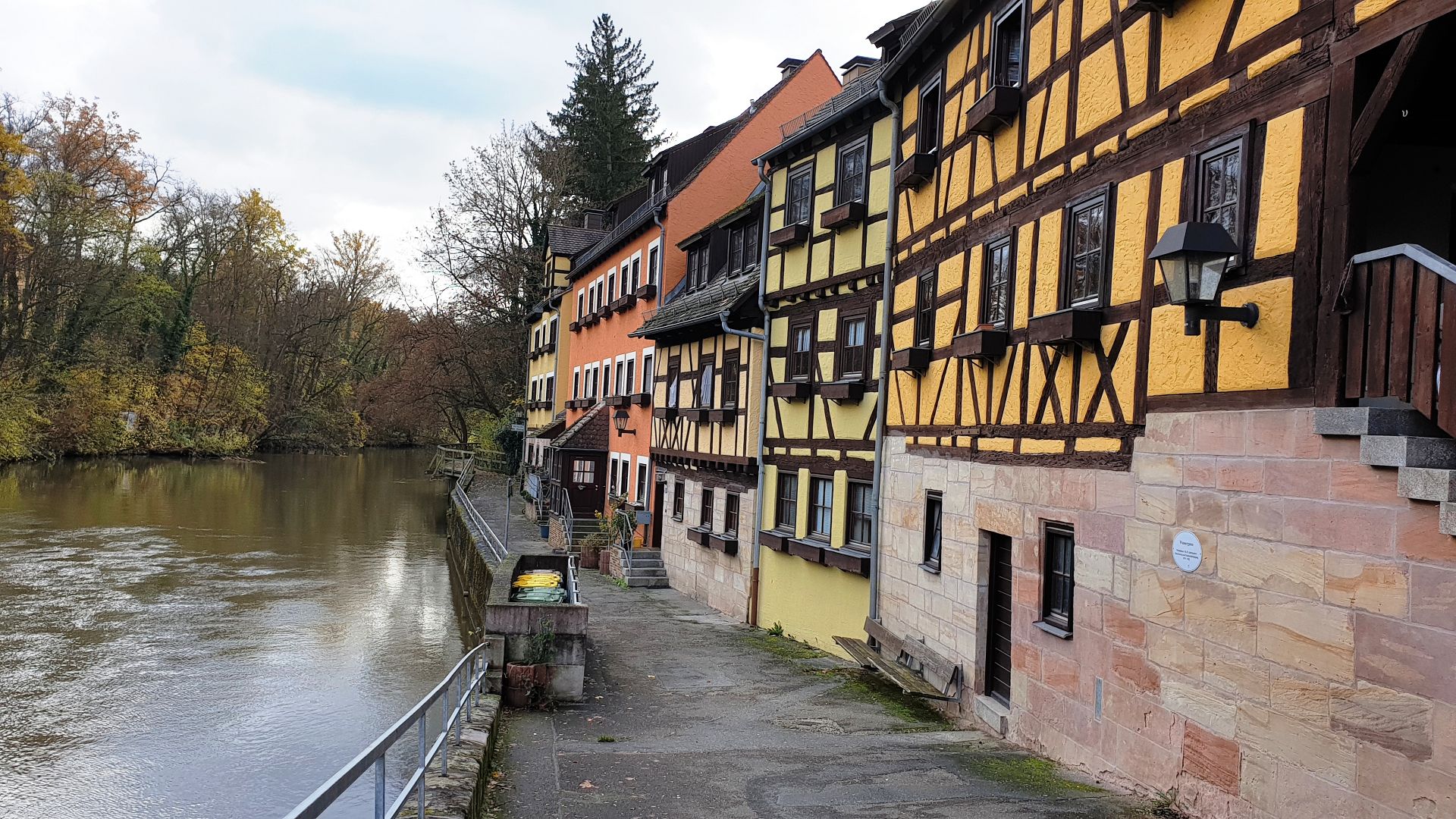 im Faberwald fortsetzte. Nun noch ein Stück auf fast unsichtbaren Pfaden (wg. des vielen Laubes) durch wilde Natur und schon erreichten wir nach wenigen Metern auf Asphalt das (immer noch empfehlenswerte) Gasthaus „Zum Erdinger Weißbräu“. Gut fränkisch gefüllt, mit Haupt- und Nachspeise, brauchten wir zur Verdauung noch die 900m zum Faber-Schloss - die ersten 100 m allerdings mit geöffnetem Schirm, nachdem uns (fast) den ganzen Vormittag die Sonne begleitet hat; erst als wir im Wirtshaus waren, hat es kurz geregnet. Wieder eine von vielen schönen Wanderstrecken links und rechts der Rednitz zwischen Fürth und Reichelsdorf - und nur 3 U-Bahn-Stationen vom Nbger Hbf entfernt. |
