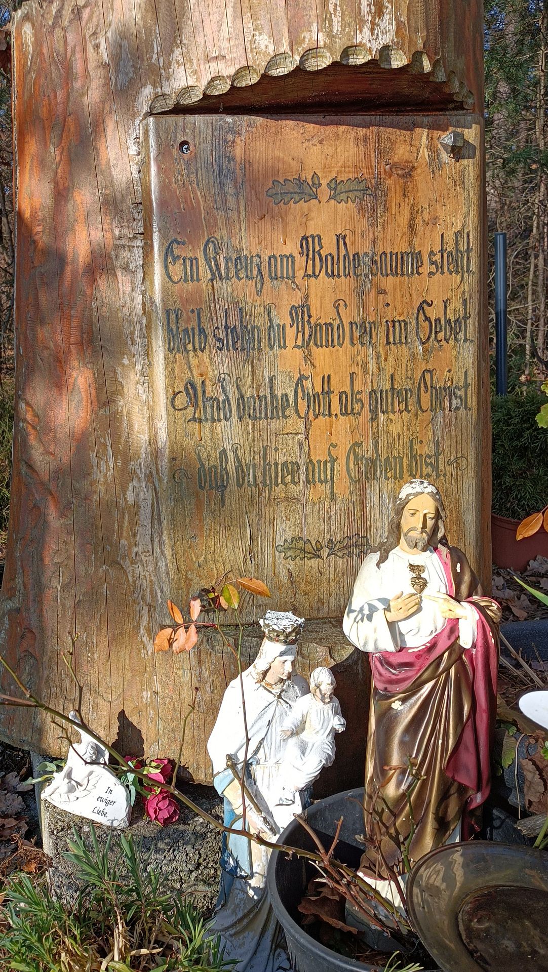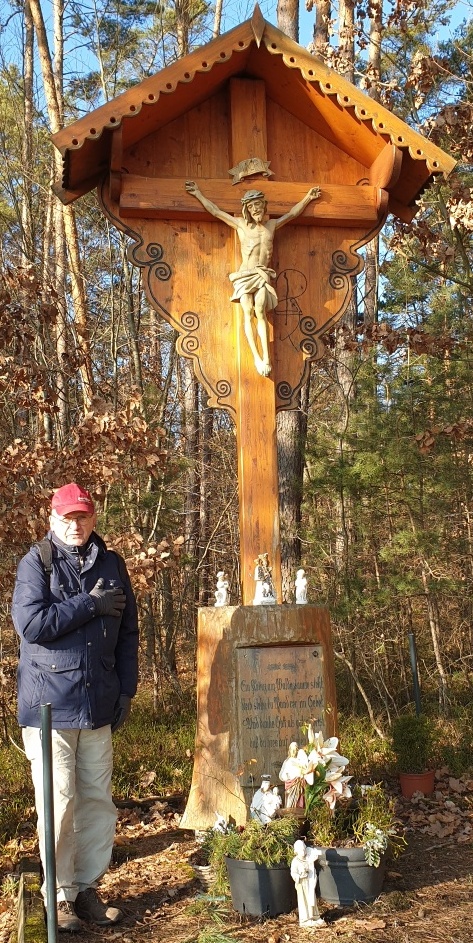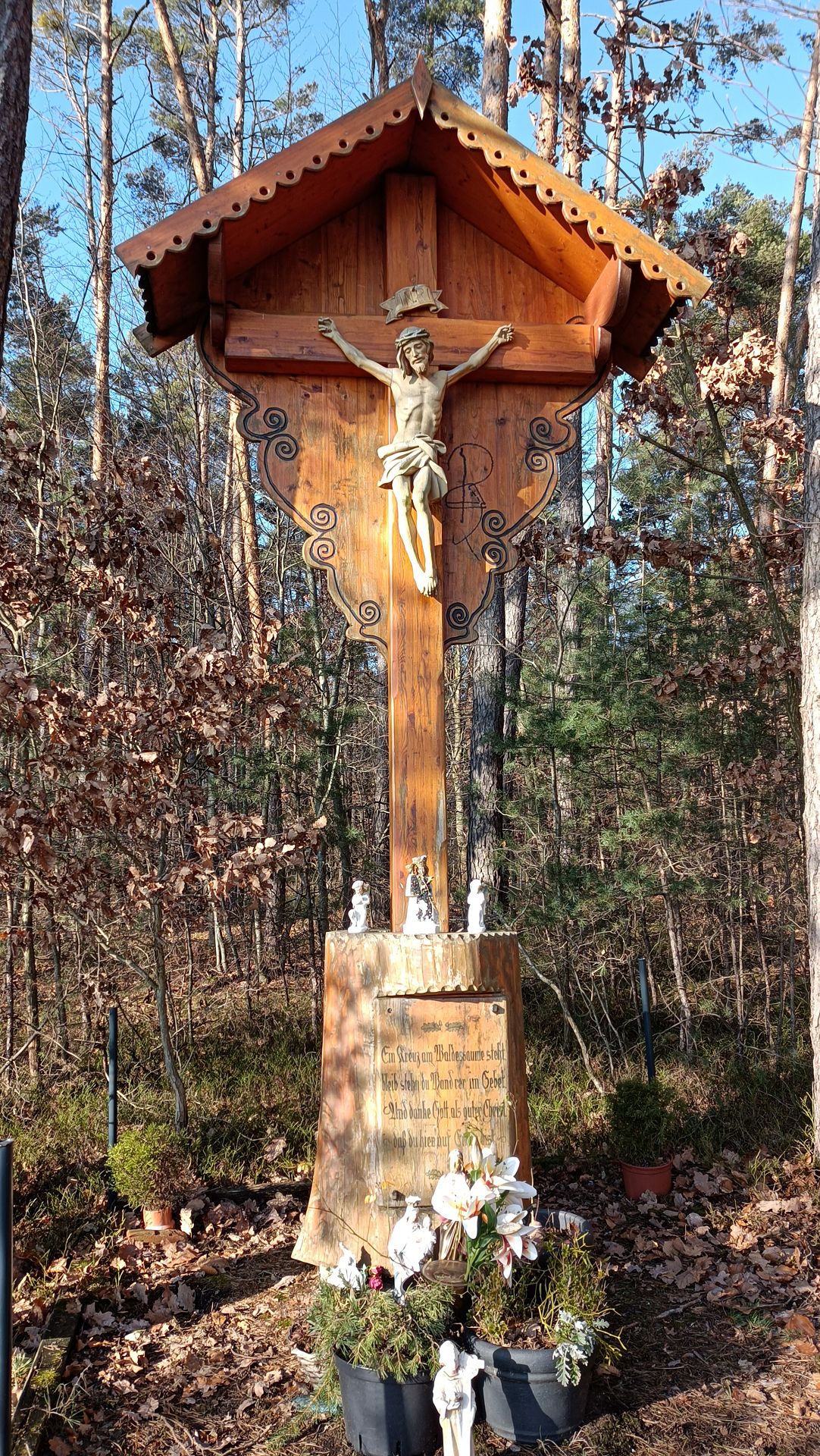 begannen, stand ein schönes Holzkreuz mit dem