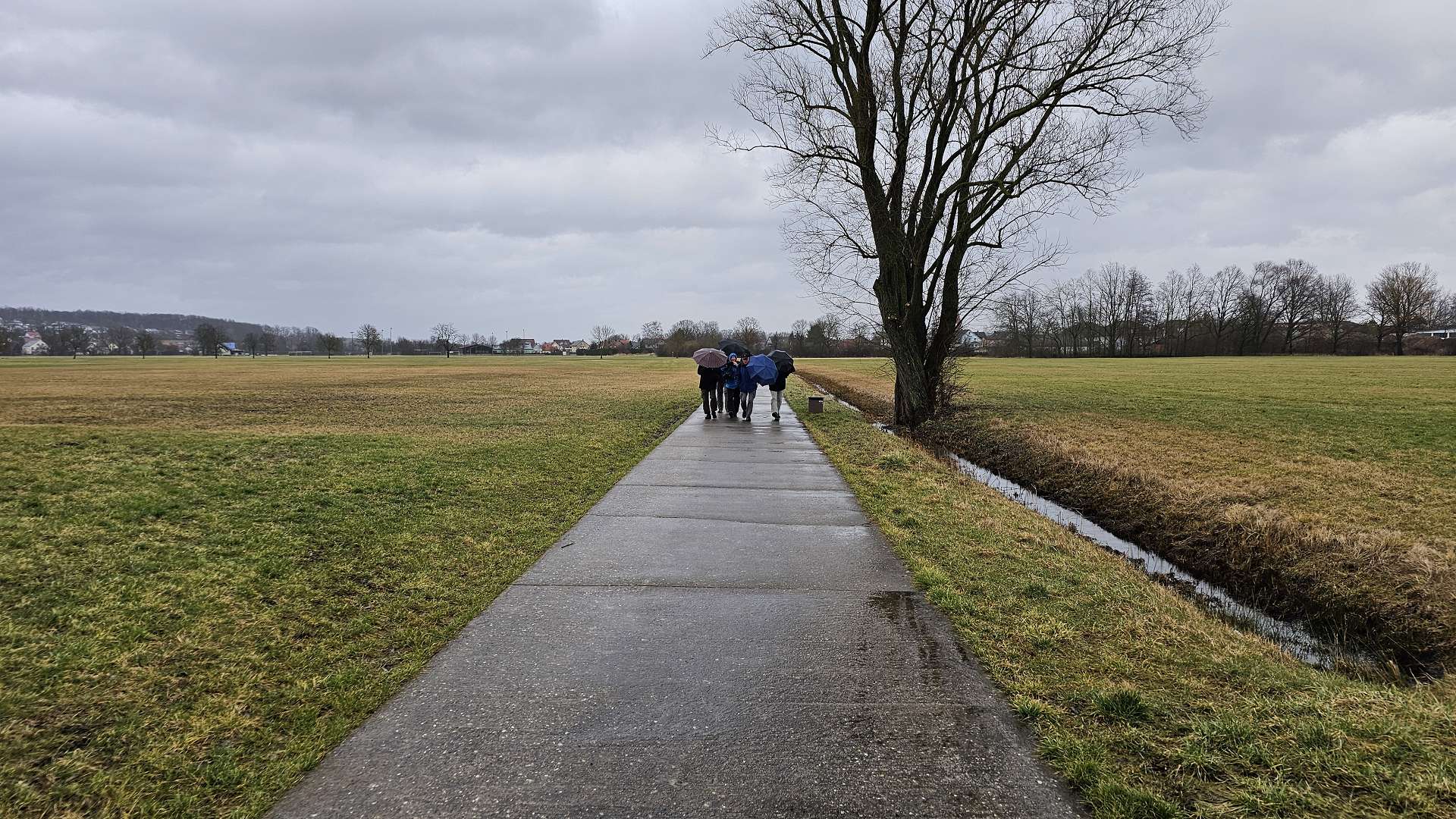 CO2-Erzeuger hinterherfahren. Bei regnerischem Wetter