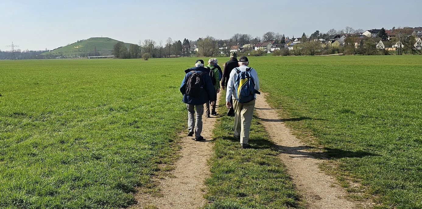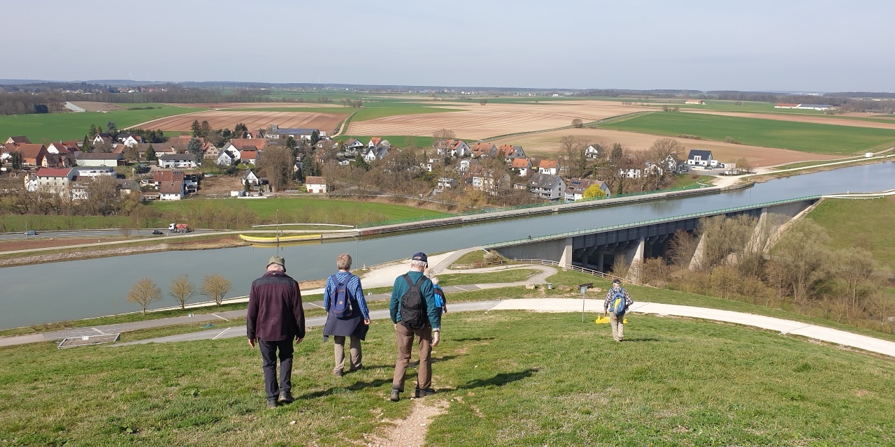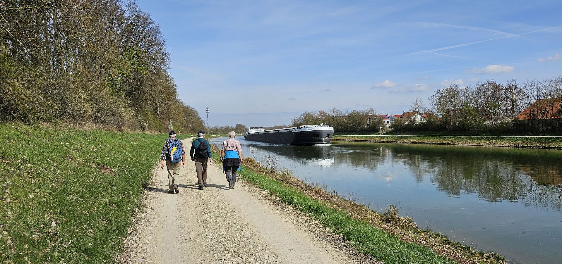 unsere Wanderung. Unter dem Kanal wundern wir uns über die vielen stillstehenden Großgeräte - geschätzt doppelt so viele wie Arbeiter - über die nie eingehaltenen Kosten bei Großbaustellen wundern wir uns nicht. Jetzt marschieren wir noch ein Stück auf der linken Kanalseite bevor wir abbiegen und über Felder und Wiesen Hüttendorf erreichen. Die Schälrippchen beim Popp sind ein Erlebnis - danach fragt keiner mehr nach Nachtisch! Wohlgenährt machen wir uns
