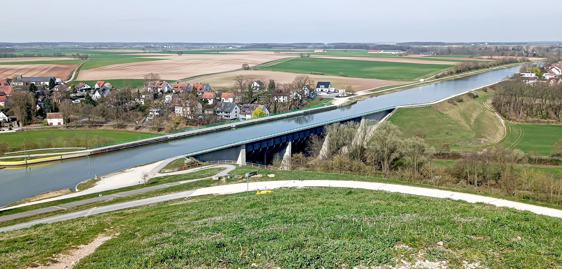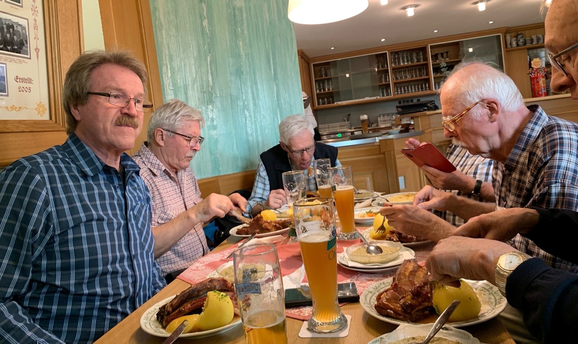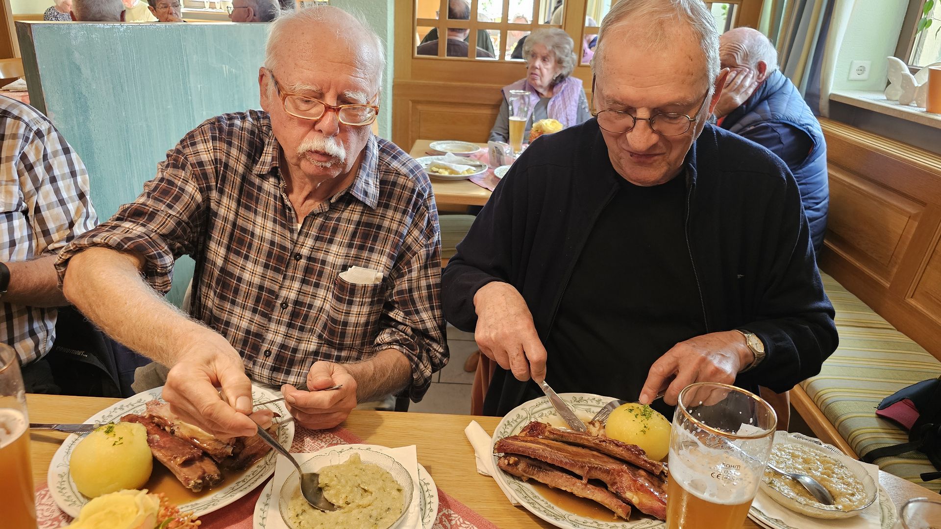 unsere Wanderung. Unter dem Kanal wundern wir uns über die vielen stillstehenden Großgeräte - geschätzt doppelt so viele wie Arbeiter - über die nie eingehaltenen Kosten bei Großbaustellen wundern wir uns nicht. Jetzt marschieren wir noch ein Stück auf der linken Kanalseite bevor wir abbiegen und über Felder und Wiesen Hüttendorf erreichen. Die Schälrippchen beim Popp sind ein Erlebnis - danach fragt keiner mehr nach Nachtisch! Wohlgenährt machen wir uns