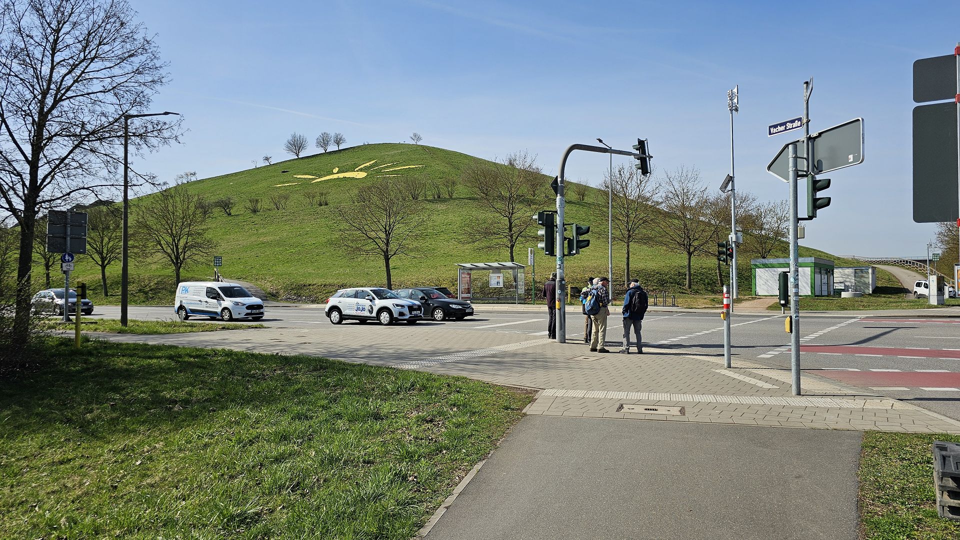 ![]() am Vacher Bahnhof - im Hintergrund das Zwischenziel "Solarberg" |