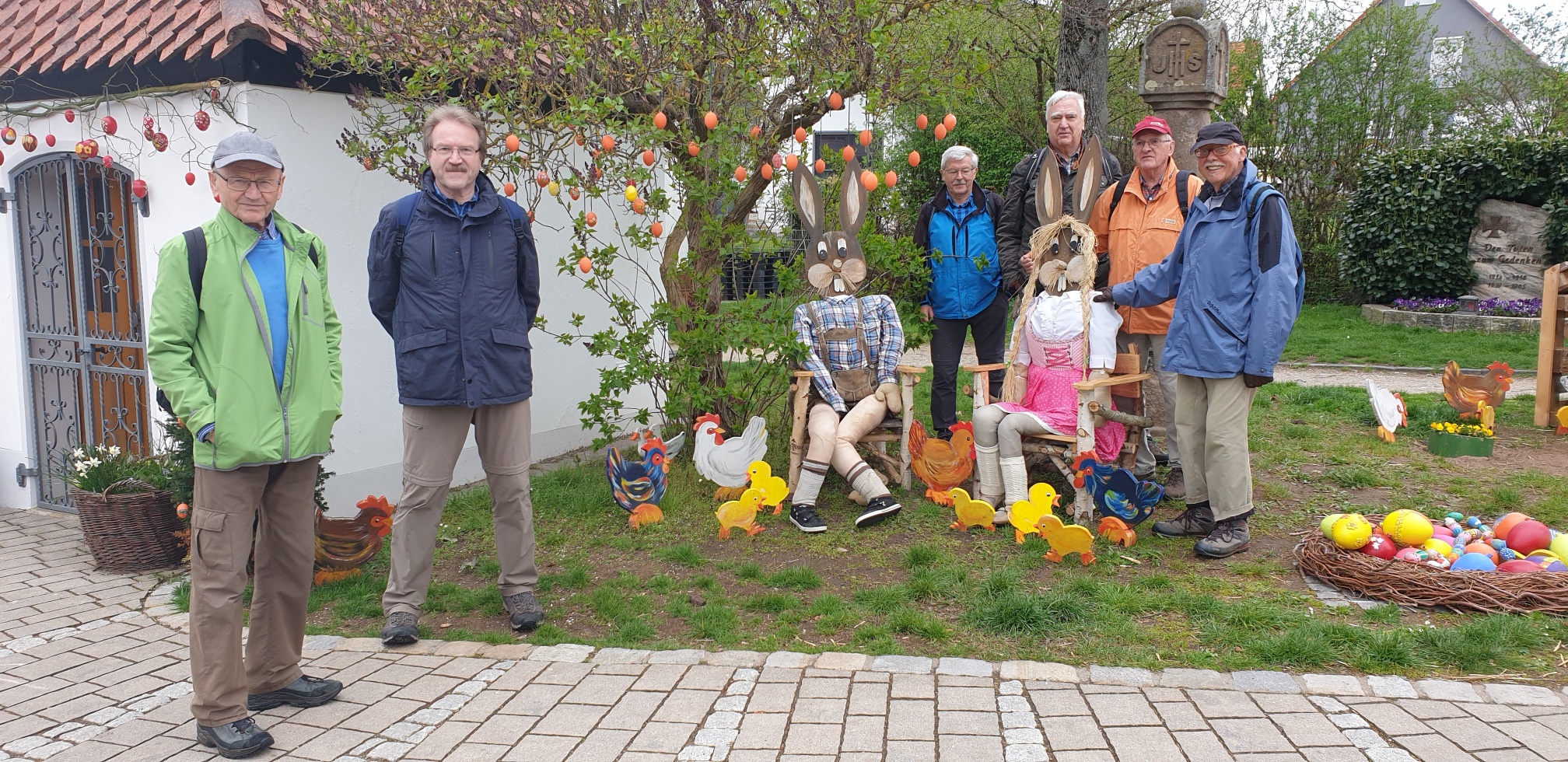 Wanderung am 3. April 2024 - Wanderstrecke ca. 8 km Dabei waren: AchimG, Henry, Karsten, ManfredKa, ManfredKe, Pit, Roland, Udo Über die Wiesen an der Mittleren Aurach zum Osterhasen nach Hauptendorf - und über Burgstall zurück über die Aurach, zum Carlo in Herzogenaurach |
