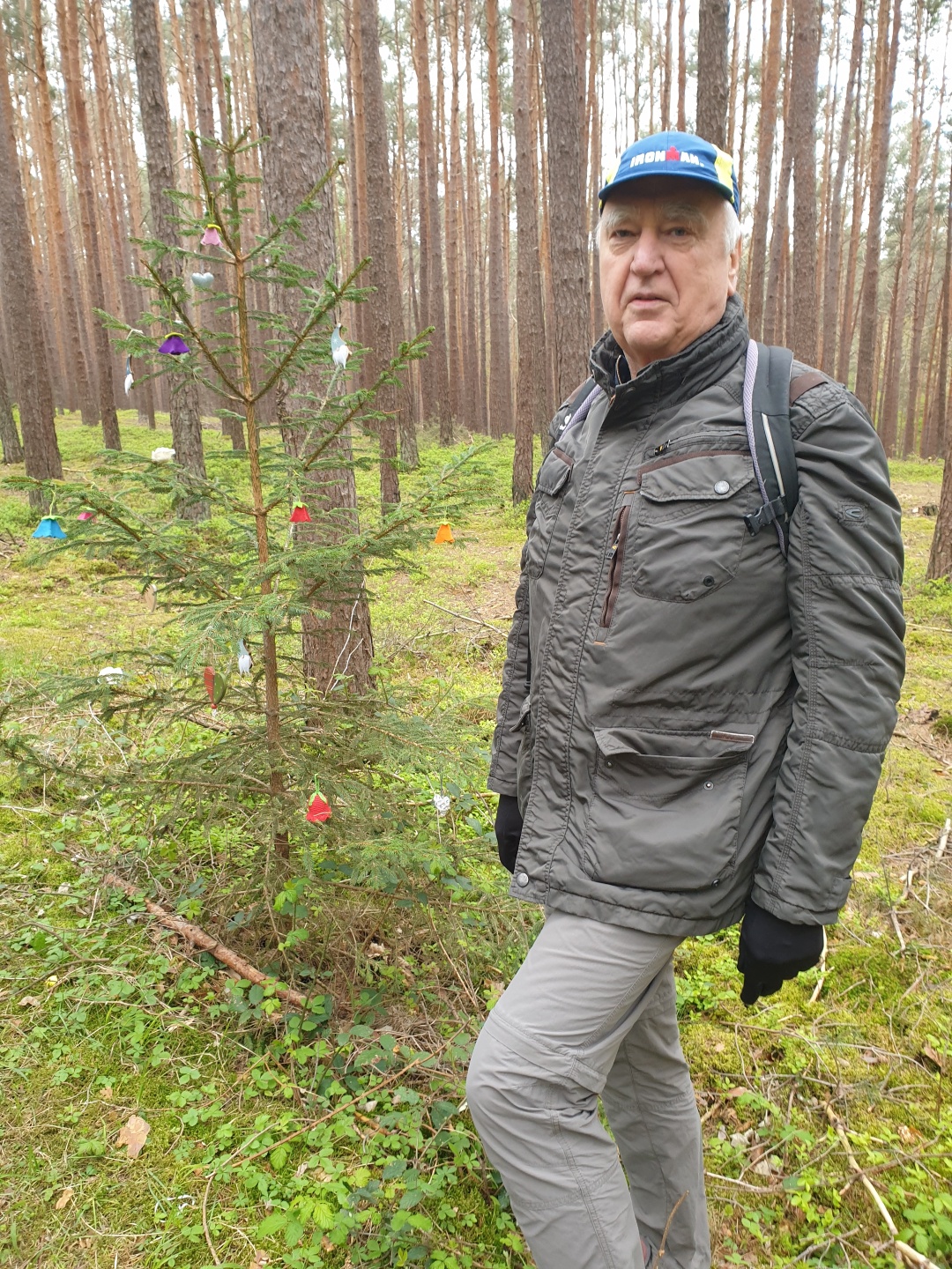 als Weihnachtsbaum von Spaßvögeln verzierte