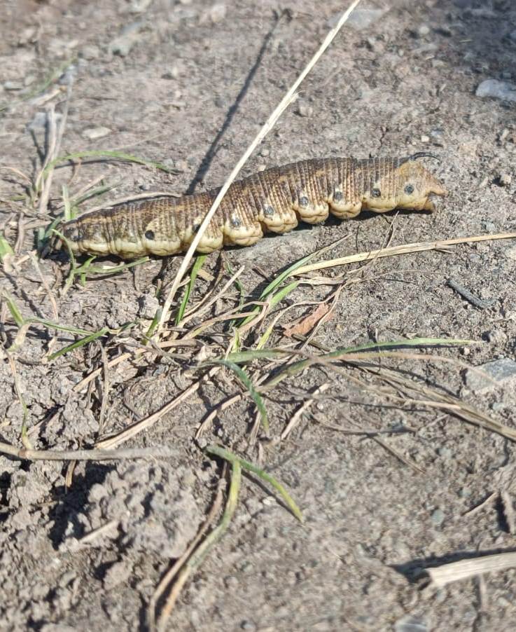 Ähnelt sehr der Raupe eines Windenschwärmers (Bilder / wikipedia) der allerdings hier nicht wirklich häufig vorkommt ??? |