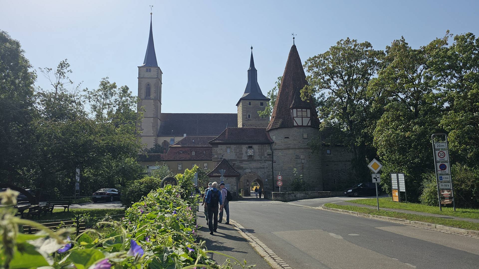 einer 3/4-Stunde erreichten. So zogen wir bald durch das Rödelseeer Tor in Iphofen ein. Vorbei an der Kirche bis zum Kulinarium, wo wir im Innenhof Platz fanden. Der Wein war gut, die Speisen ebenfalls - aber eins muss gesagt werden: die Preise liegen an der obersten Grenze, die man als Wanderer noch akteptieren möchte. Das ist allerdings in allen Gasthäusern so, die wir in Iphofen in letzter Zeit besucht haben. In Zukunft werden wir uns wohl wieder mehr in Richtung Main-Viereck orientieren! Trost fanden wir dann in