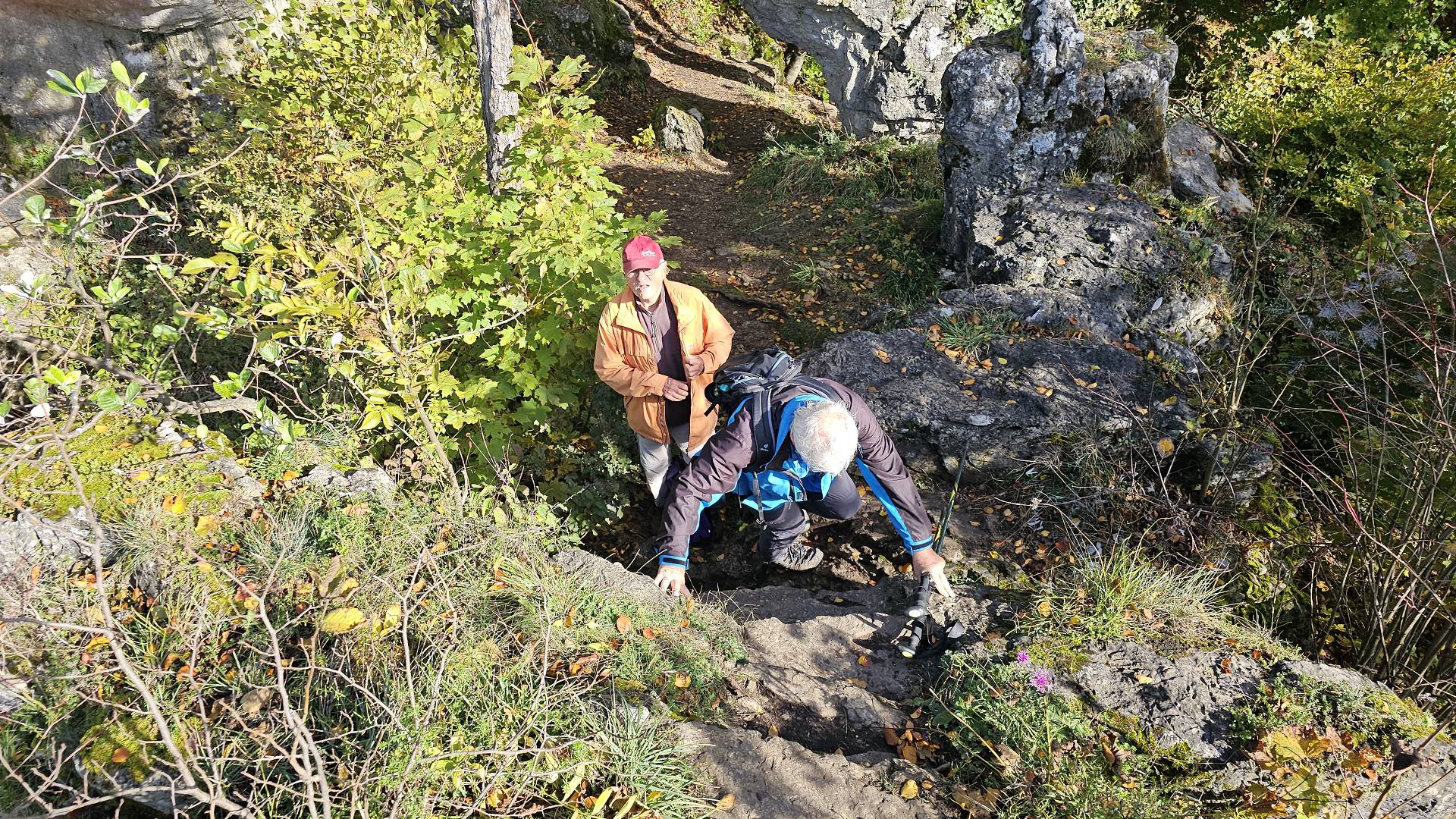 Mitnehmen sollte man, auch dann wenn es nicht nass und glitschig ist, seine Wanderstöcke - zumindest dann, wenn man zum Hohlen Fels geht. Feste Sohlen sind sowieso Voraussetzung und für Kinder (-wägen) sind die Wege nicht geeignet. |