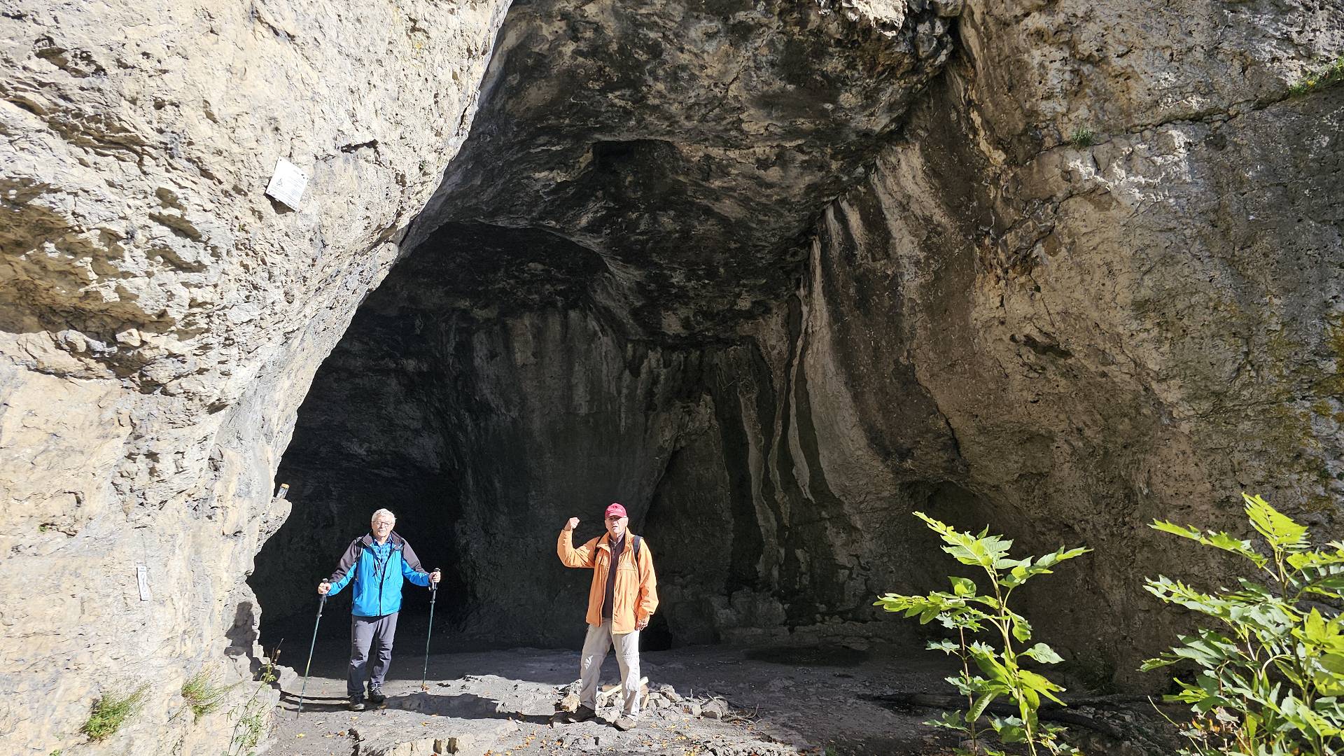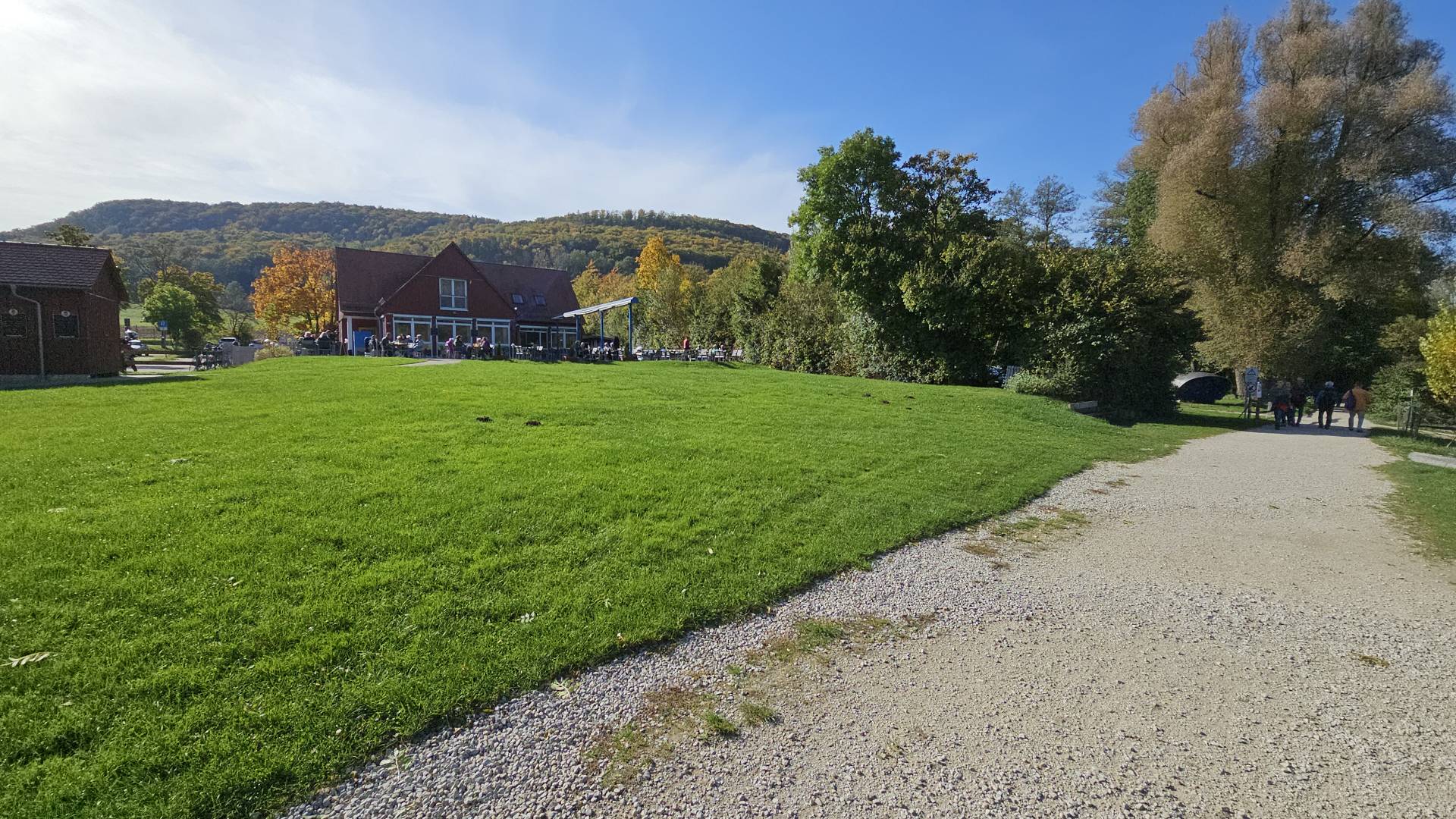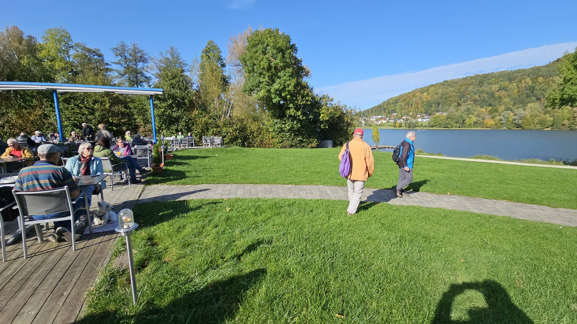 einzuweihen. Nachdem wir dann endlich den höchsten Punkt der heutigen Strecke überschritten hatten, erreichten wir nach wenigen 100 Metern die Aussichtspunkte um den Hohlen Fels. Hier wurden wir für alle Strapazen entlohnt! Die Aussicht ist herrlich - das klare sonnige Wetter hat ein Übriges getan. Doch dann ging es wieder runter. Hier sollte man keine Abkürzungen gehen, sondern lieber einen Umweg wählen. Die Wege sind auch hier steil, ungepflegt und rutschig. Dennoch kamen wir unverletzt unten an. Plötzlich öffnete sich der Wald und wir standen auf einer grünen Wiese, die Sonne lachte, ein Kneippbecken, Bänke und Liegen luden zum Verweilen ein - alle Strapazen waren vergessen. Und dann das Gasthaus, die Seeterassen: eine große Terasse in warmer Herbstsonne mit Blick auf den See und auf "unseren Berg"; als Bedienung ein freundlicher Robbi und das Eis als Nachtisch hatten wir uns heute redlich verdient. Im Rückblick, nachdem wir bei strahlendem Sonnenschein auf der Seeterrasse die (leichten 😳) Strapazen des Auf- und Abstieges (fast) vergessen hatten, zählen wir den heutigen Wandertag durchaus zu den schöneren!Ein Wiedersehen im Frühjahr ist geplant - dann allerdings mit weniger Höhenmetern durch das Steinerne Gassl. Fazit: Der Weg über den "Eingang H" lohnt sich definitiv nicht. Bei den Eingängen A bis F soll zwar ähnlich wenig zu sehen sein. Wenn man sich trotzdem einen Eindruck verschaffen möchte, könnte man in Verbindung mit einer Wanderung am "Steinernen Gassl" dort vorbei gehen; und zwar im Sommer wenn die vielen schönen Blümchen blühen. |