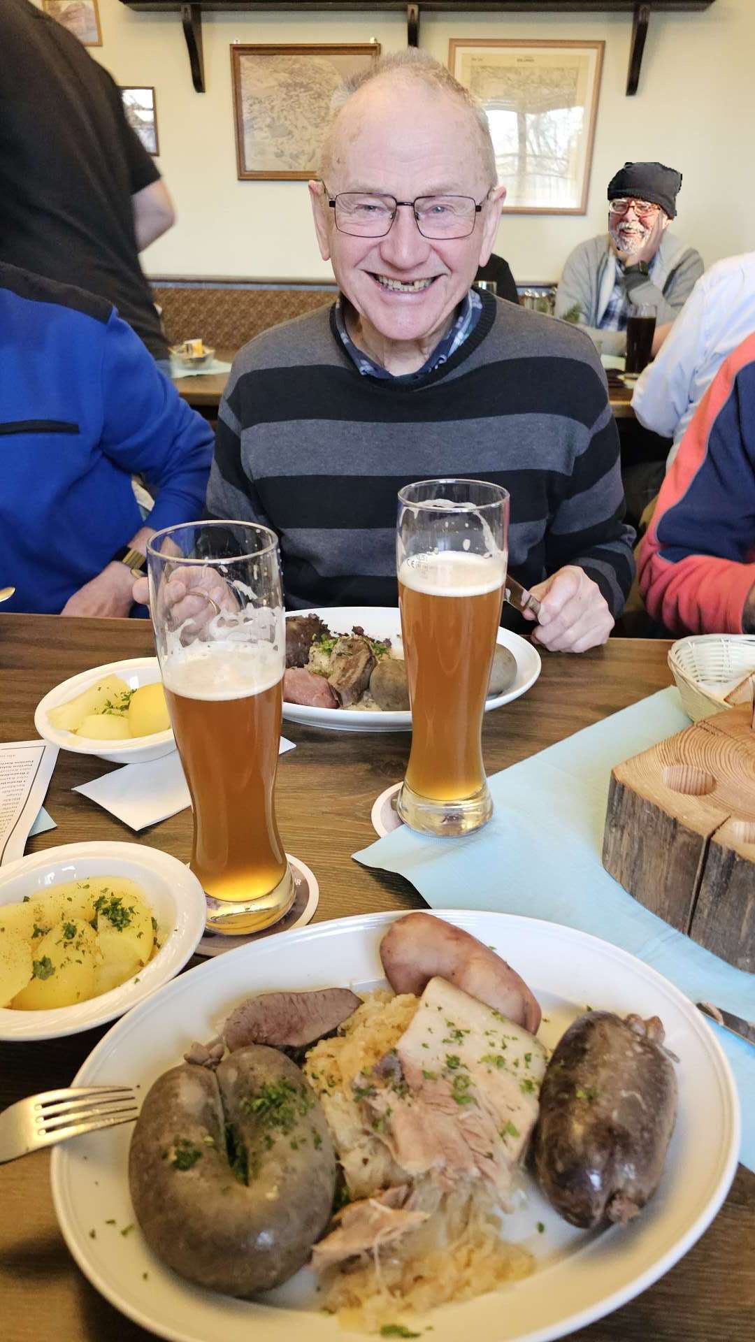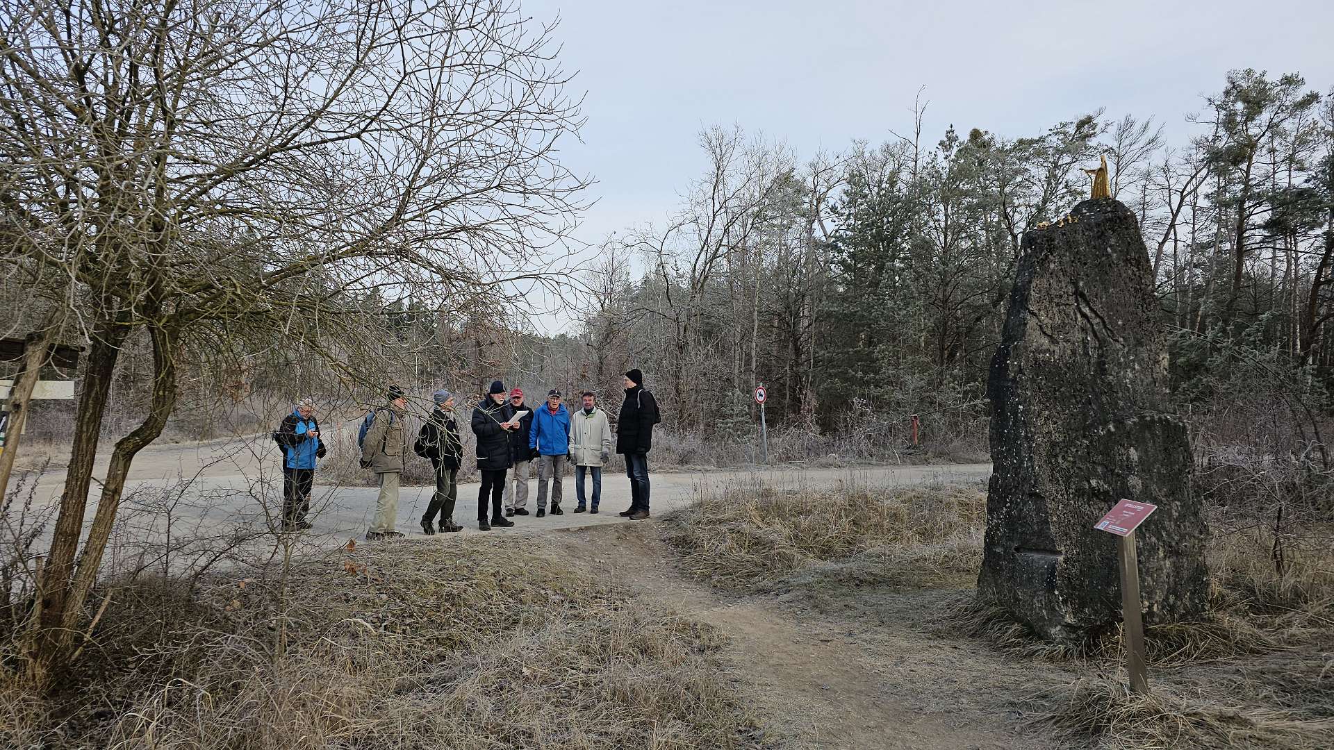 Alle Neune, keiner wollte zu Hause bleiben - kein Wunder, unser Ziel war "Schlachtschüssel im Schlössla" in Tennenlohe. Vorher wollten wir uns Appetit im Tennenloher Forst anlaufen. Und da ist natürlich unser Kulturbeauftragter gefragt - und Karsten war, wie (fast) immer, gut vorbereitet. So marschierten wir bei