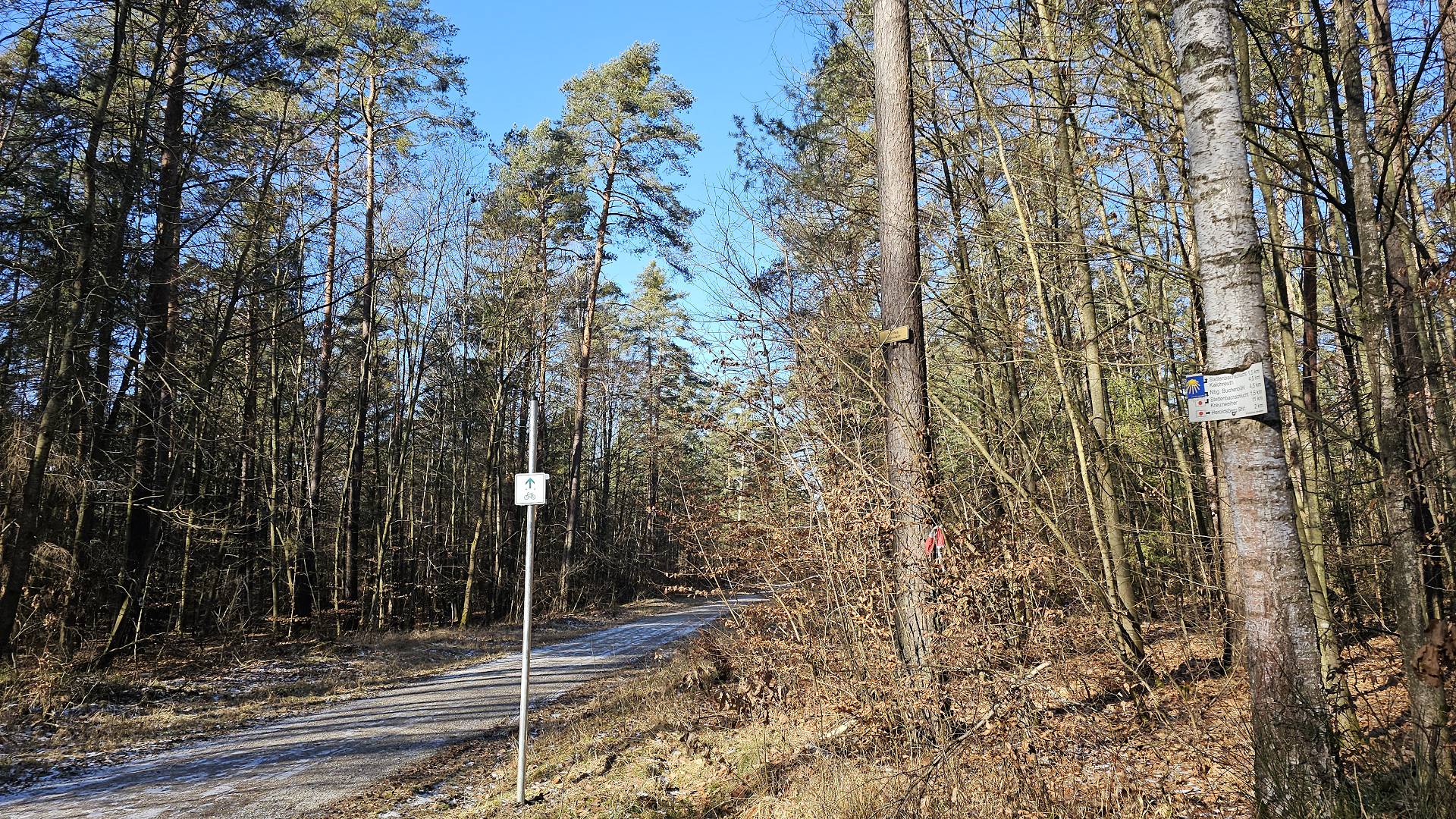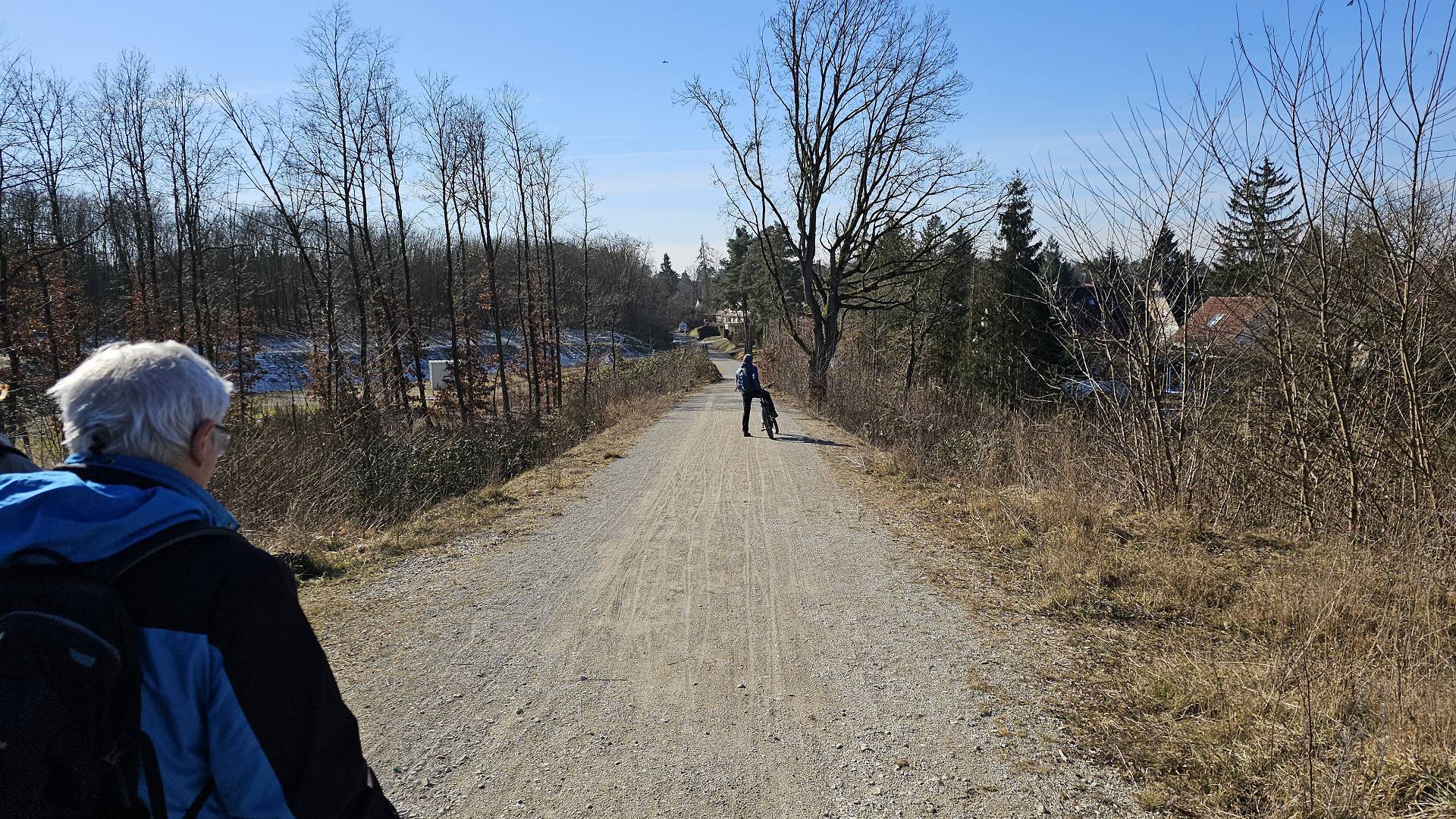 Wanderung) und liefen den Anderen entgegen. Die Wanderung selbst hat Spaß gemacht - trotz der teils langen, geraden Fahrwege. Das Wetter und die ebenen, trockenen, teils Fahr- teils schönen Waldwege, haben dazu beigetragen. Auch Franz hat es bei dem schönen Wetter nicht zu Hause gehalten. Er hat uns mit seinem Radl abgefangen und uns auf dem kürzesten Weg zum Ziel geleitet. Auf Vorschlag von Karsten