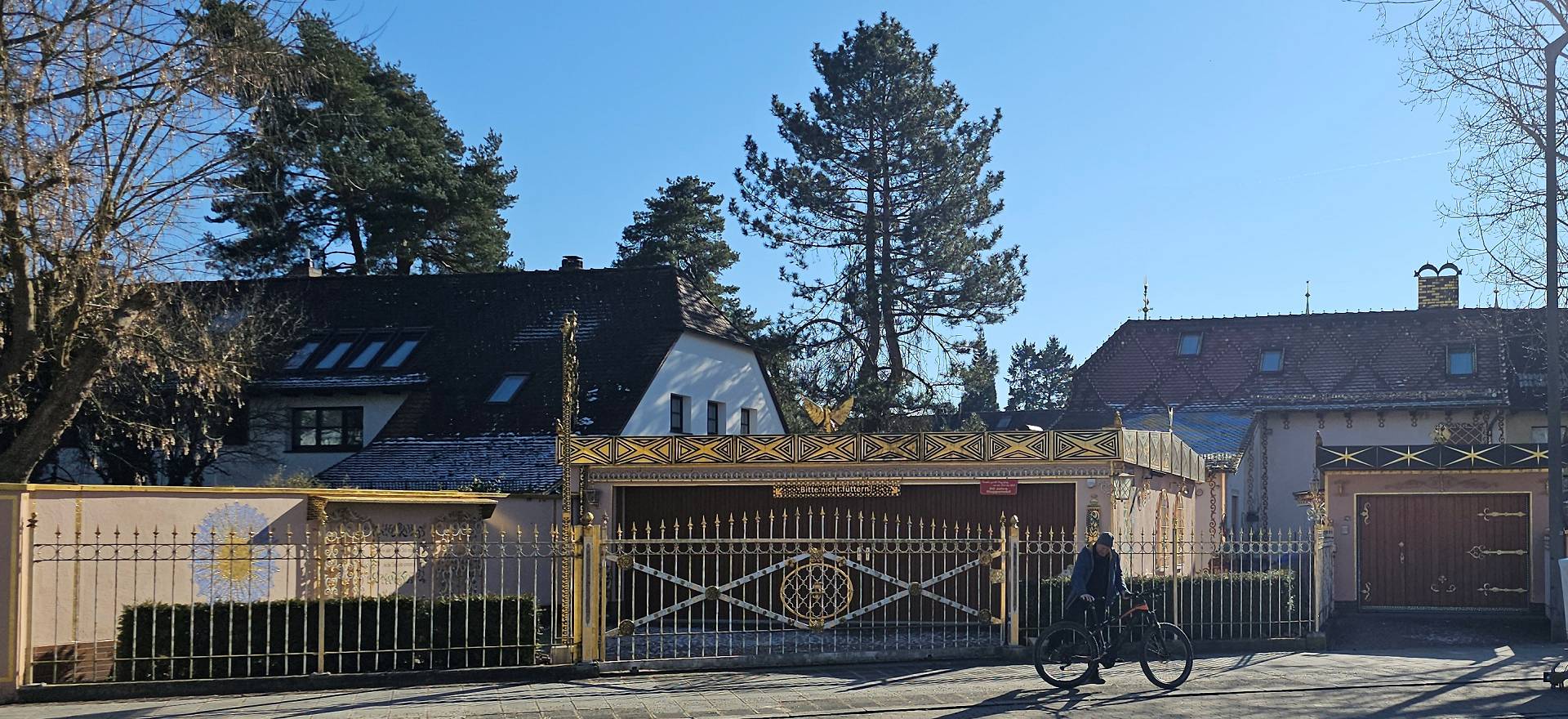 Franz verabschiedet sich am vergoldeten Anwesen am Bierweg |