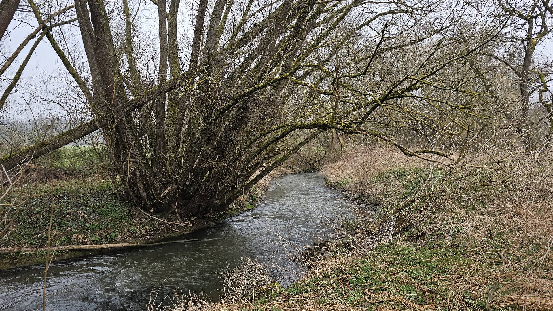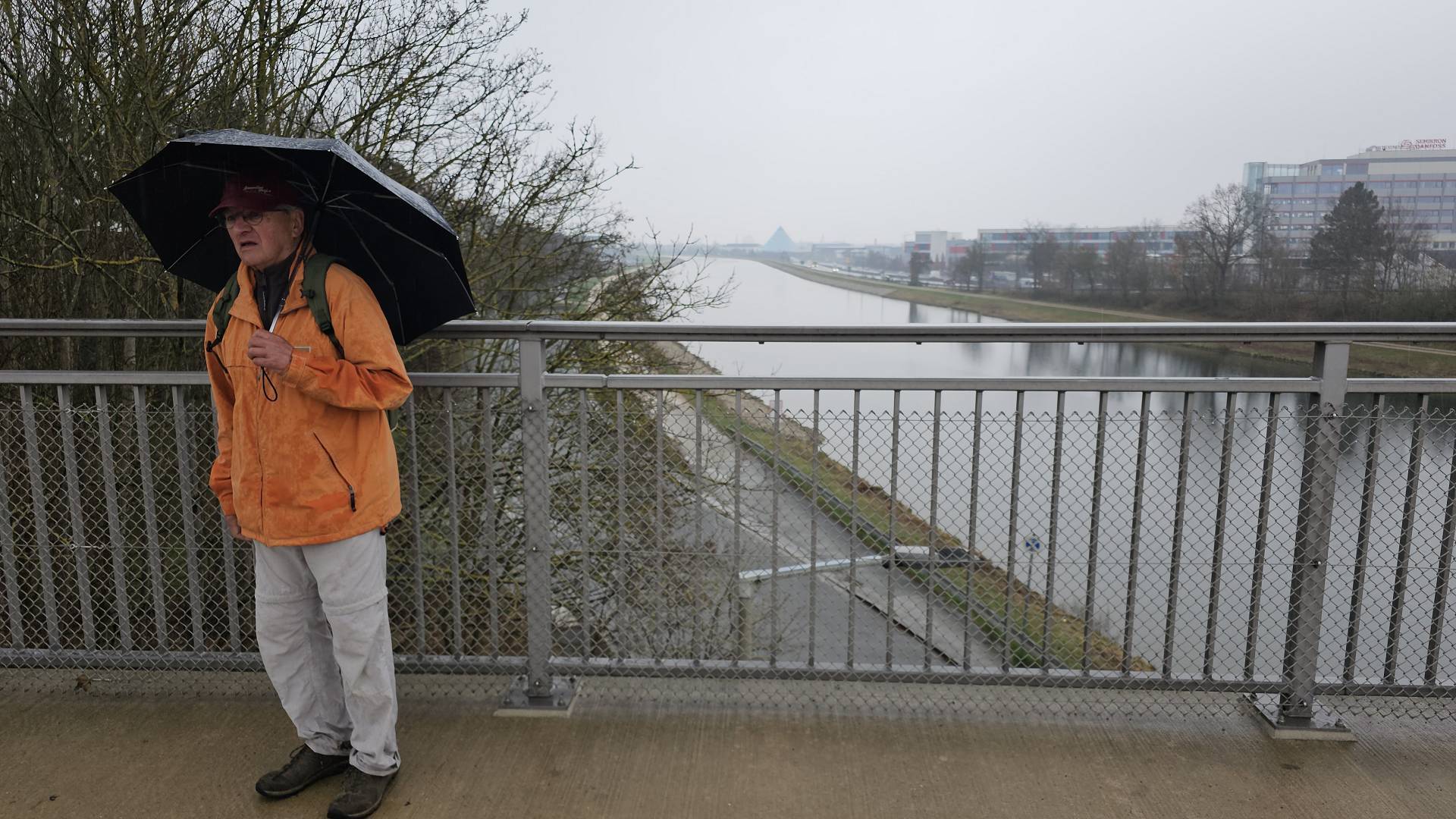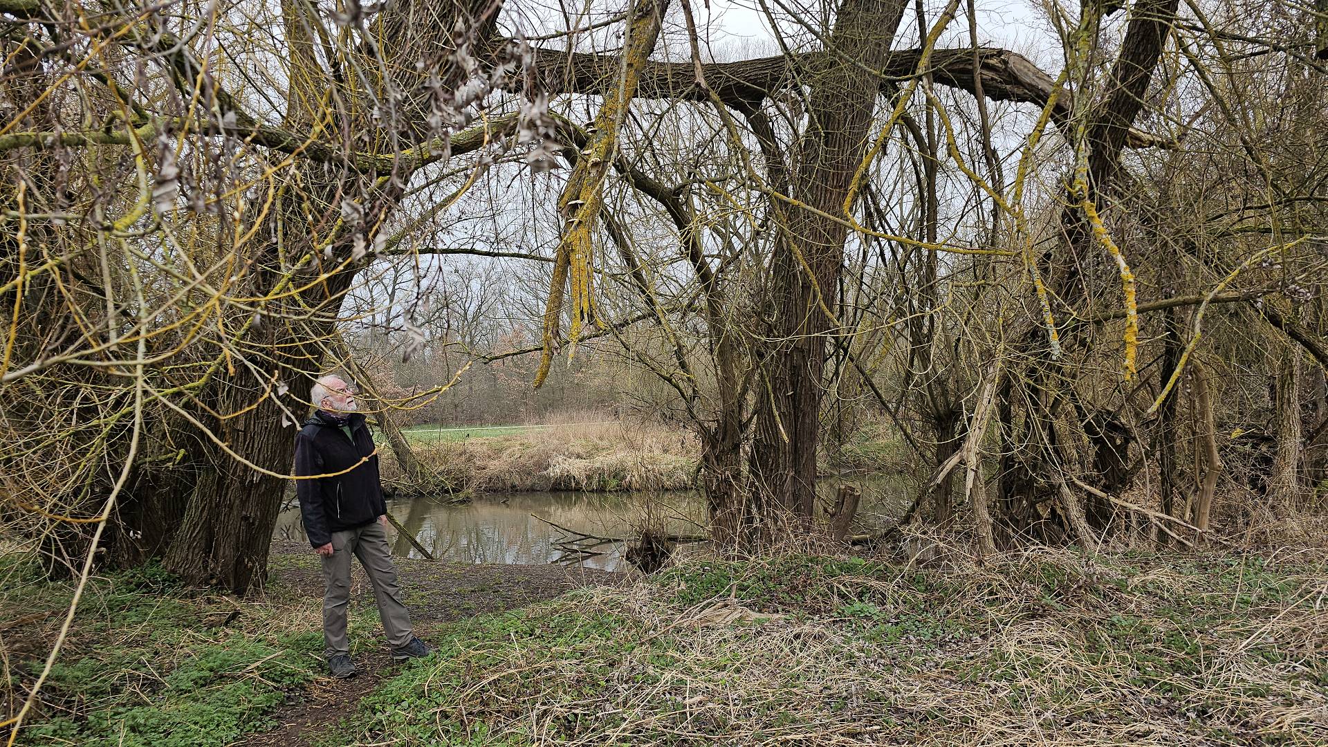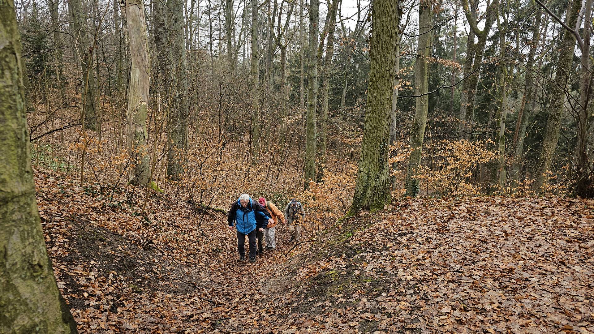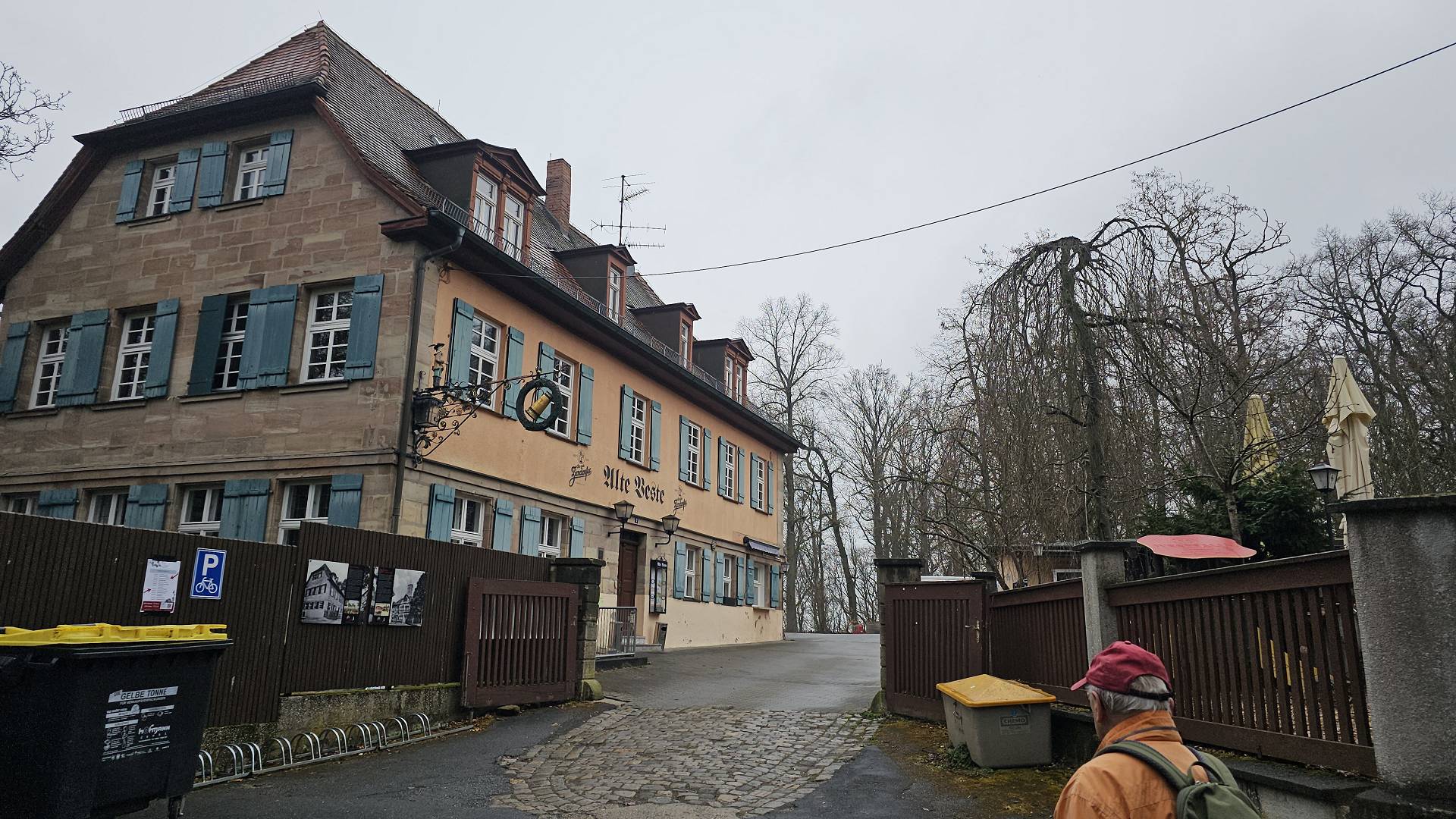 Heute war es nun so weit. Gestartet sind wir an der Bahnhaltestelle Fürth-Dambach. Nach wenigen 100 Metern Richtung Westen überquerten wir die Südwesttangente und den Main-Donau-Kanal - und waren auch schon im Grünen. Ein Stück parallel zum Dambach, dann, im Wald, am Grundigpark mit seinem langen Eternit?Asbest?zaun entlang, bis nach ca. 2 km der Vestner Turm vor uns durch die noch unbelaubten Bäume zu erkennen war. Nun ging es nach oben: Ca. 38 ziemlich steile und, nach leichtem Nieselregen, etwas rutschige Meter. Oben empfing uns eine gepflegte, nüchterne Anlage mit ein paar Informationstafeln - natürlich zu Wallenstein und Gustav Adolf, und der besagte Vestner Turm. Nach einer kurzen Pause, Karsten aktualisierte unser Geschichtswissen, ging es, auf wieder etwas rutschigen Pfaden, wieder runter, Richtung Osten. Wir durchquerten eine kleine Siedlung auf der (nicht Achim-) Grenzstraße und erreichten schnell den Rednitzgrund. Jetzt folgte ein schönes Stück Natur an der Bibert und an der alten Bibertbahn-Trasse entlang. Einige kamen richtig ins schwärmen ob der schönen Pfade in den Wiesen, der Frühlingsblütler, der Büsche mit den frischen Knospen und der von den Bibern noch stehengelassenen Bäume inmitten eines Verhaues von "gefällten" Bäumen. Das war es dann allerdings mit der schönen Natur ..., denn jetzt folgten 2 1/2 km Rothenburger- und Sigmundstraße, links und rechts Industrie und dazwischen Autos, Autos, Autos. Die schönen 6 km waren schnell vergessen und der Streckenplaner überstand dieses letzte Stück wohl nur deswegen (seelisch) unbeschadet, weil er bis zum Ziel in einem so großen Abstand vornweg marschierte, dass ihn das Stimmengewirr hinter ihm nur noch als leises Gesumse erreichte 🤣. Und dann waren wir am Ziel,