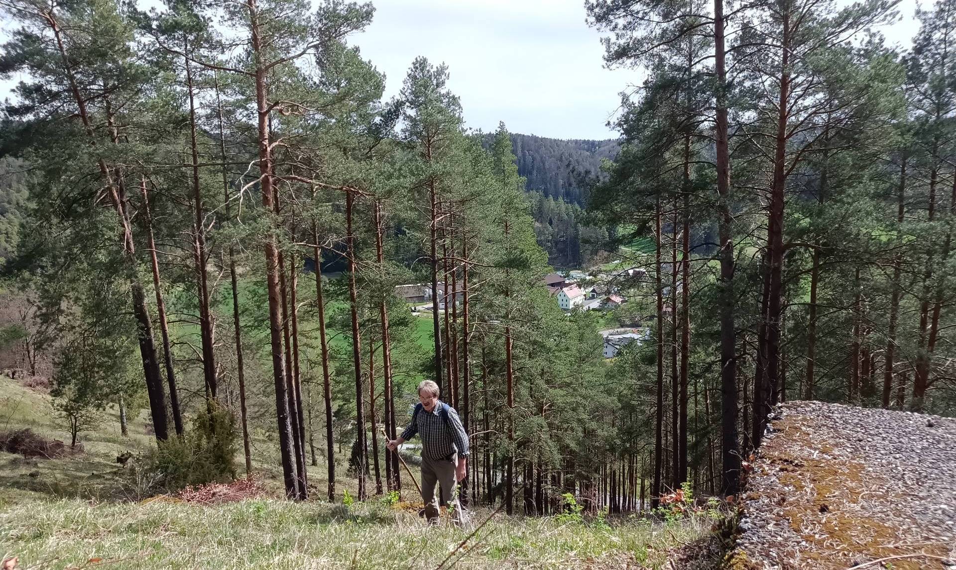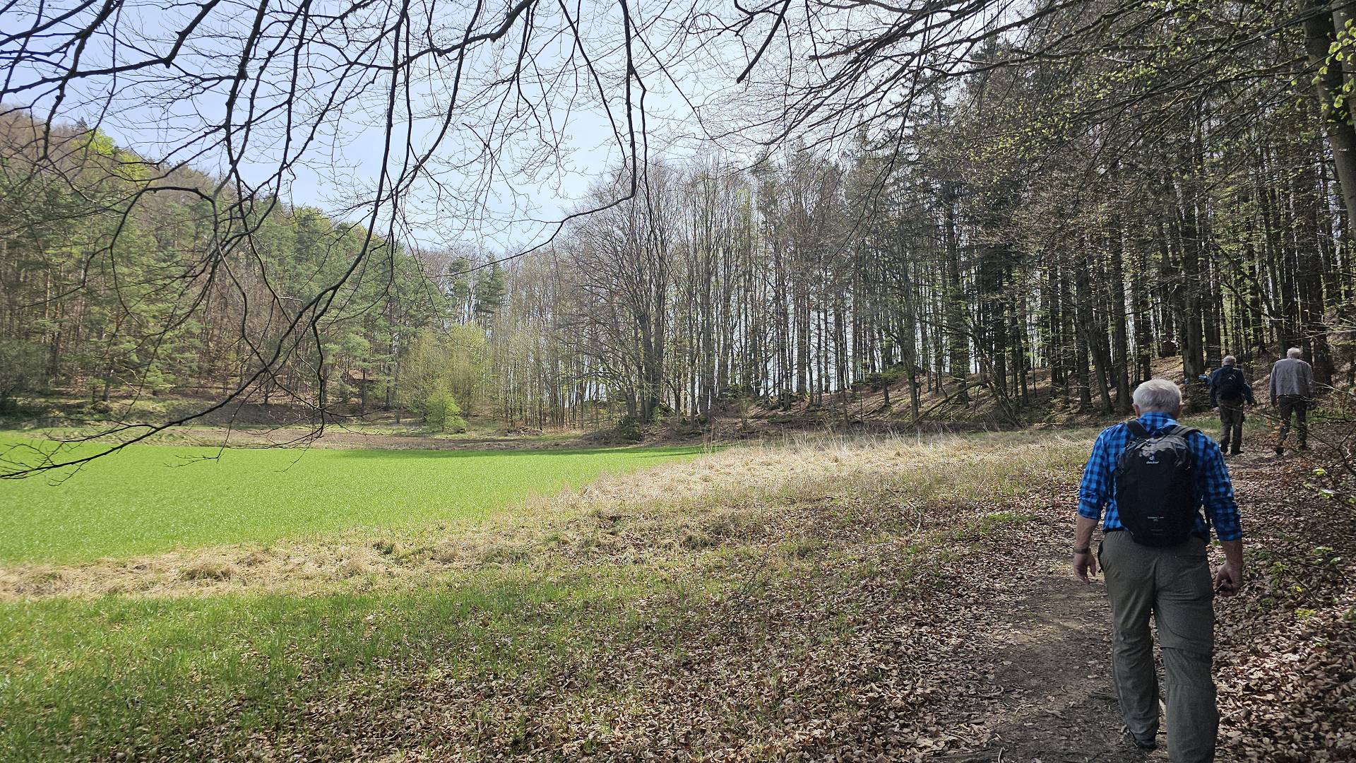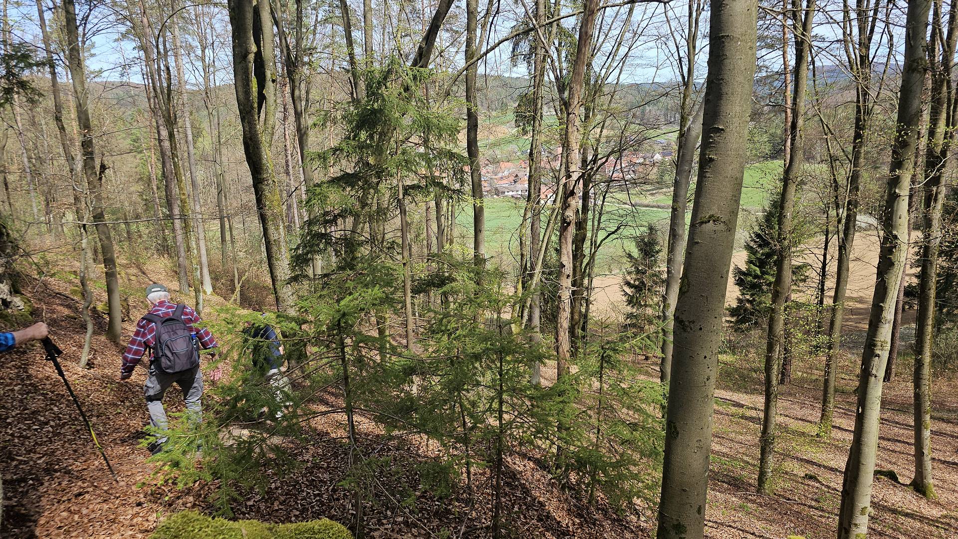 Aber dann: Der Wald öffnet sich (an der Stelle, an der die "Umgehung" auf unseren Weg trifft) und wir haben einen wunderschönen Blick in das Reinbachtal und darüber hinaus..