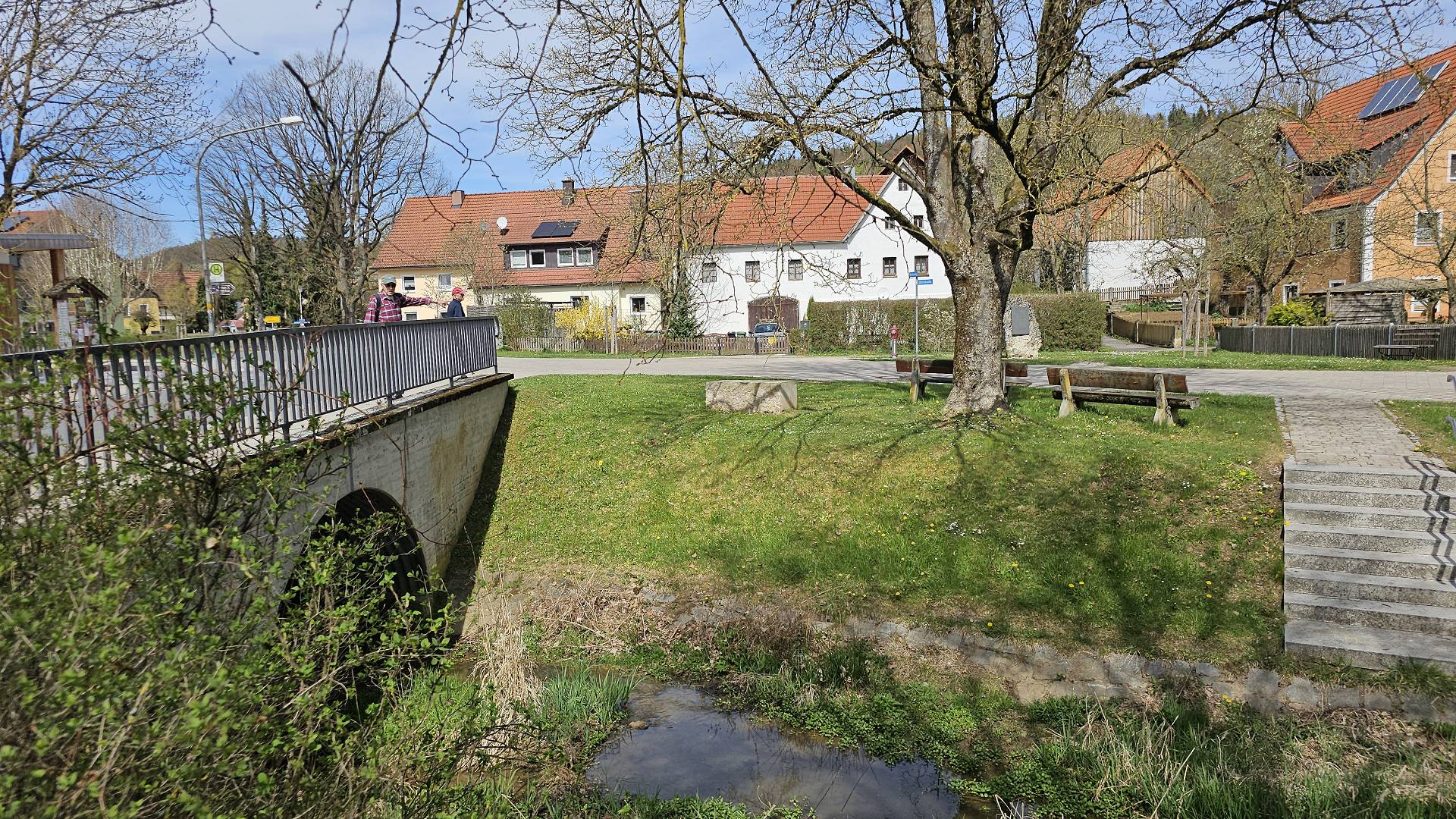 Etzelwang am Bahnhof. Im Ort bestaunen wir einen