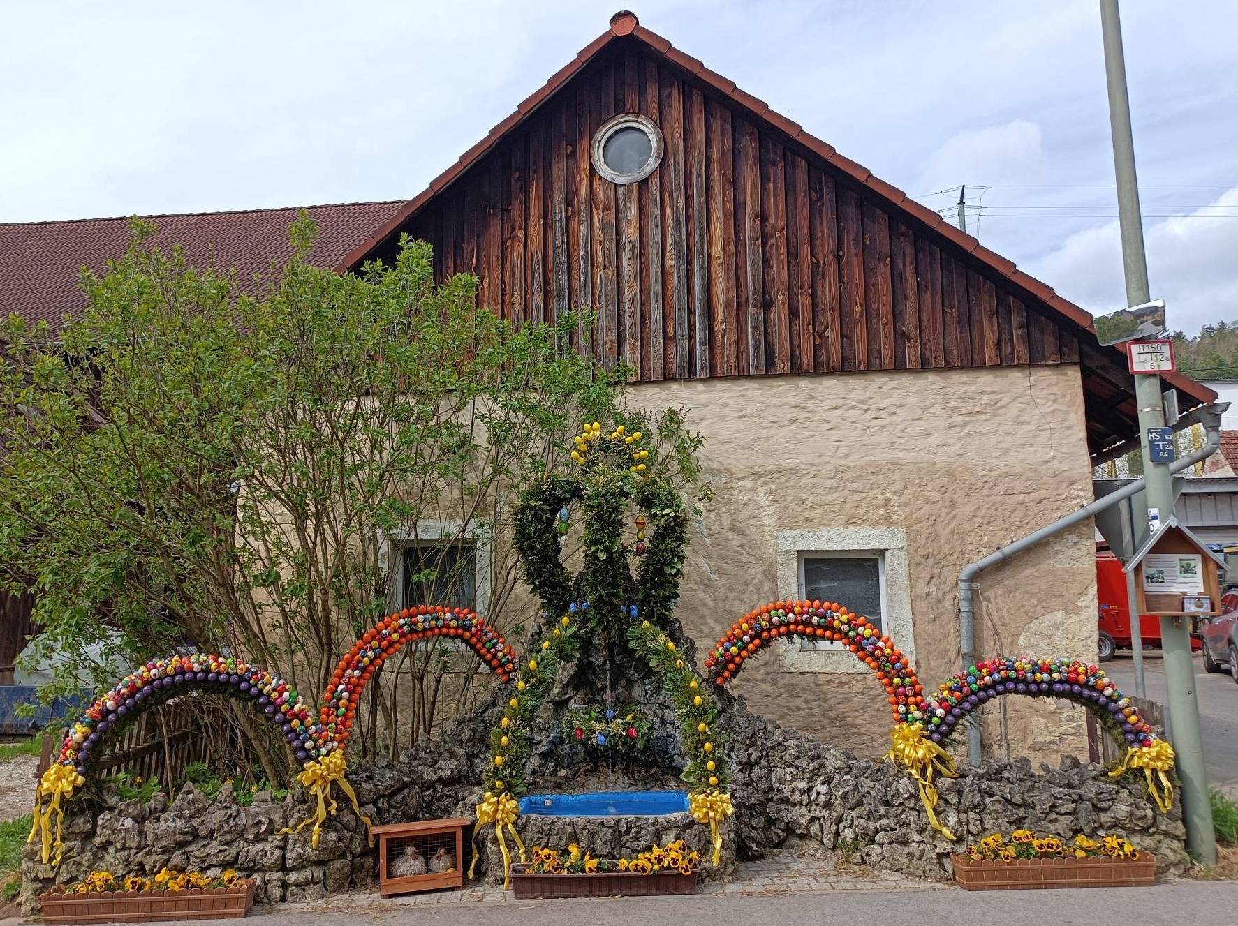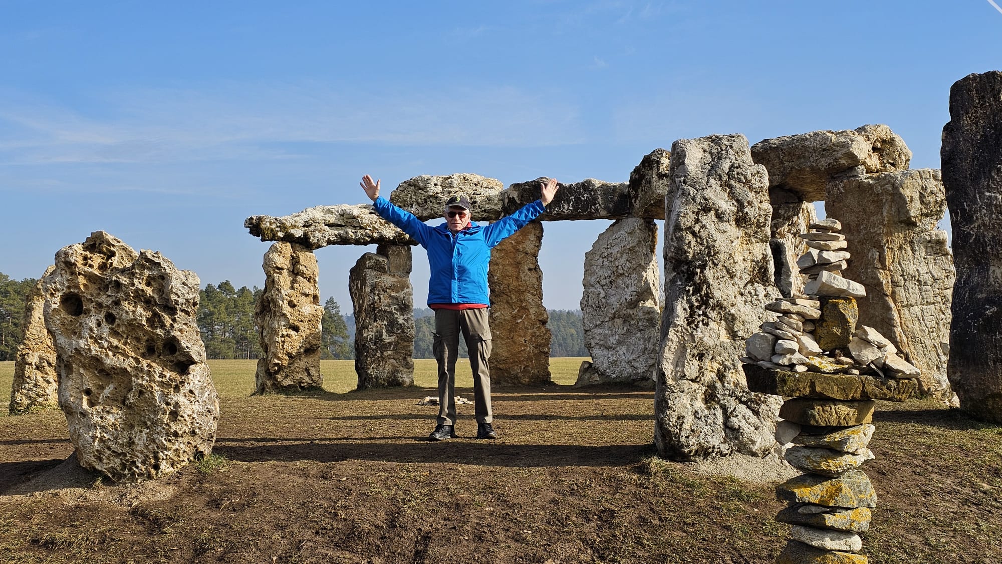 Die Oberfränkische Stonehenge-Kopie ist vielleicht nicht ganz so imposant wie das vor ca. 5000 Jahren errichtete Original bei Amesbury in Südengland, dafür aber ohne Eintrittsgeld zugänglich und nicht so überlaufen. Die von einem örtlichen Bauunternehmer aufgestellten 3,5 m hohen und 7 Tonnen schweren Dolomitsteine sind tatsächlich so angeordnet, dass, wie beim Original, die Sonnenstrahlen zur Sommer- und Wintersonnenwende genau zwischen je zwei Säulen hindurch fällt. Allerdings sind die über 4 m hohen und 2 m breiten Megalithe in England, mit oft deutlich über 25 t (der Größte mit ca. 8 m Höhe soll ca. 50 t wiegen), doch noch andere Kaliber und die Größe der gesamten Anlage, mit ihrem Ringwall mit Graben von ca. 115 m, doch noch etwas beeindruckender. Trotzdem hat Tiefenpölz, das mit seinen schönen Häusern, den liebevoll hergerichteten Gärten und seiner schönen Umgebung schon immer einen Besuch wert war, dank Alexander Lämmlein eine weitere sehenswerte Attraktion. Bevor wir uns aufmachen zu dem, in schöner Natur platzierten, mittlerweile kleinen touristischen Hotspot, besuchen wir einen der schönsten Fränkischen Osterbrunnen am Marktplatz in Heiligenstadt. Denn am Vormittag hat man noch eine Chance, den Brunnen zu fotografieren und zu betrachten, ohne die vielen Besucher, die mittlerwei-le aus ganz Deutschland mit Bussen zu solchen Attraktionen geschippert werden 😖.