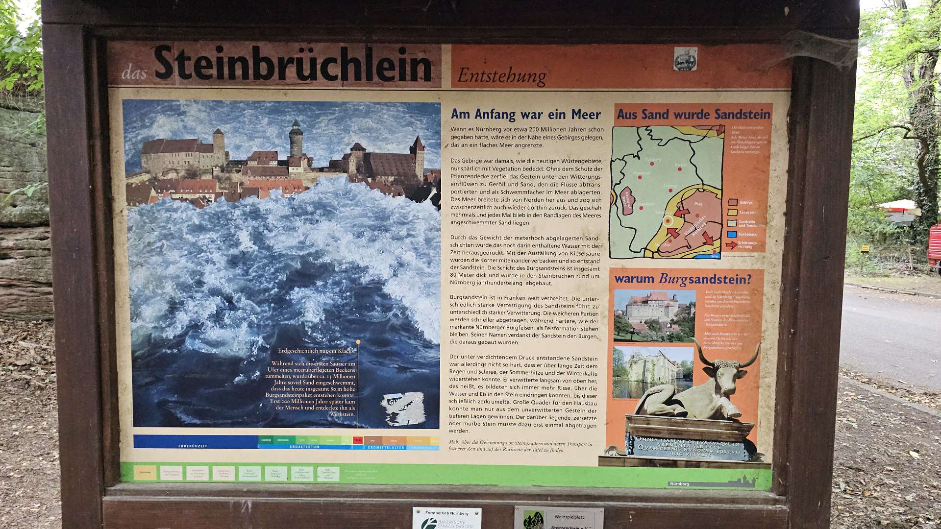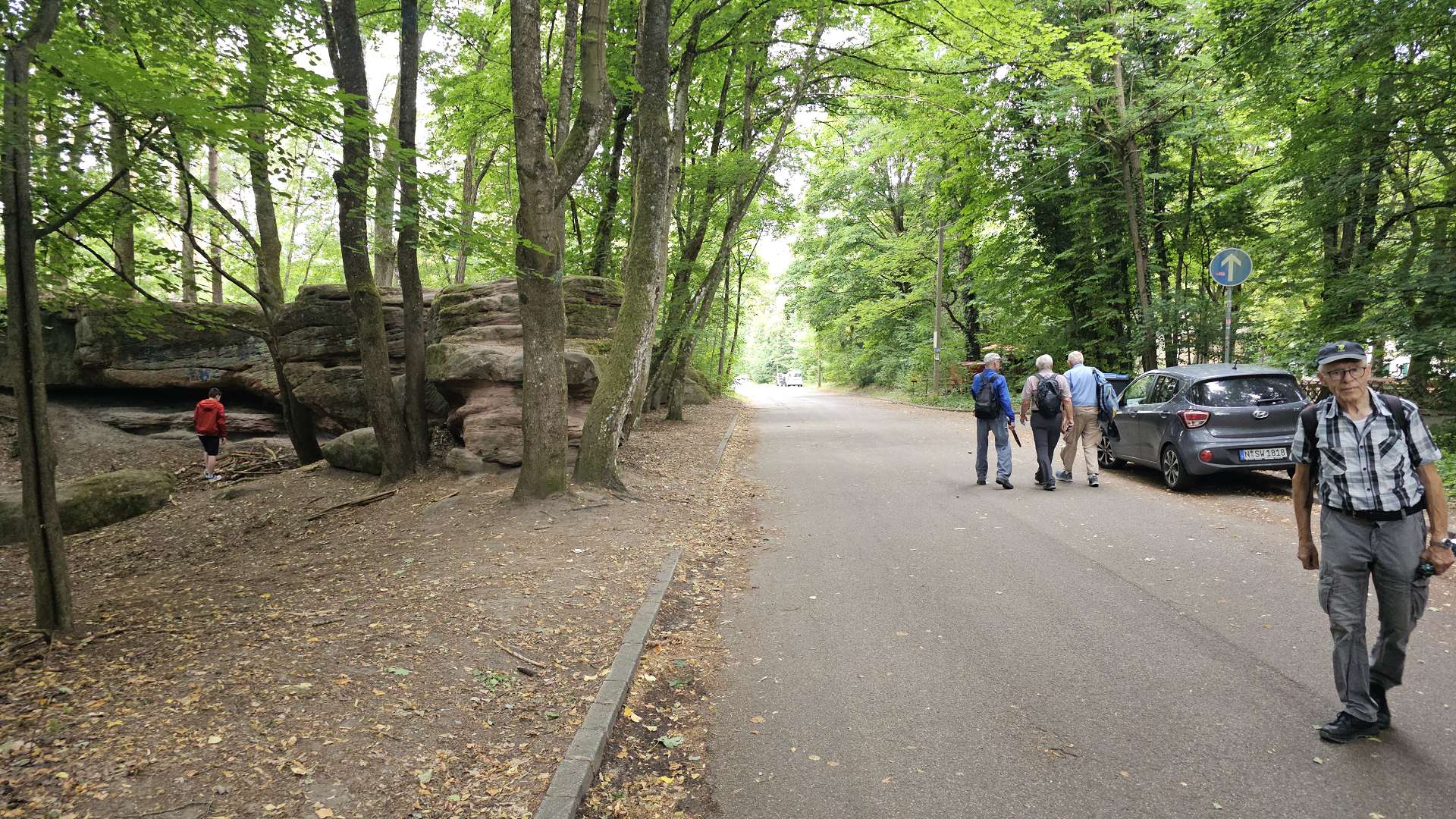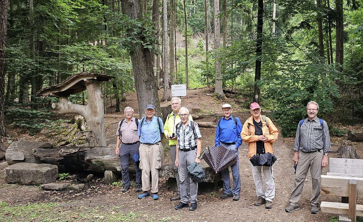 urig und die "Wander-Autobahn" gut zu gehen. Vor der A6 verlassen wir den Erlebnispfad und überqueren die Autobahn. Einige 100 Meter dahinter enden die Kieswege und wir konnten uns doch noch ein Stück auf naturbelassenen Pfaden bewegen. Hier fand Achim endlich seine (wenigen) Wurzeln. Schneller als geplant, da weniger Ablenkung als bei den Wernlöchern, waren wir am Parkplatz (Bushalt) des Steinbrüchlein.