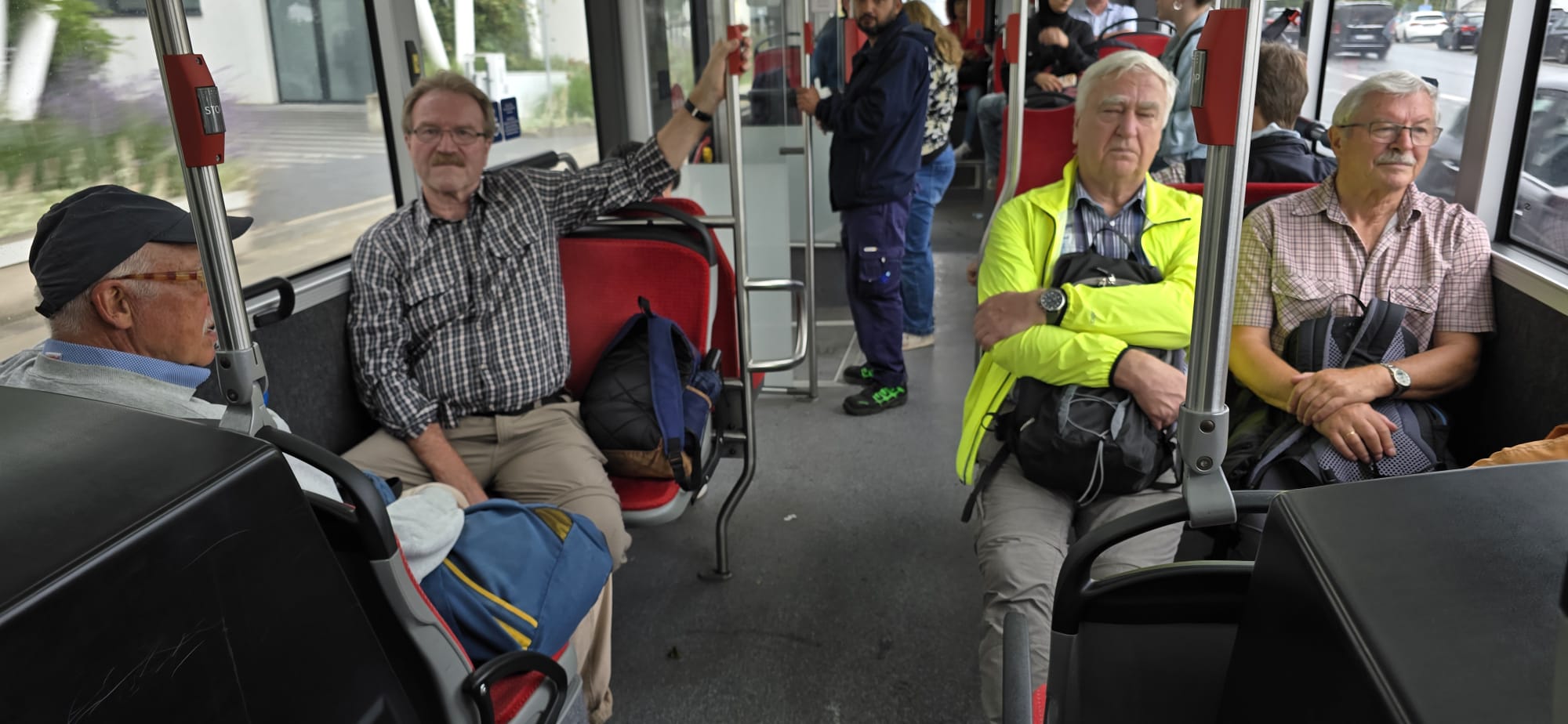 beschädigt. Wir stiegen ein, der Bus fuhr los,