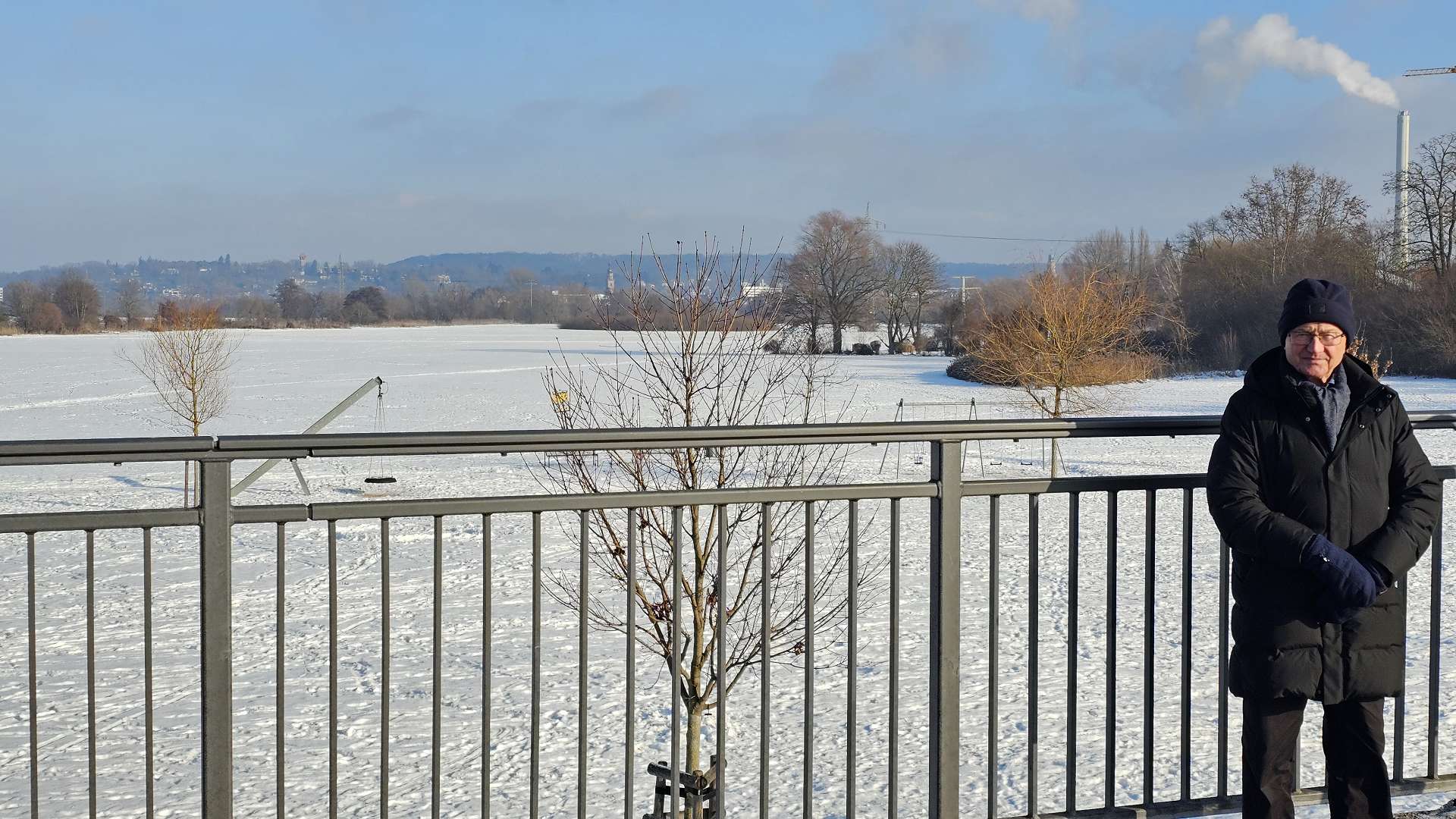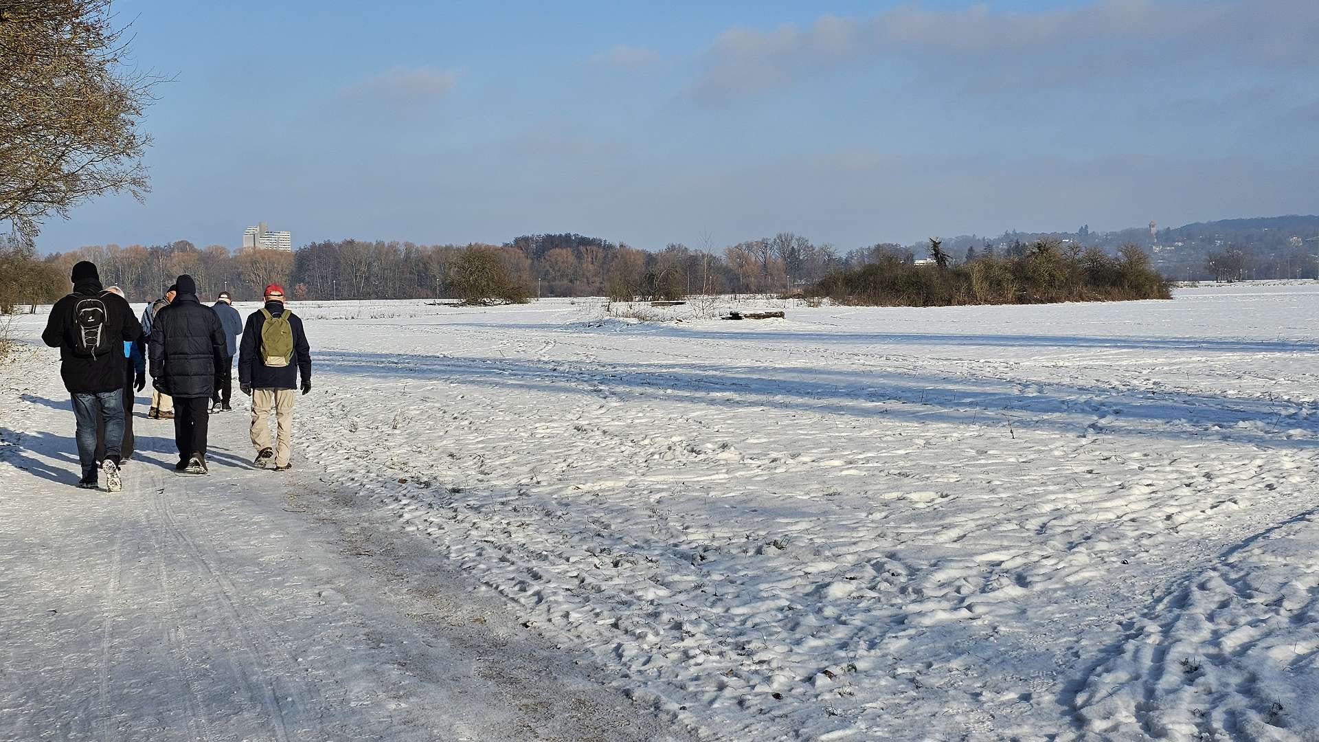 Umgebung kennen. Weiter geht es über die Äußere-Brucker-Str. zur Unterführung der A73 an der Isarstraße, über den Friesenweg auf den Neumühlensteg. Hier betrachten und genießen wir bei einem Blick in den Wiesengrund die weiße Pracht bei herrlichem Sonnenschein. Da wir noch etwas Zeit bis zur Mittagseinkehr haben, überzeugt uns Roland am Freibad West, dasselbige zu umrunden, um noch ein wenig die herrliche Natur an der Regnitz entlang zu genießen Pünktlich um high-noon erreichen wir das BSC-Gelände, wo wir im "Delicious China Restaurant" einkehren. Wieder eine Empfehlung von Manni, die man weiterreichen kann! Der Rückweg führt uns in den Wiesengrund, vorbei an Rolands Latifundien, wo er und Karsten uns verlassen. Das absichtliche Entfernen von der Truppe wurde früher einmal mit 150 Schilling Strafe geahndet; heute soll es Strafe genug sein, dass ihnen der schöne Spaziergang bei herrlichem Wetter durch den Wiesengrund entgeht! Am Bahnhof verlassen uns Manfred und Manfred, in den Arcaden gönnen sich Achim und Henry ein Waffel-Eis und Pit und Udo lassen den Wandertag bei einer Tasse Kaffee und einem Eisbecher ausklingen. |