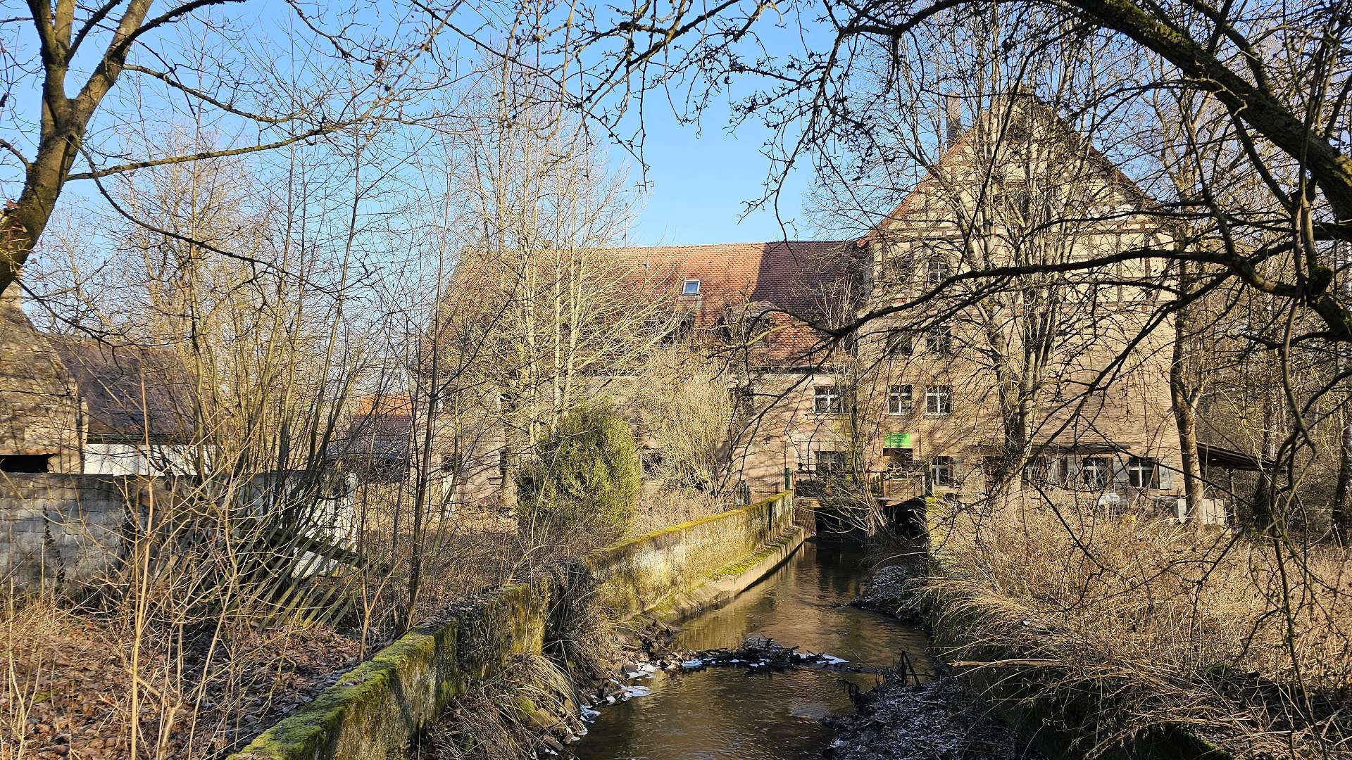 Hauptstraße. An der gehen wir ein paar Meter nach Süden über die Gründlach und dann
