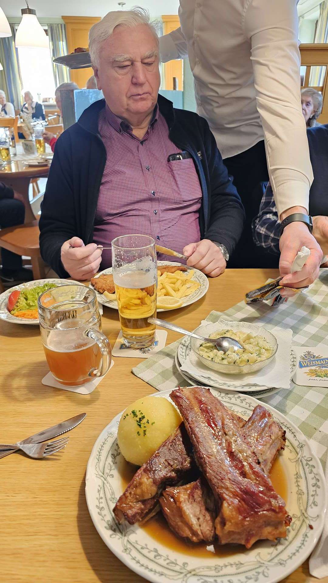 einen kleinen Umweg zum "Königsee". Dort sind wir wieder sehr zufrieden, tatsächlich kommen Gourmets und Gourmands auf ihre Kosten, und das Weismainer alkoholfreie Zwickel (naturtrüb) kommt auch beim Pit gut an - außerdem schaut man einem geschenkten Gaul nicht ins Maul - es lebe der Manfred!