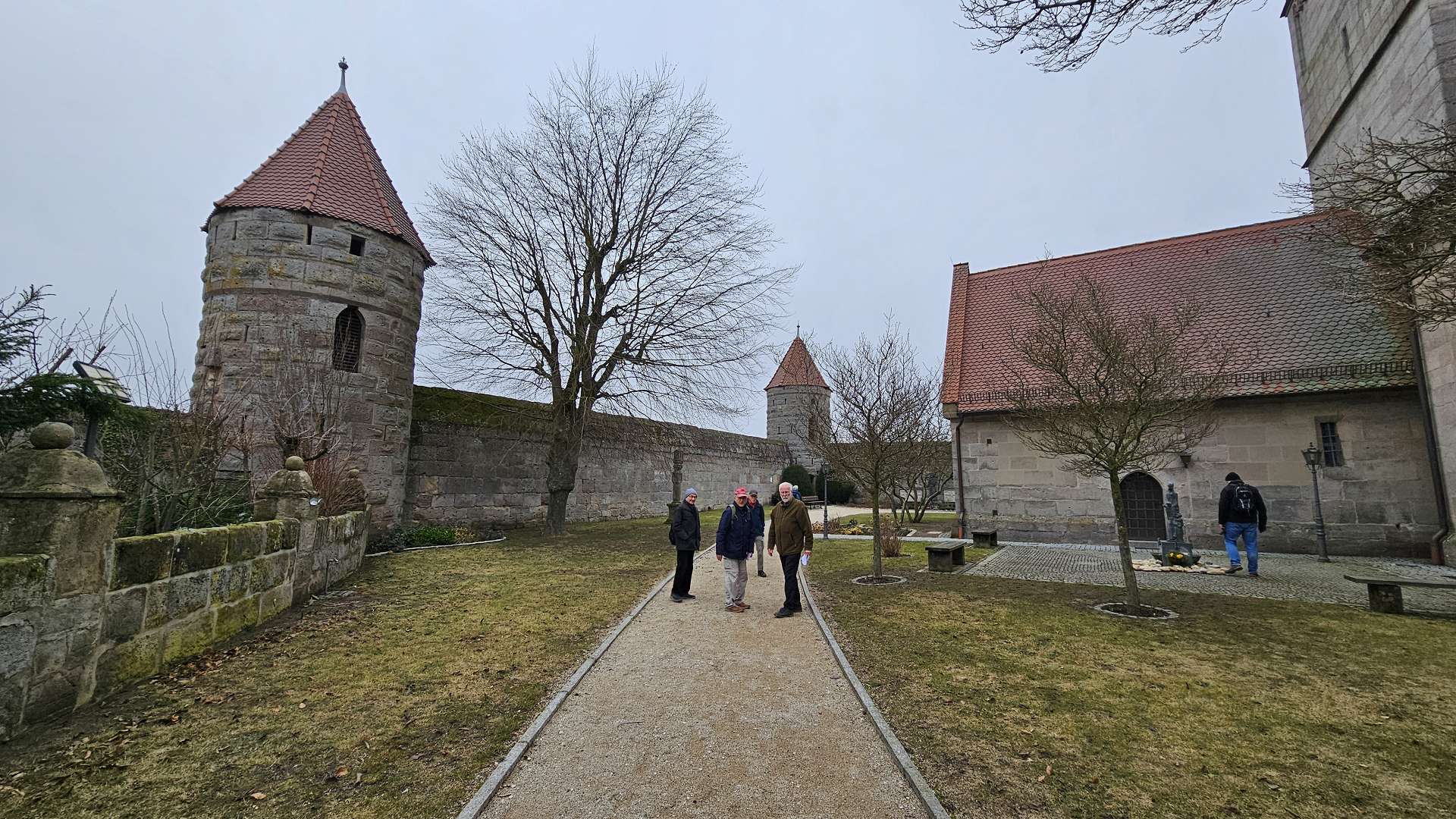 und sind auch gleich bei der Befestigungsanlage. Nach einer guten halben Stunde ist unser Wissensdurst gestillt und wir machen uns auf den Weg zur Bushaltestelle - allerdings nicht alle; Achim legt noch einen Kilometer drauf - für ein Stück Marmorkuchen bei seinem Lieblingsbäcker in Heßdorf! |