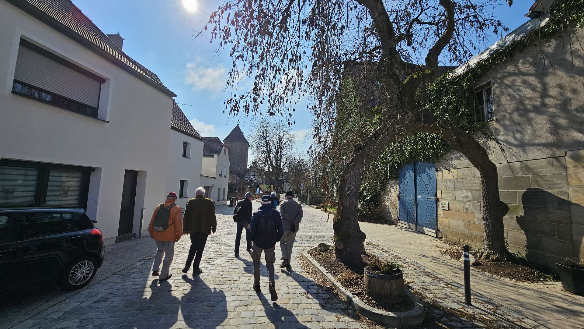 Durch die Löwengrube über die Himmelsleiter ins Tal der Schwarzach zum Kirchlein St. Michael Obwohl wir nun schon so lange miteinander wandern, waren mehr als die Hälfte noch nie an der Löwengrube und in Rasch. Das musste sich natürlich ändern, denn nicht nur der abenteuerliche Weg um die Löwengrube über die Himmelsleiter und entlang der Schwarzach macht Spaß, auch das Kirchlein in Rasch ist sehenswert. Und auch Altdorf selbst ist natürlich interessant als Ausgangs- und Zielort: Dort sind es nicht nur die evangelische Kirche mit ihrem außergewöhnlichen Inneren und die Marktstraßen mit den alten Toren, Brunnen und Häusern, ... in Altdorf gibt es immer noch mindestens 7 Gasthäuser, die Mittwoch Mittag geöffnet haben und gleich mehrere Eiscafés 😉. Gefahren sind wir öffentlich und die Innenstädtler waren in 1 1/4 Std dort, die Rückfahrt war nach ca. 1 Stunde erledigt, mit 1x Umsteigen - so ähnlich auch die ERHler ... aber leider nicht die Frauenauracher. Wie so oft müssen die eine dreiviertel Stunde früher aufstehen, weil die Busanbindung schlechter kaum sein kann. Die Frequenz ist miserabel, der 201er fährt zur gleichen Zeit wie der 281er und der hält dann z. B. an der Paul-Gossen-Brücke 1 Minute vor Abfahrt der S-Bahn☻!!! Toll geplant und alles sehr motivierend - aber warum lassen sie sich auch eingemeinden. (Mit der StUB wird es natürlich besser). In Altdorf haben die Navis wieder einmal nicht mit den Satelliten kommunizieren wollen - wahrscheinlich hat Trump vor Kuba noch das Weltall ein bisschen durcheinandergeschüttelt (nicht gerührt). So kamen wir mit ein bisschen hin und her am Ende auf über 9 Kilometer.