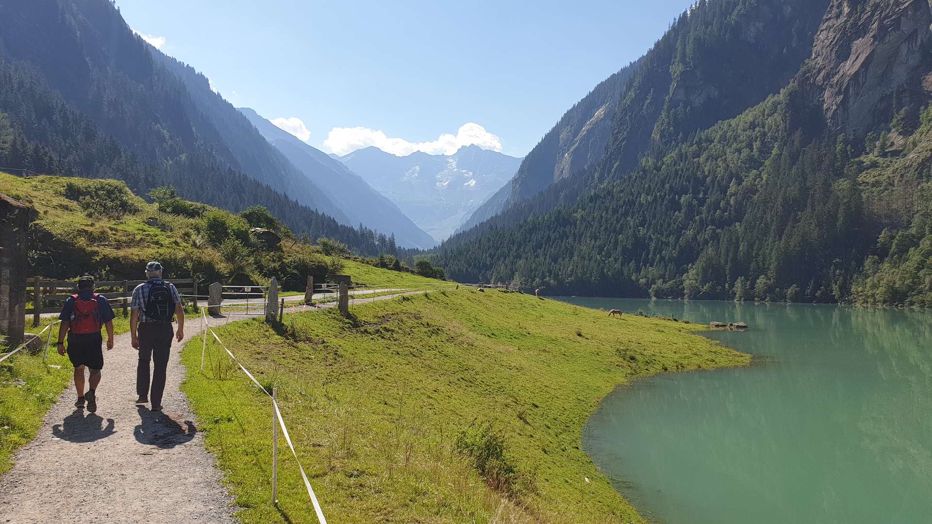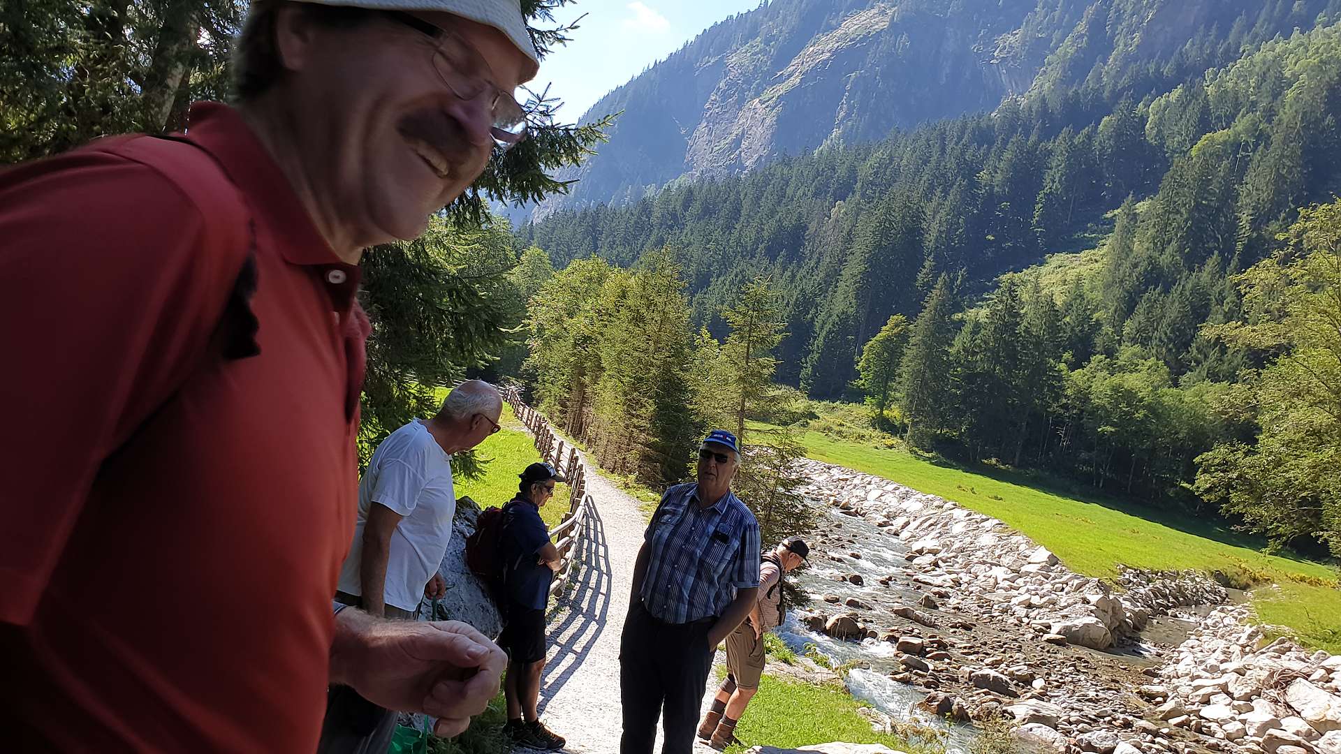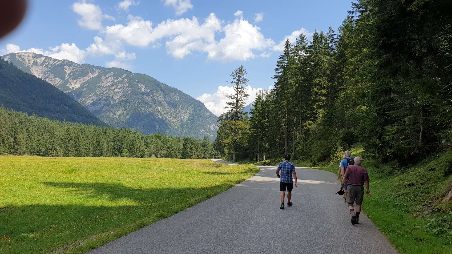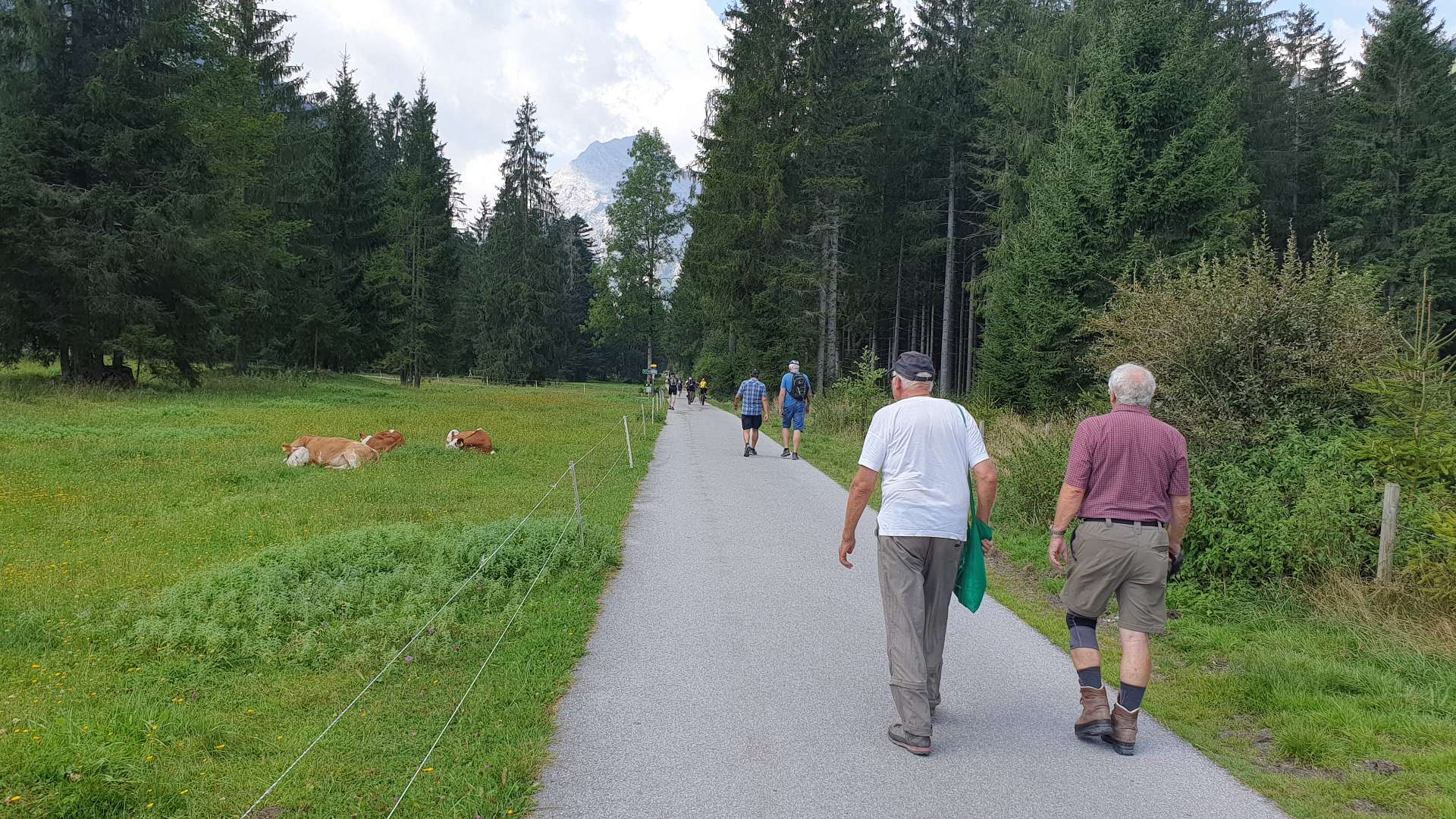 dem klimagewandelten Wetter angepasst. Nach dem Duschen warf Henry den Grill an und Roland bereitete den besten Salat zu, den wir an diesem Tag bekommen haben. Der Abend verlief ruhig und ohne gelbe oder gar rote Karten und nach dem schönen, warmen Tag zogen sich alle sehr früh in ihre Einzel- und Doppelzimmer zurück, wobei Hartmut erstmalig das schnarchfreie Zimmer mit Udo teilen durfte, was Manfred ein Einzelzimmer bescherte; diesen Umstand nutze er dann auch schamlos aus: sein zufriedenes Schnurren war durch mehrere Wände zu vernehmen. Wie immer am letzten Tag führte die Rückfahrt über den Achensee, mit Stopp in Pertisau und einer Wanderung - dieses mal zur Falzthurn-Sennhütte. Gerade noch rechtzeitig vor dem kleinen Aufstieg Richtng Pletzschalm hat Manni herausgefunden, dass die Gaststätte dort Ruhetag hatte - wir waren ja dieses mal 1 Tag früher dran. Aber auch zur Falzthurn Alm führt ein schöner Weg - schön flach, allerdings geteert. Danach ging es zurück, Richtung Heimat. Aber nicht ohne einer weiteren angenehmen Angewohnheit genüge zu tun: kurz vor Tegernsee gibt es nämlich ein Eiscafé mit vielen guten und außergewöhnlich vielen Eisbecherarten. Sogar einen zum Abnehmen für Henry, der bei solchen Gelegenheiten auf Joghurt(eis) schwört. Hier verabschiedeten wir uns dann von Hartmut und fuhren, sehr zufrieden mit den vergangenen 3 Tagen, nun wirklich bis nach Hause - und freuen uns schon auf den nächsten Sommer! |